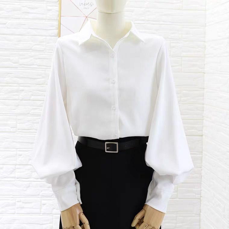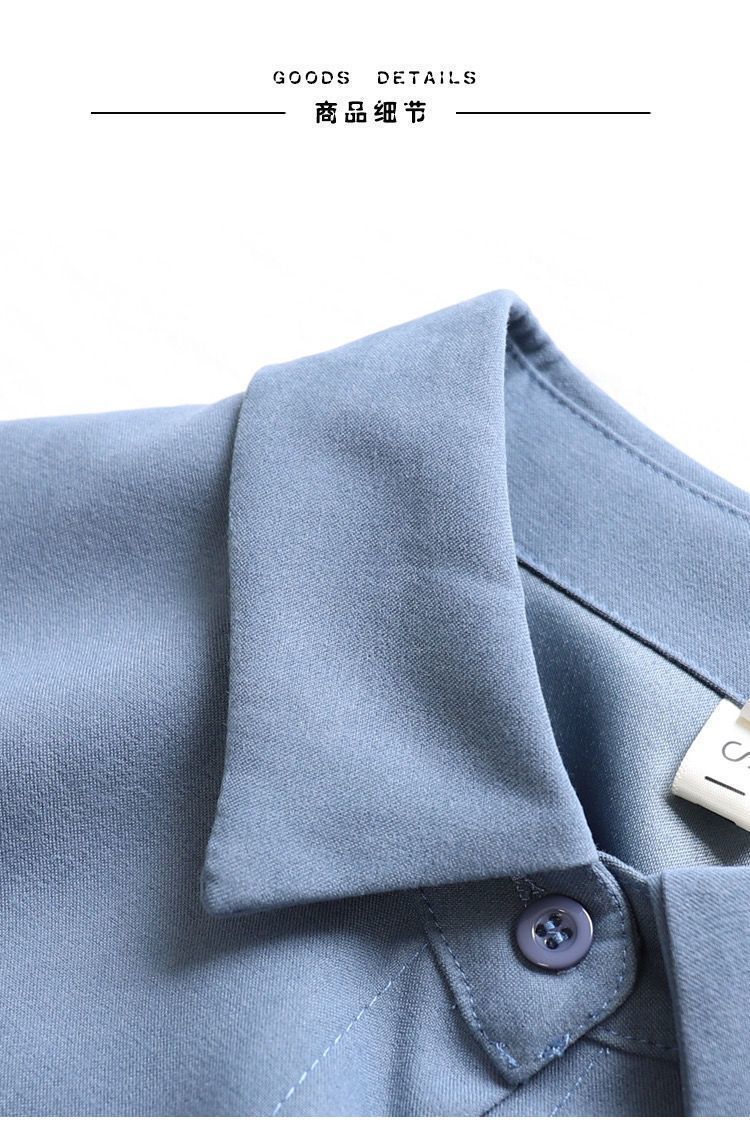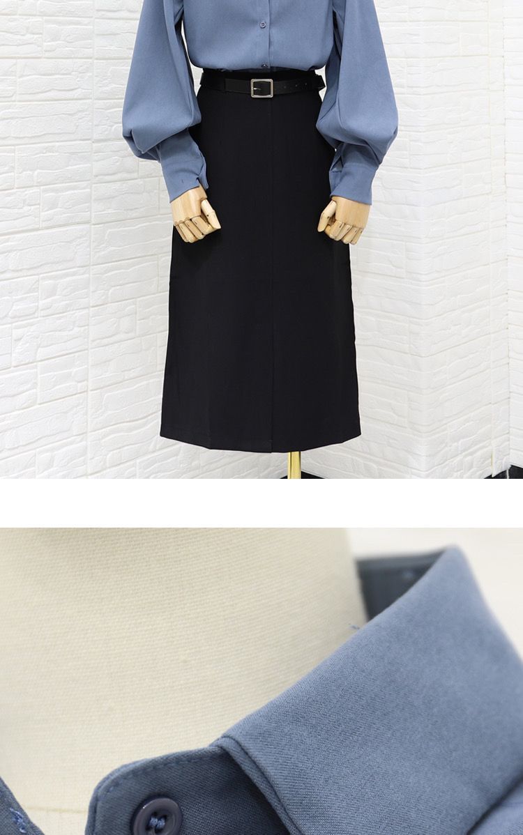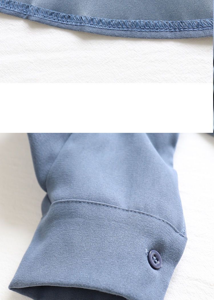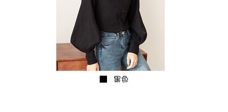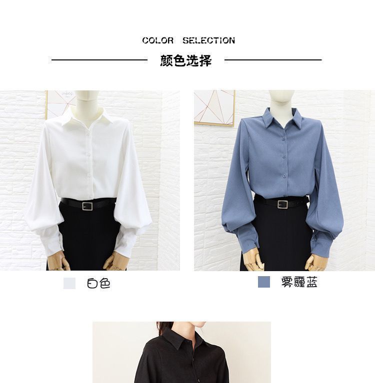 이른 봄 새로운 샌딩 셔츠 여성용 랜턴 슬리브 탑 디자인 센스 니쉬 헤이즈 블루 셔츠 레트로 홍콩 맛스토어 가기
