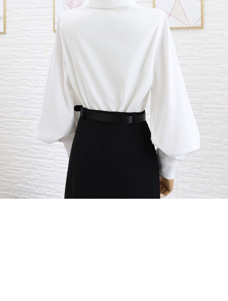 이른 봄 새로운 샌딩 셔츠 여성용 랜턴 슬리브 탑 디자인 센스 니쉬 헤이즈 블루 셔츠 레트로 홍콩 맛