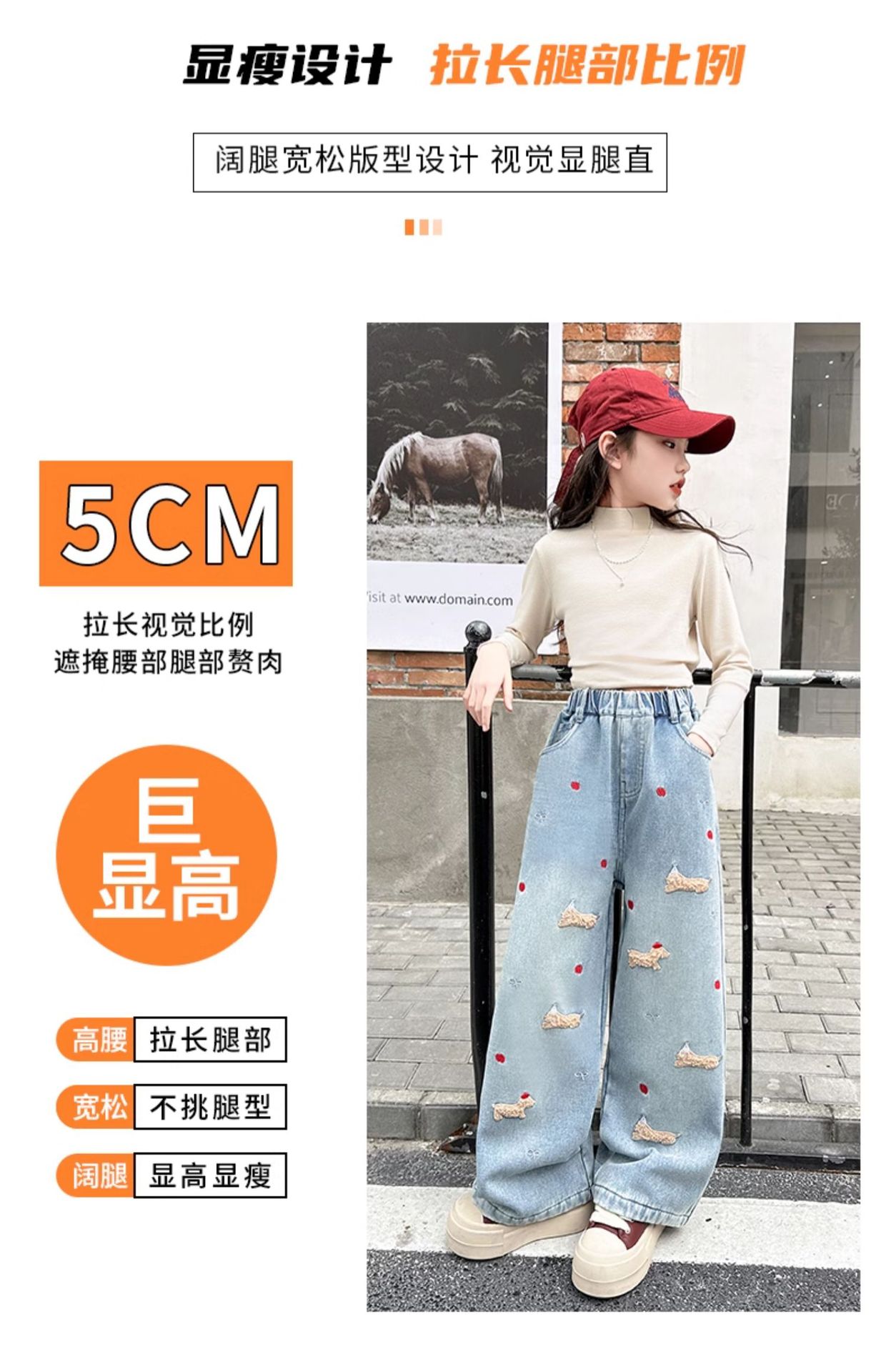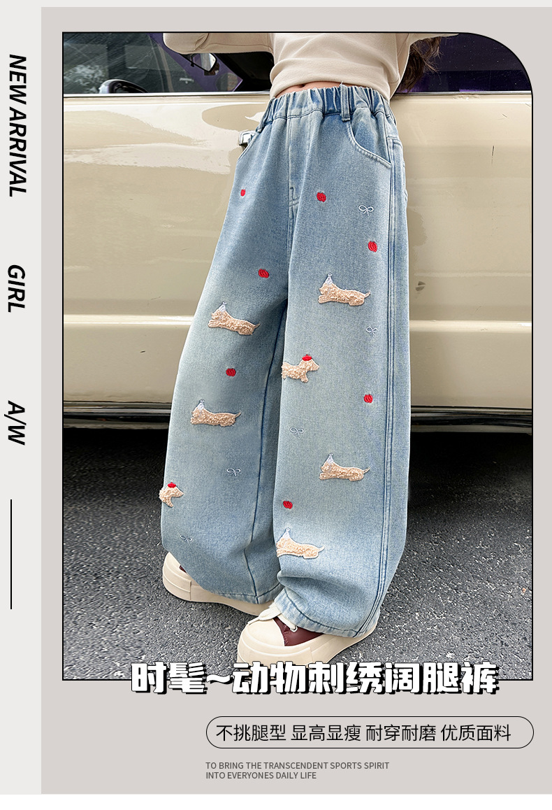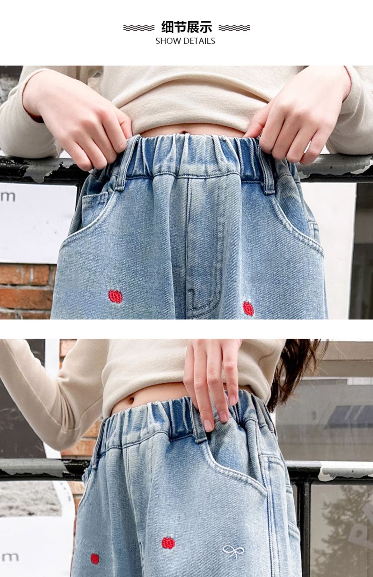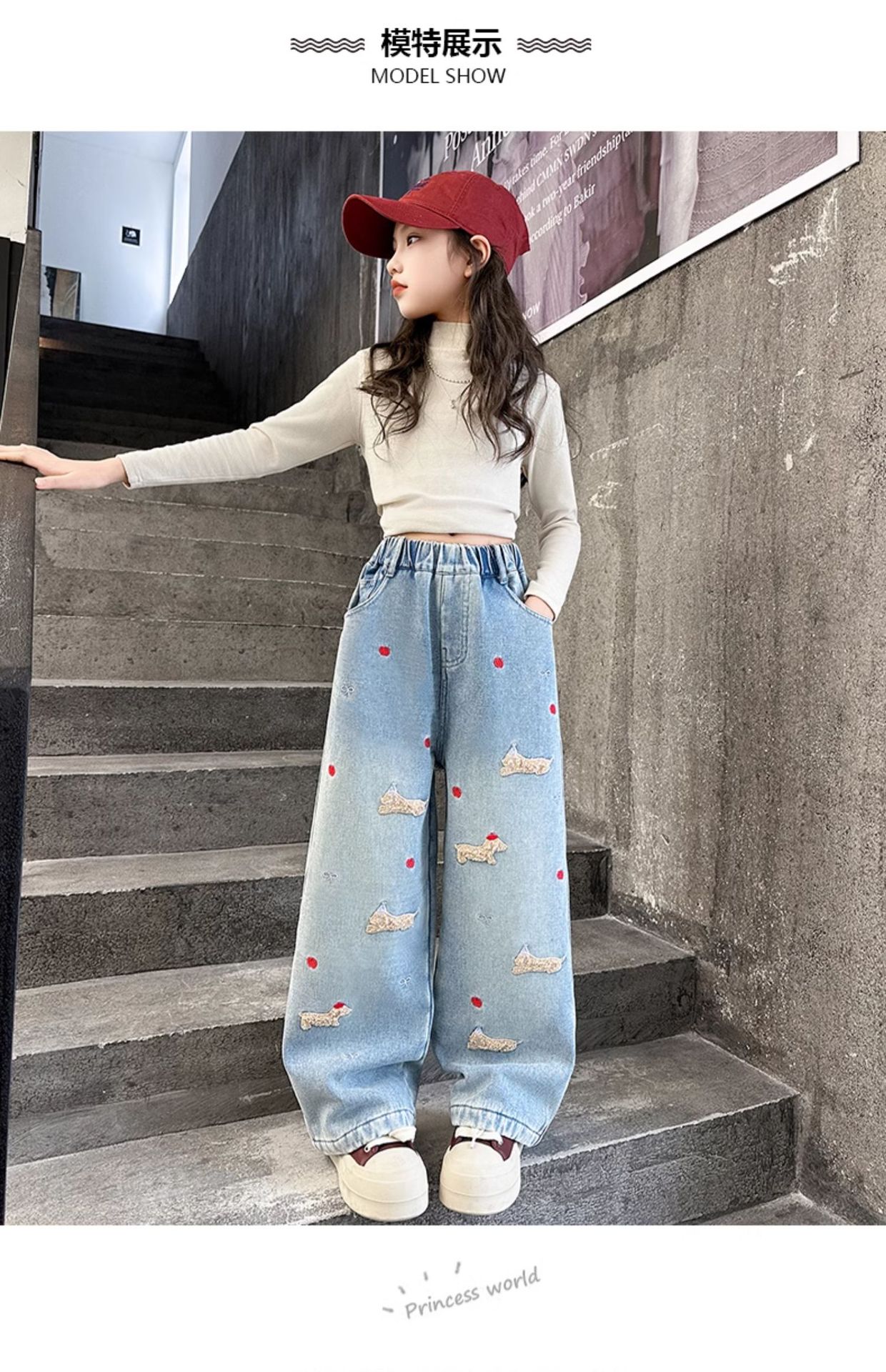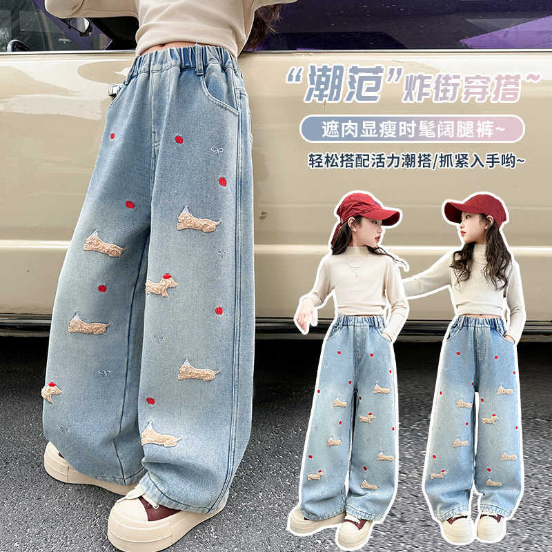소녀 청바지 봄과 가을 2025 새로운 어린이 A 및 sough 바지 봄 원피스 소녀의 넓은 다리 스트레이트 바지스토어 가기