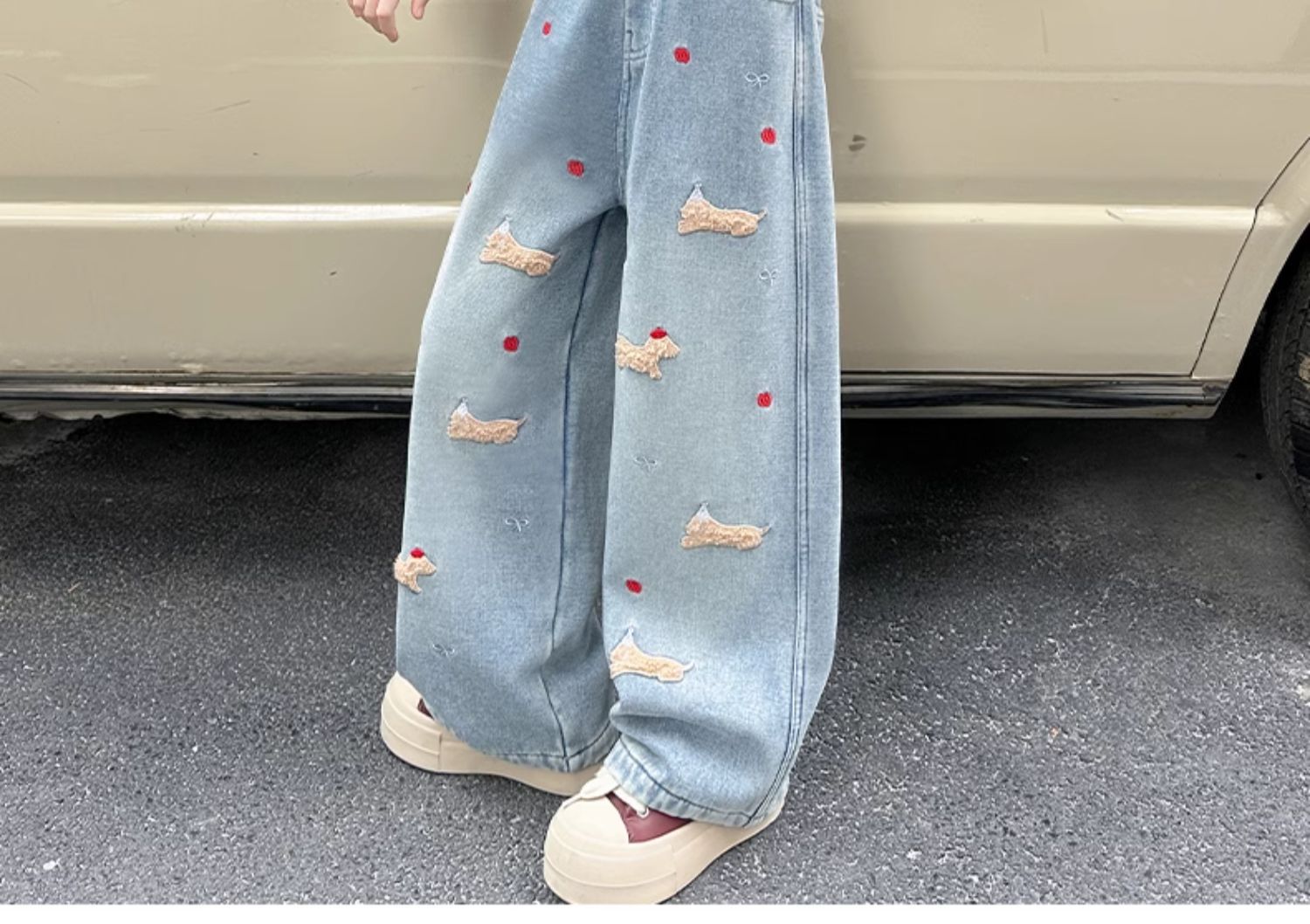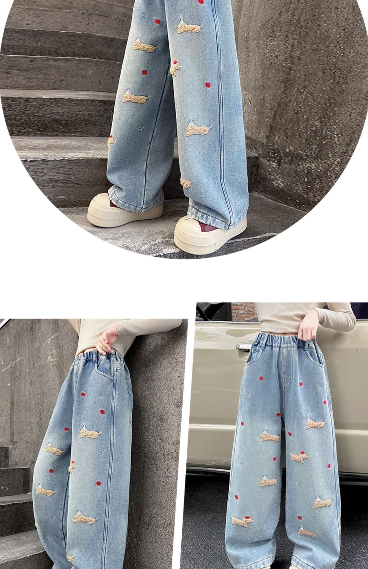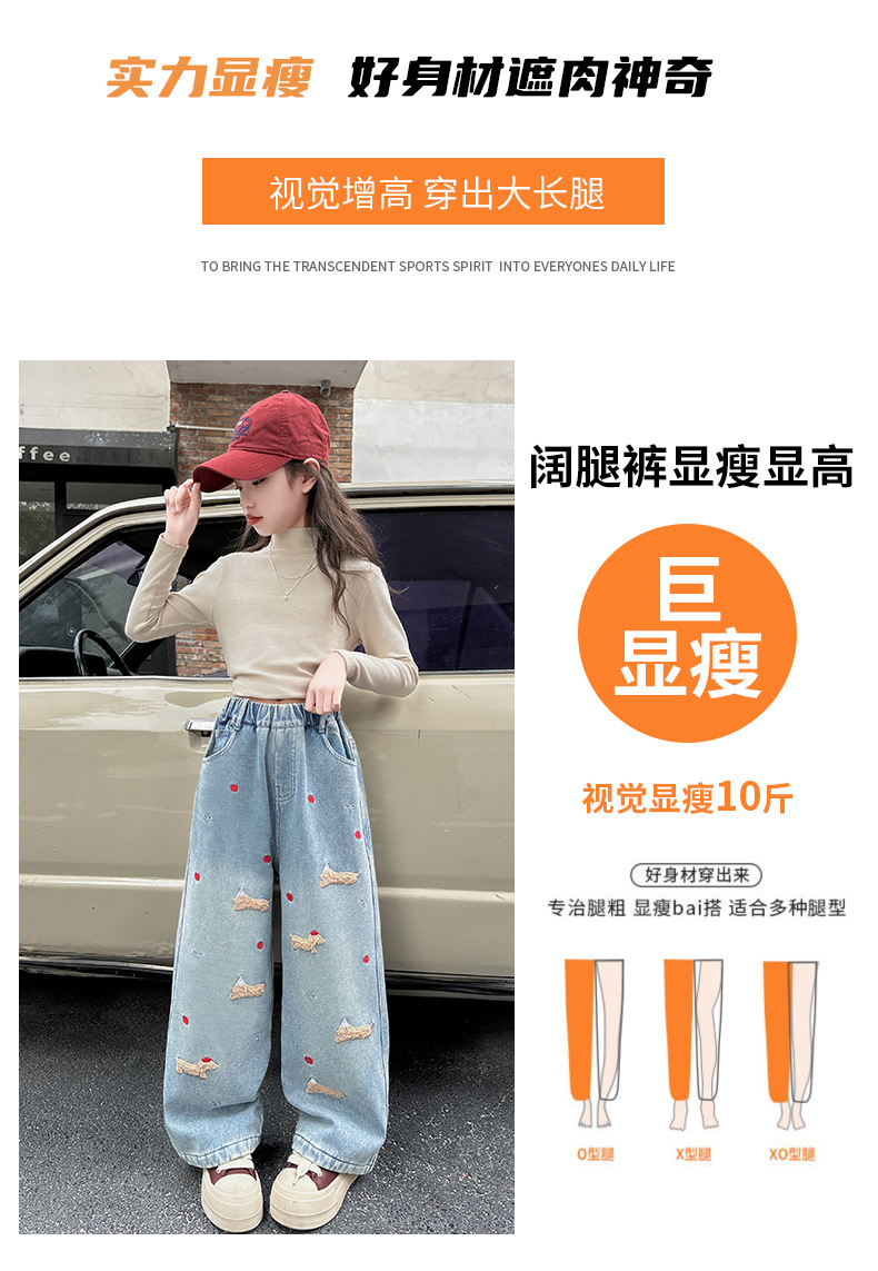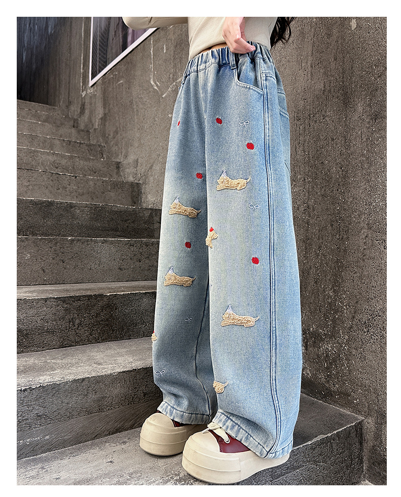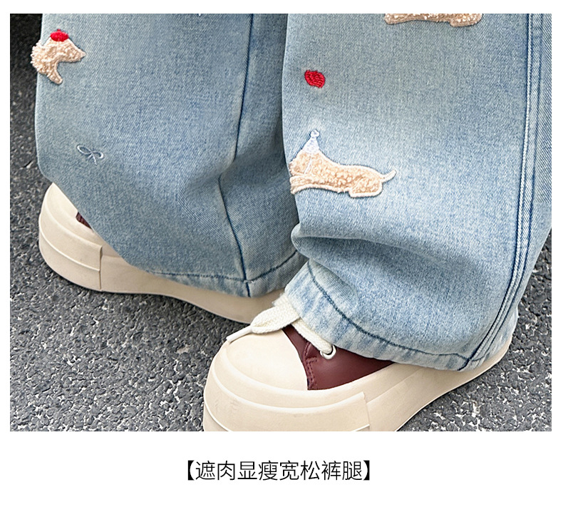 소녀 청바지 봄과 가을 2025 새로운 어린이 A 및 sough 바지 봄 원피스 소녀의 넓은 다리 스트레이트 바지스토어 가기
