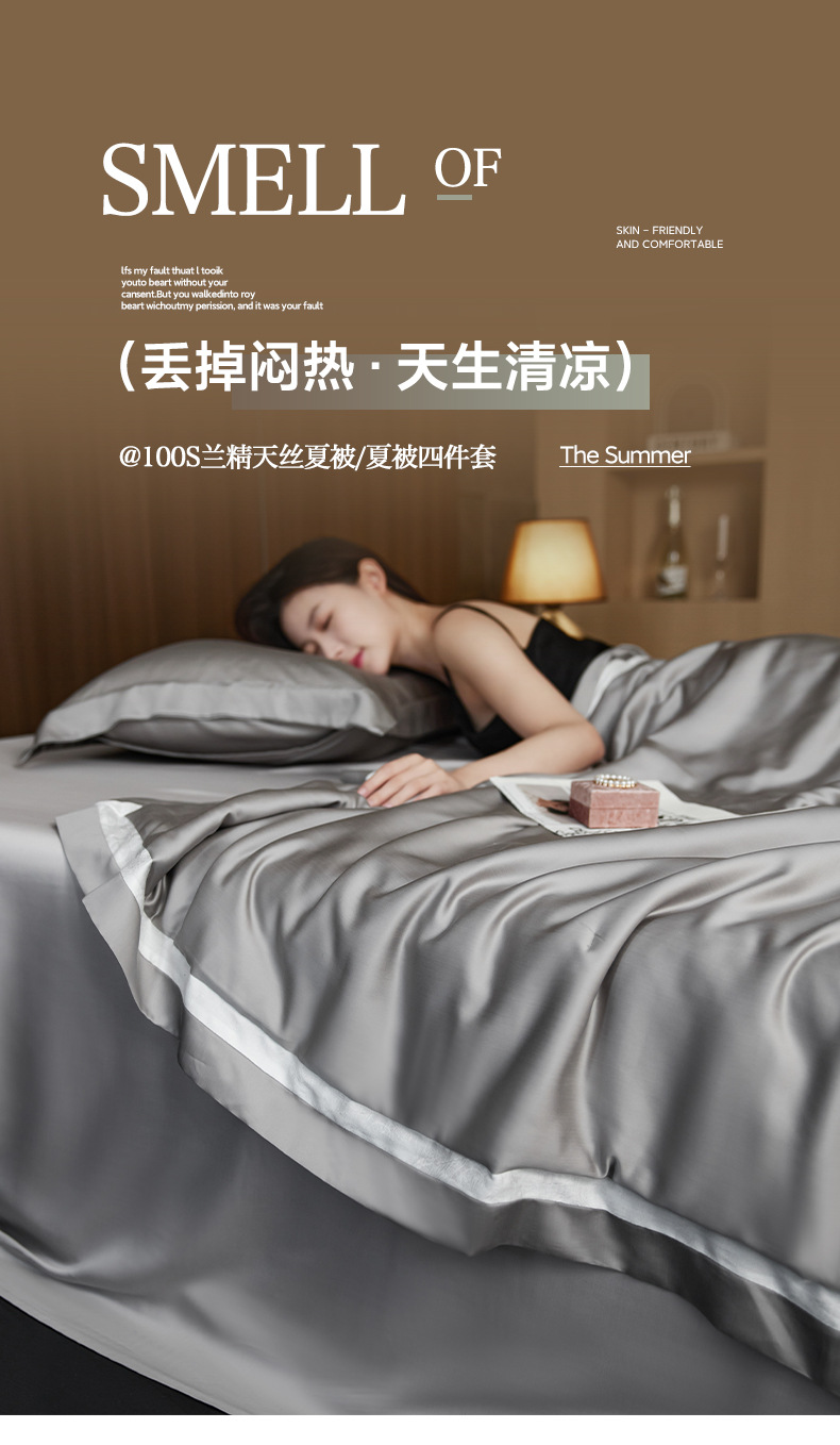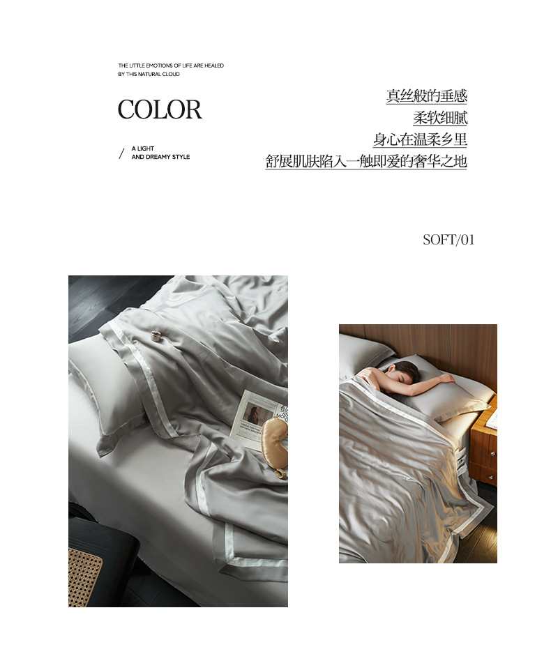 100 오스트리아 Lanjing Tencel 여름 이불 4 조각 솔리드 컬러 Lyocell 기계 세탁기 여름 시원한 이불 에어컨 이불스토어 가기