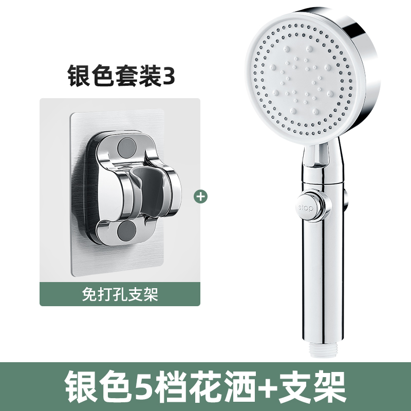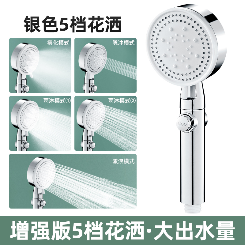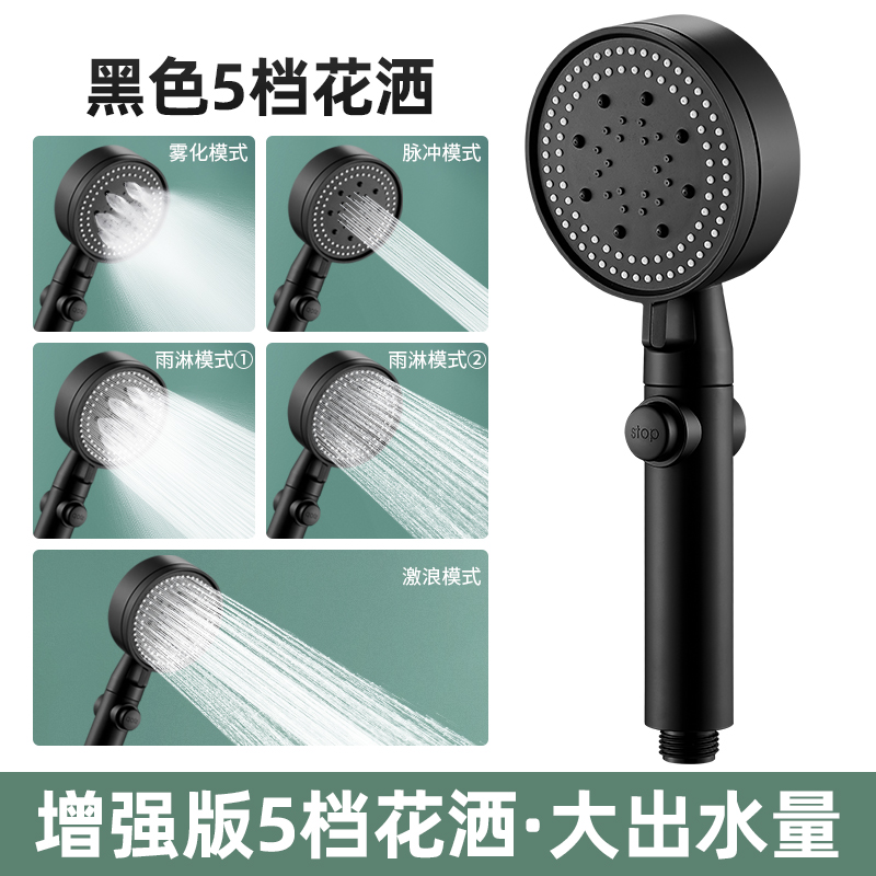 家用手持花洒 五档增压淋浴洗澡浴霸套装ABS硅胶孔烤漆莲蓬头喷头