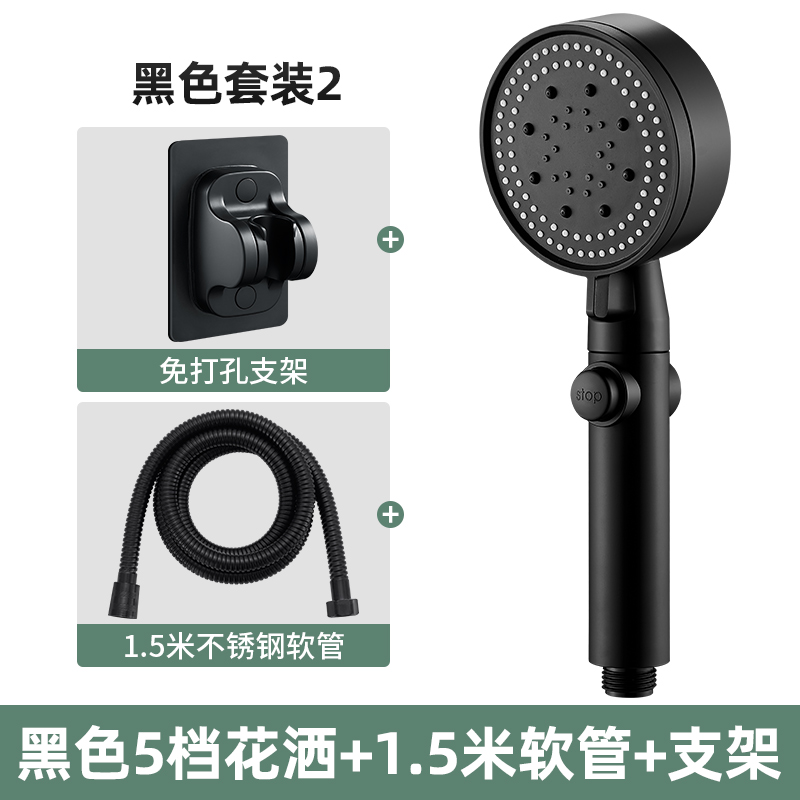 • [블랙세트2] 5단 샤워기 + 1.5m 호스 + 브라켓