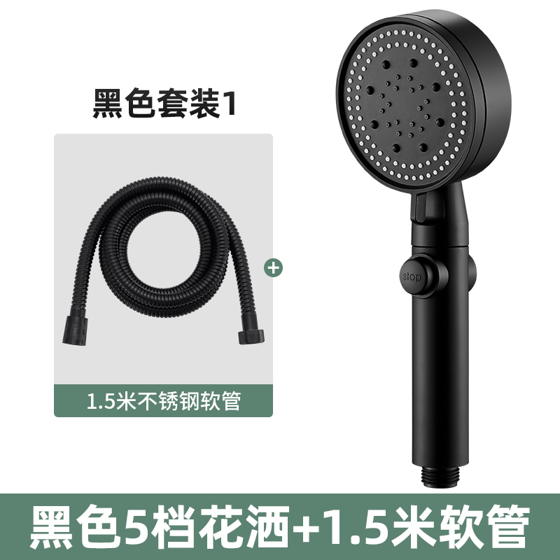 • [블랙세트1] 5단 샤워기 + 1.5m 호스