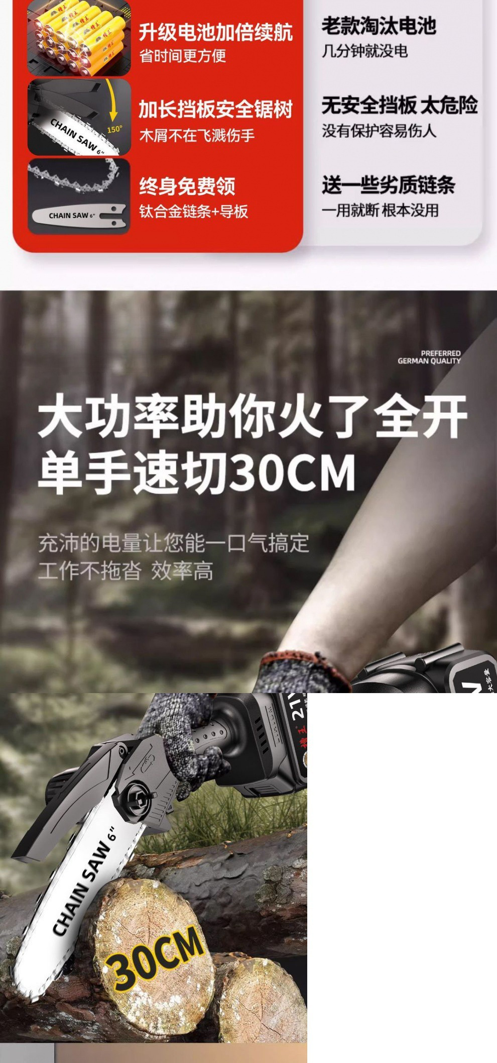 전기 톱 리튬 전기 톱 충전식 톱 휴대용 야외 무선 작은 로깅 한 손 절단 나무 가지 치기스토어 가기