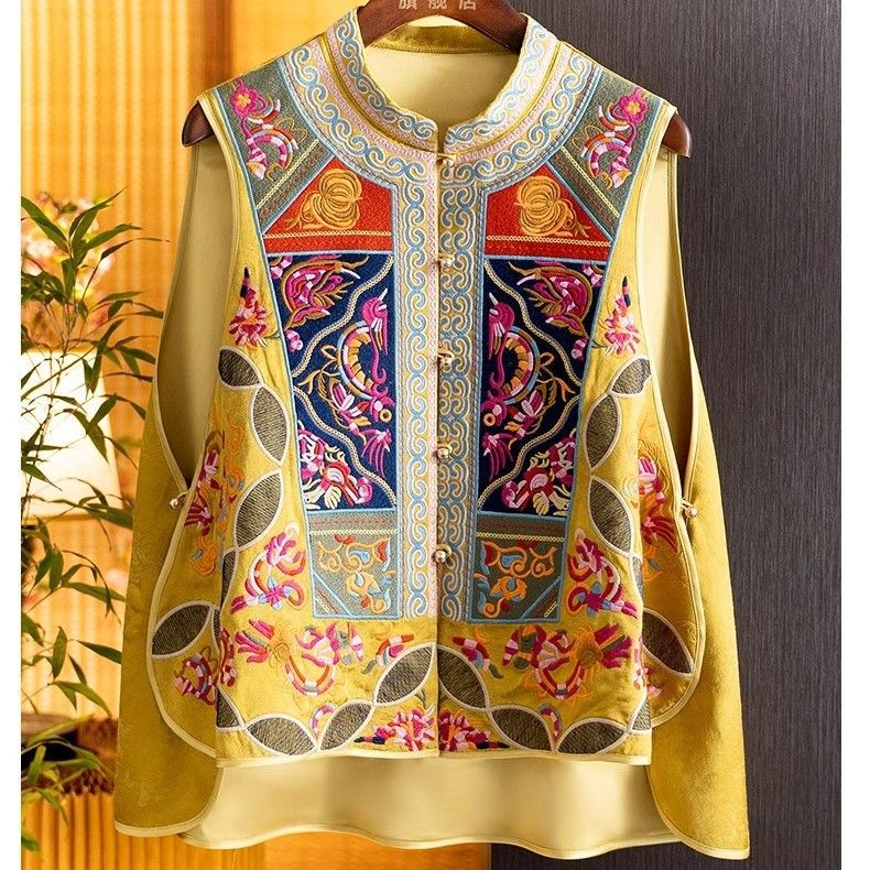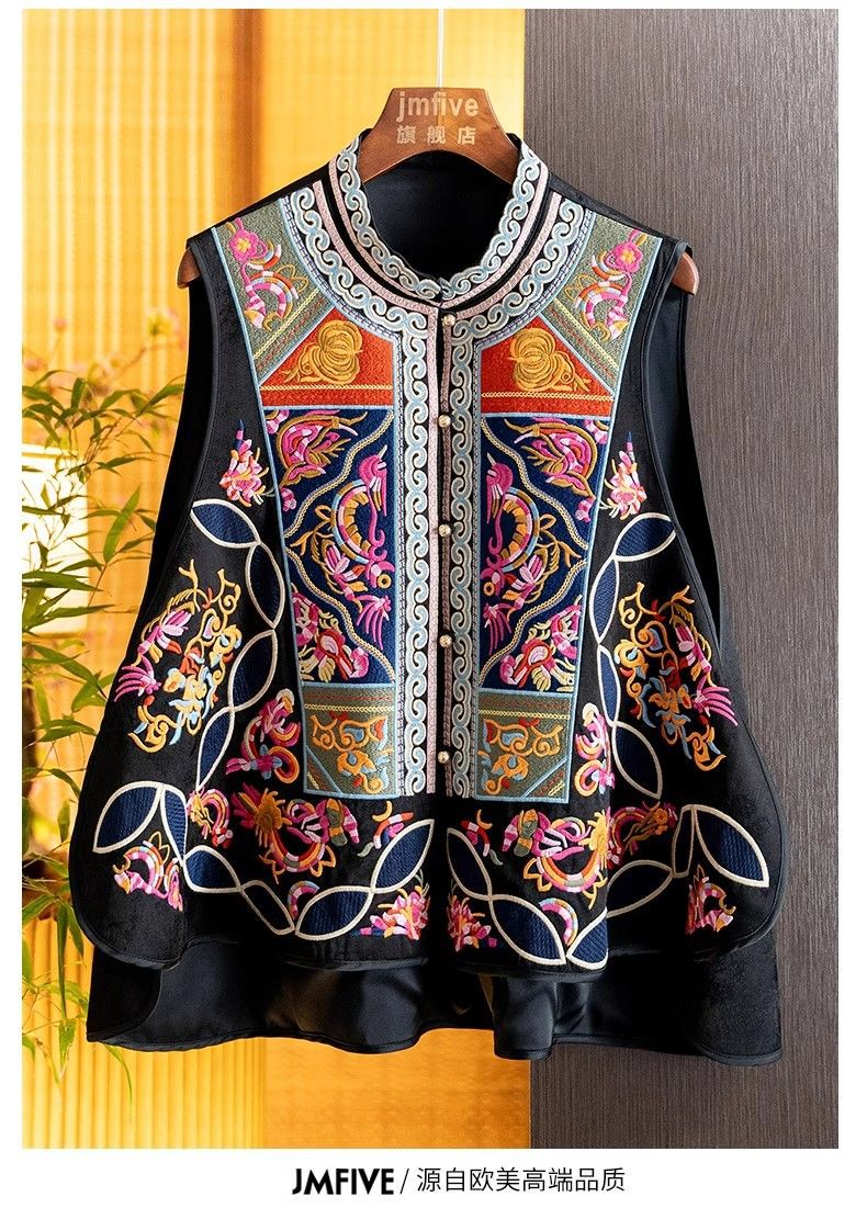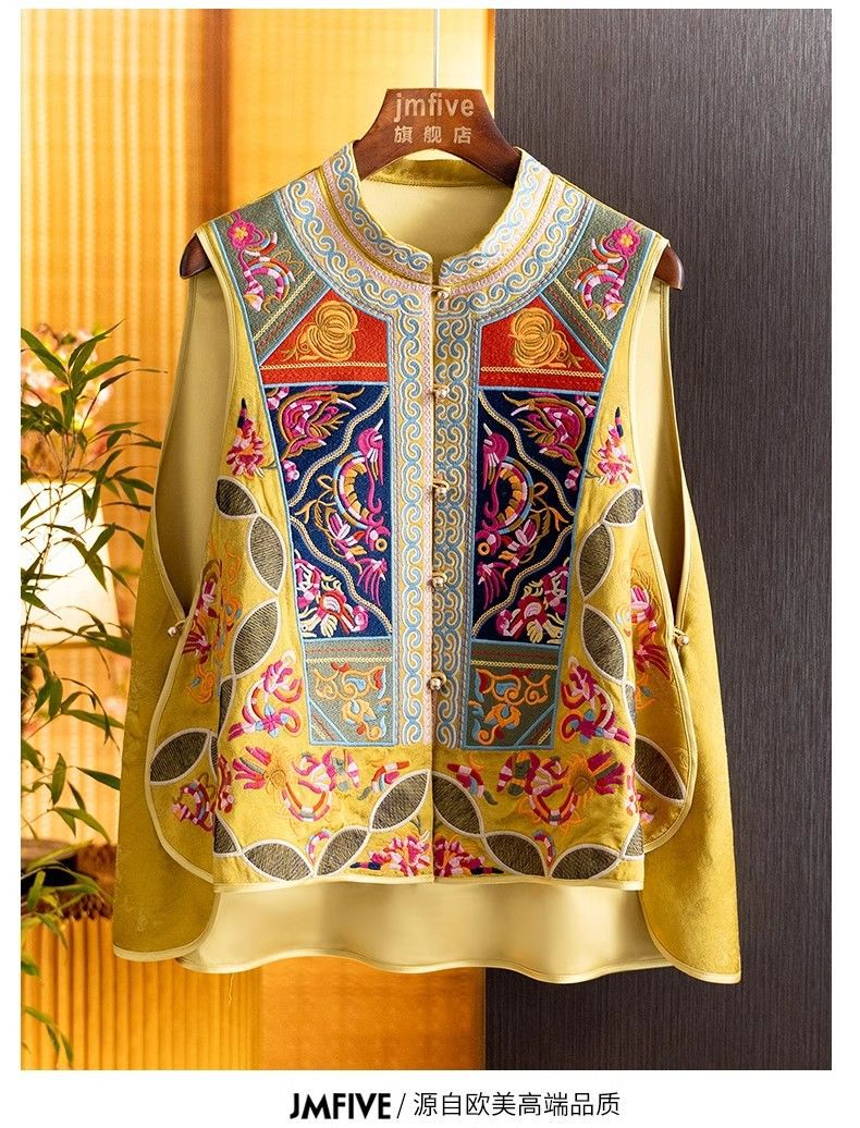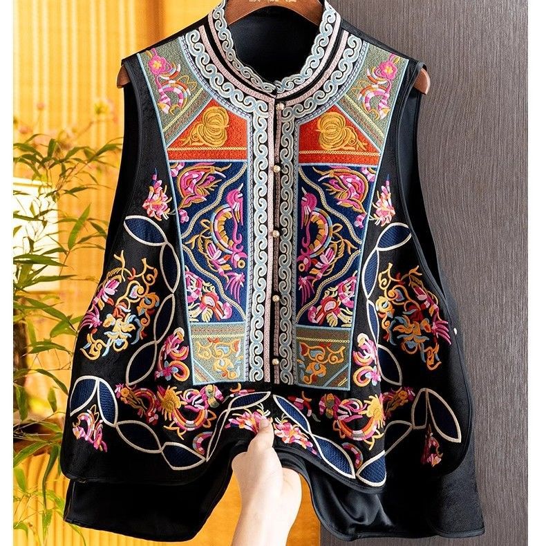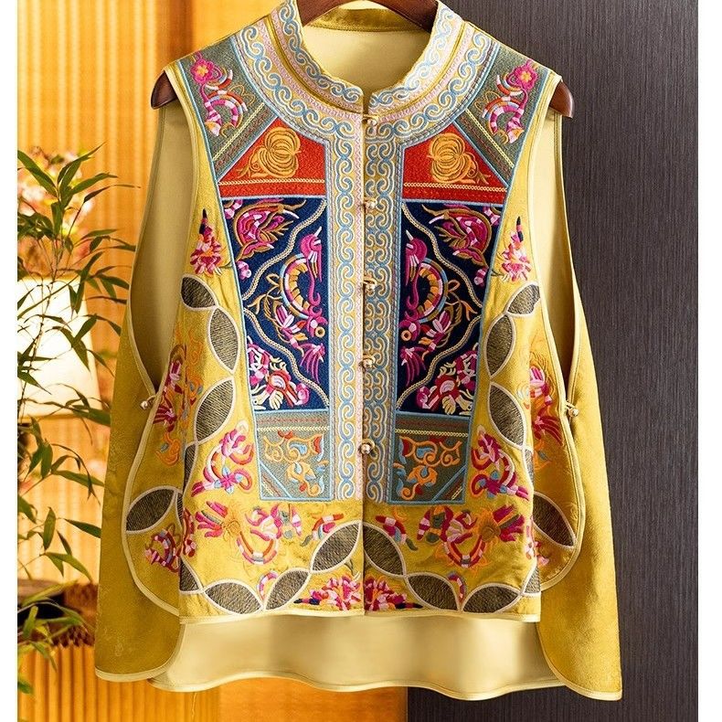 새로운 중국 스타일 컬러 매칭 문학 조끼 여성 2025 봄 새로운 빈티지 중공업 자수 쌓인 말벌스토어 가기