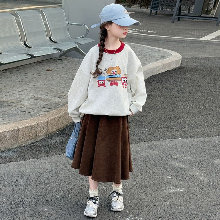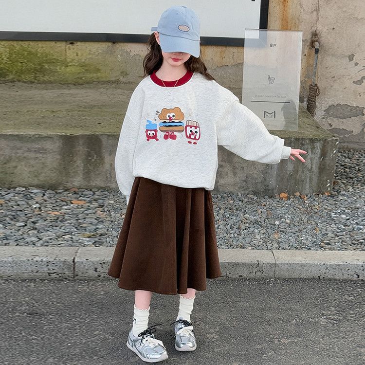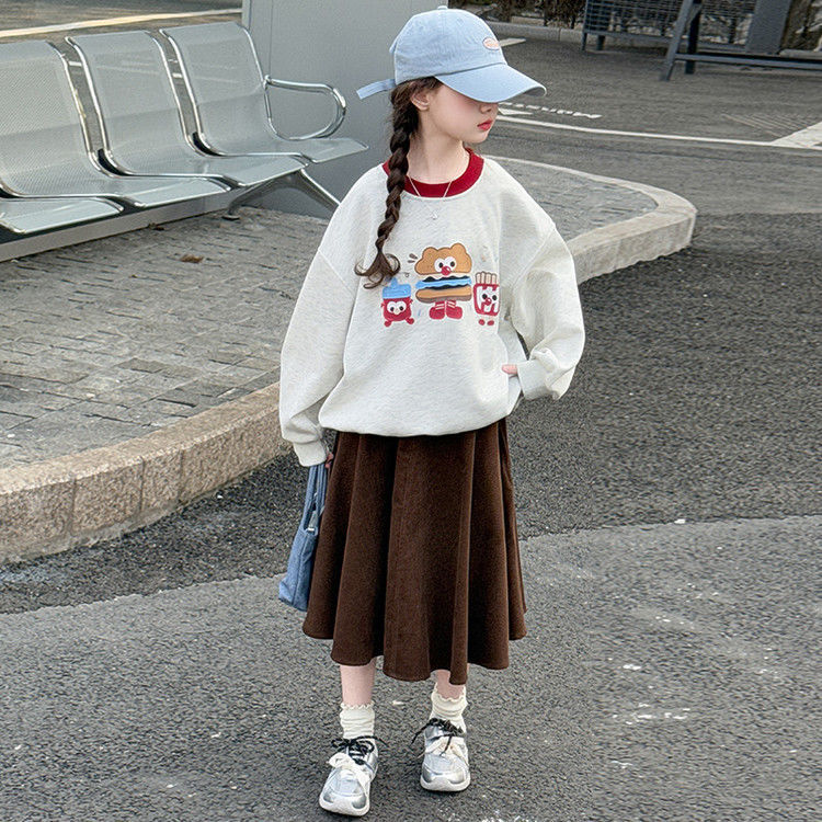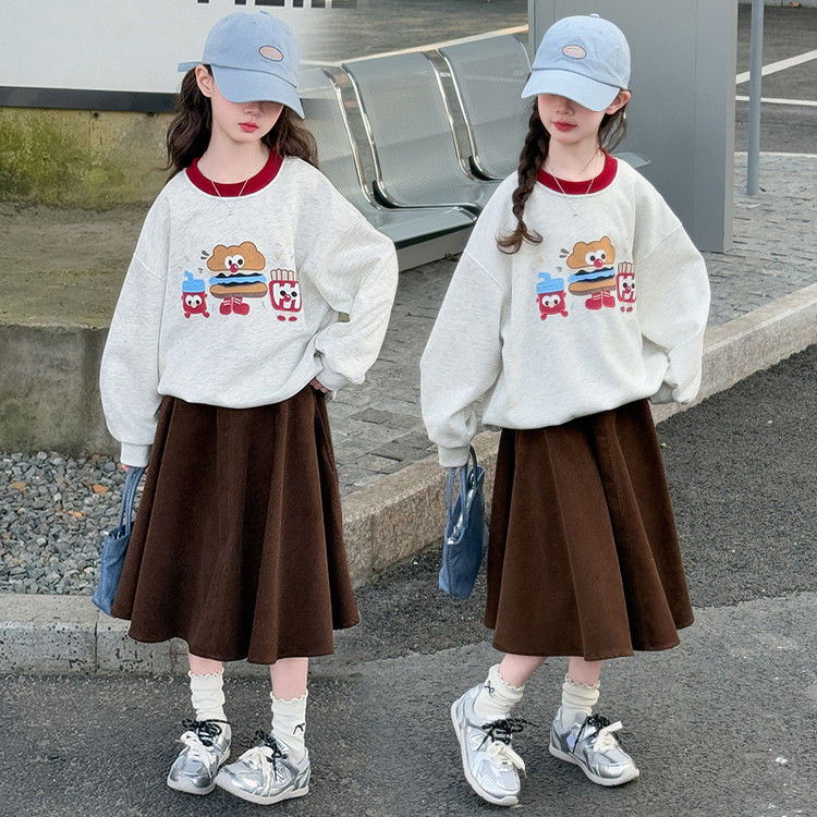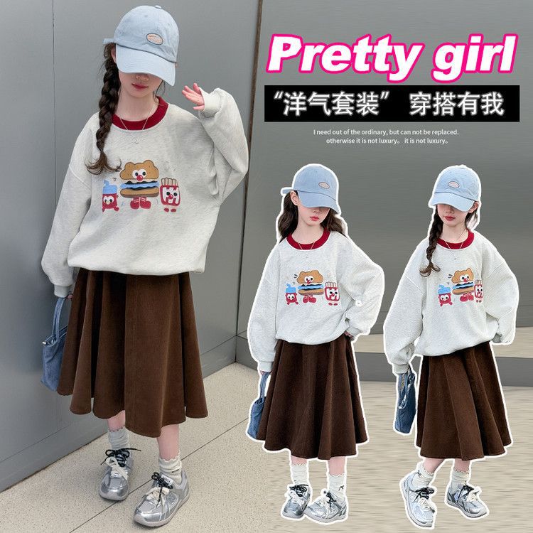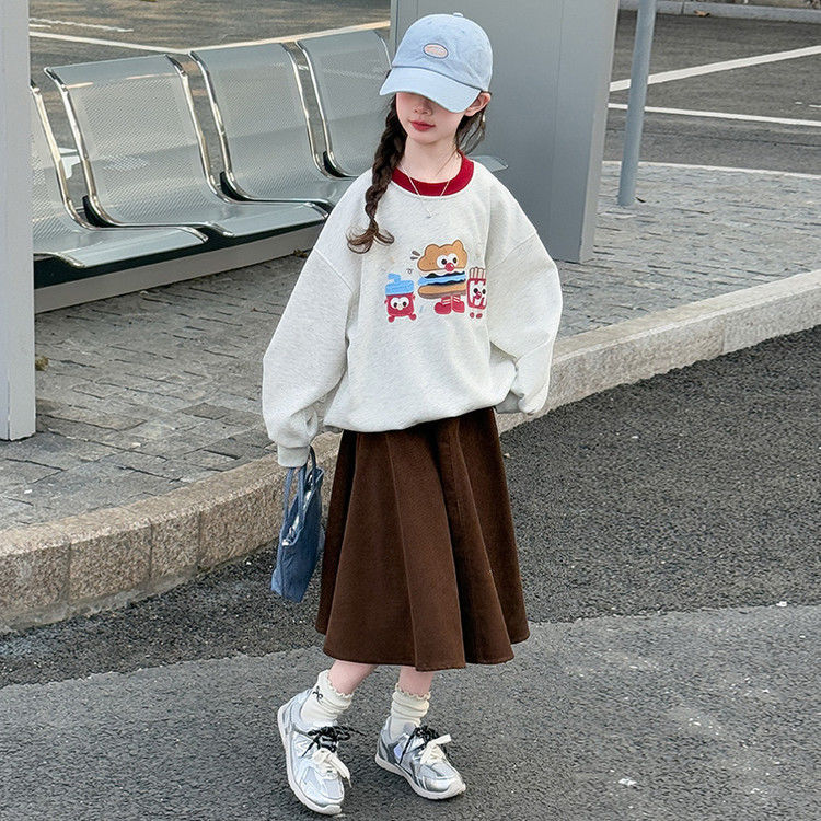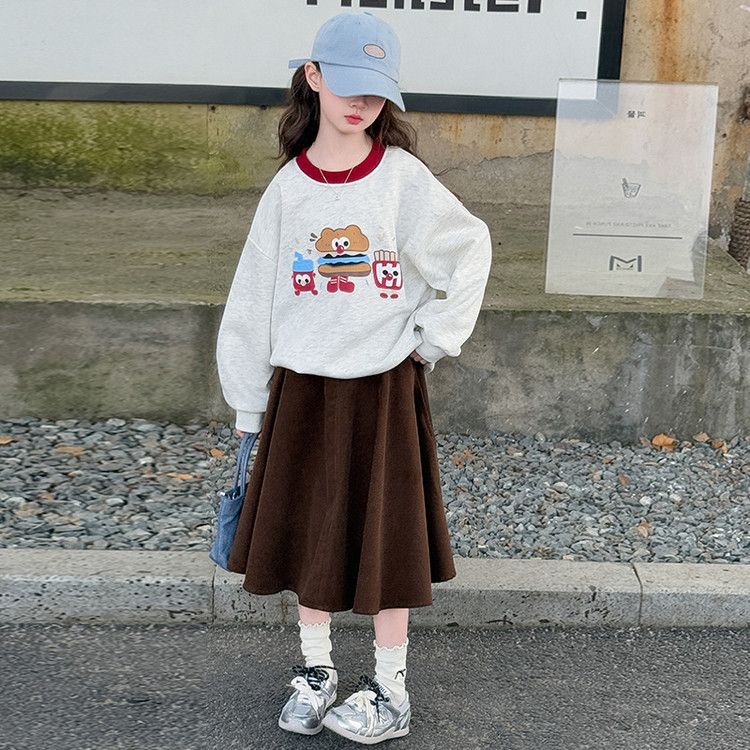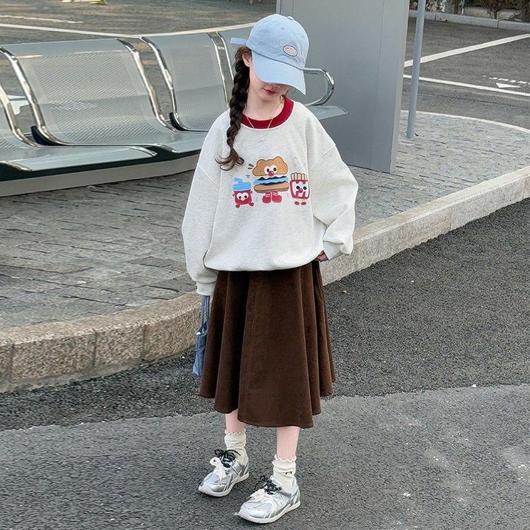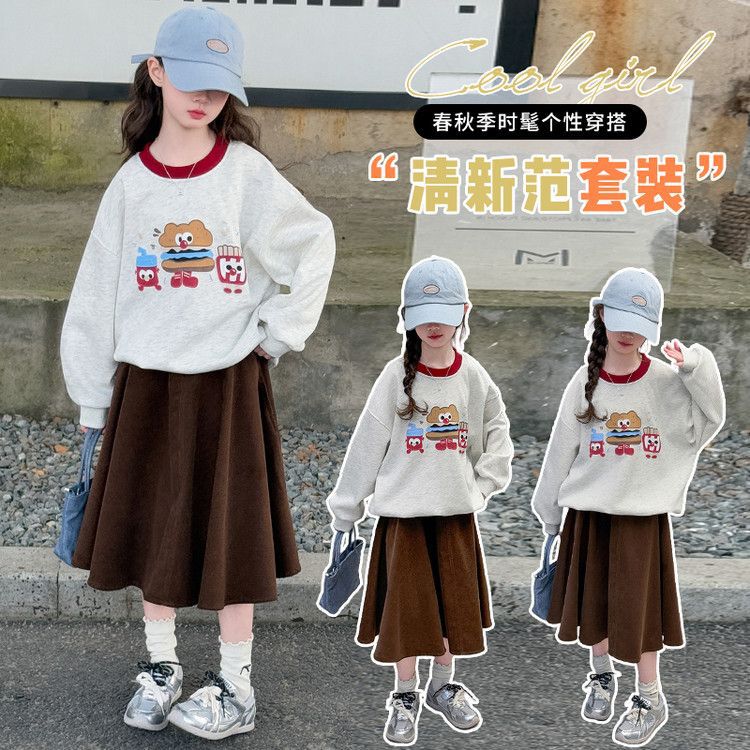 소녀의 봄과 가을 스웨트 셔츠 2025 새로운 어린이 소녀 큰 어린이 봄 원피스 서양식 유행 캐주얼 봄 긴 소매 탑스토어 가기
