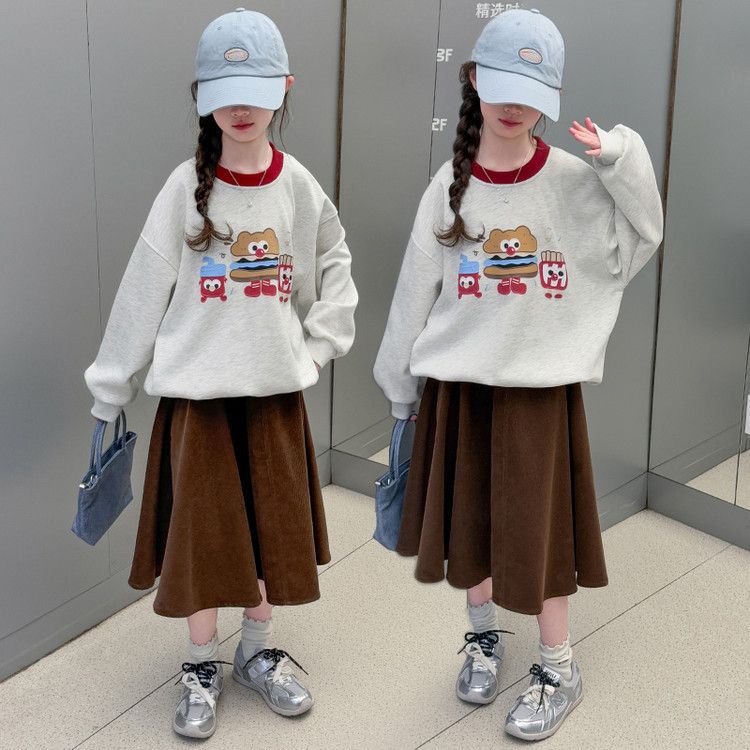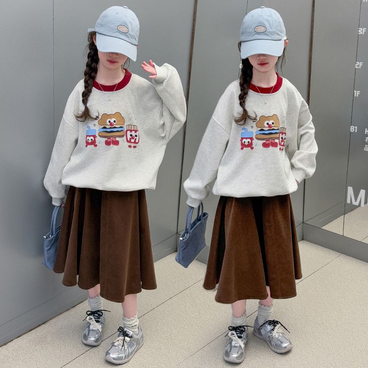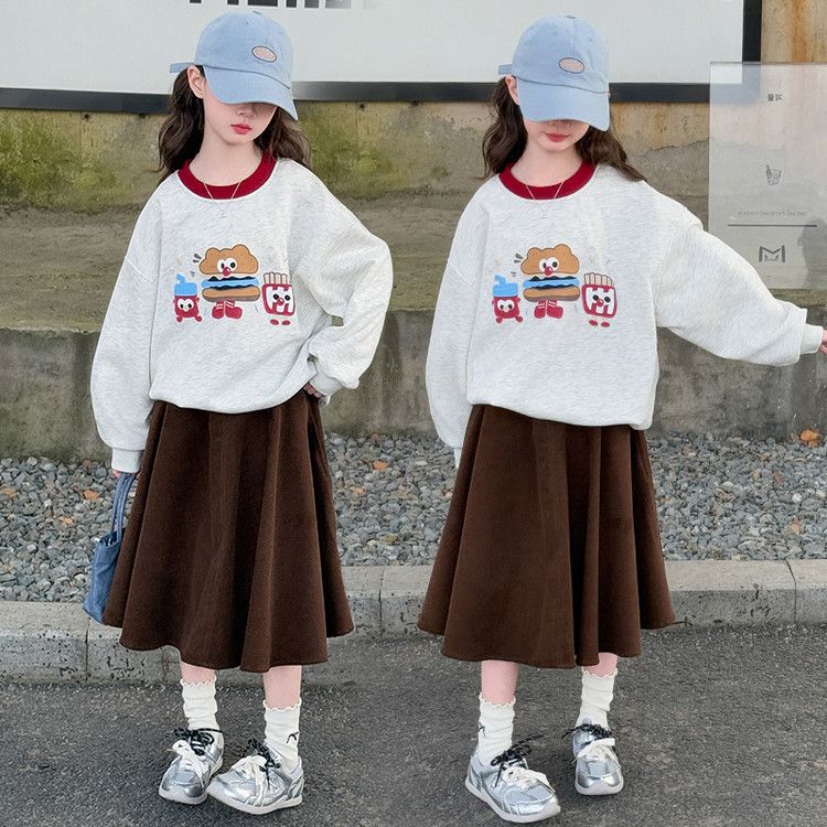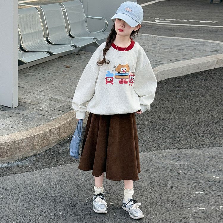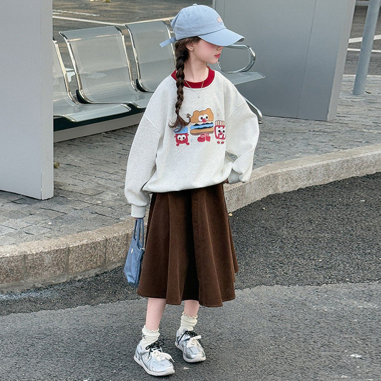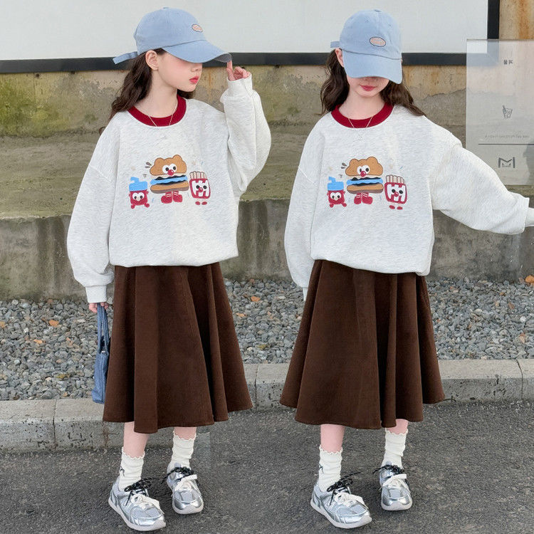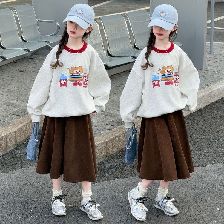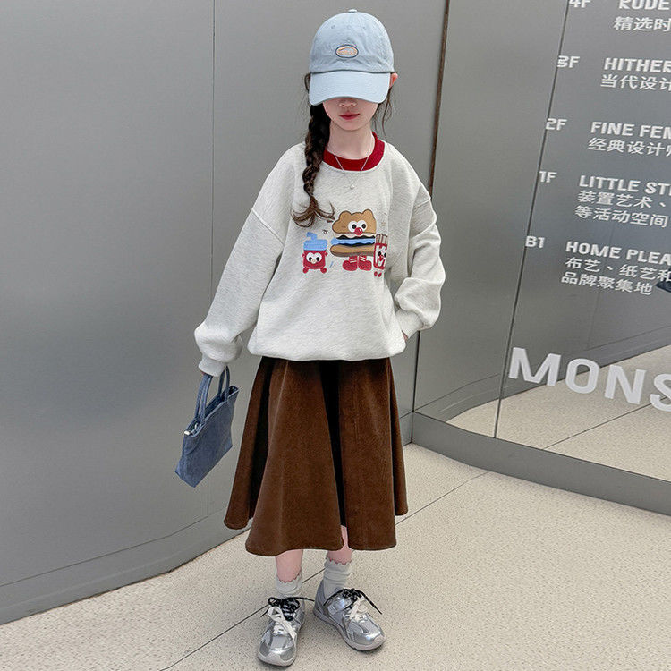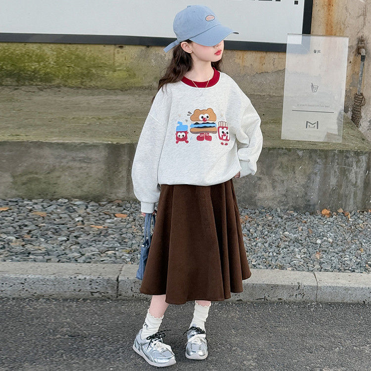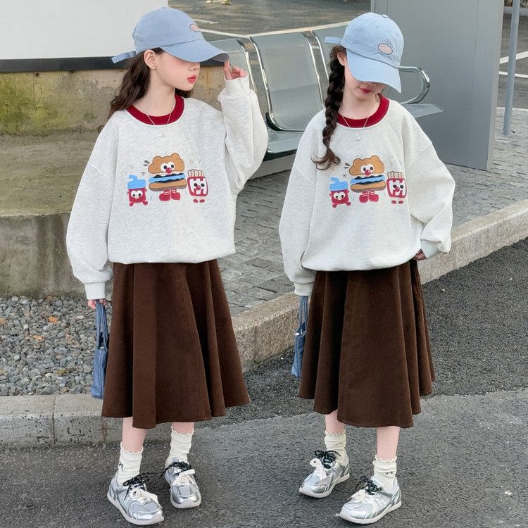 소녀의 봄과 가을 스웨트 셔츠 2025 새로운 어린이 소녀 큰 어린이 봄 원피스 서양식 유행 캐주얼 봄 긴 소매 탑스토어 가기