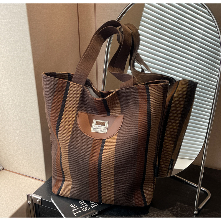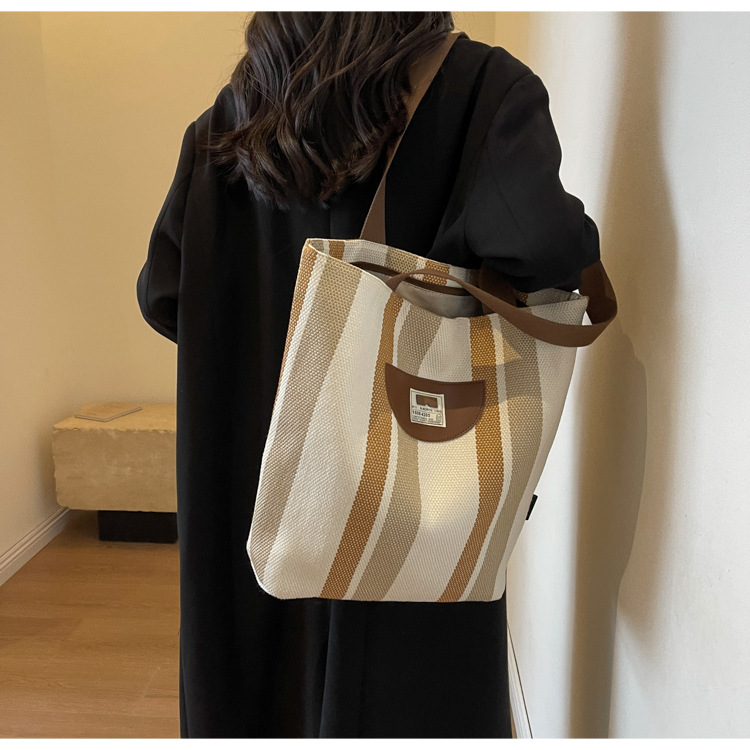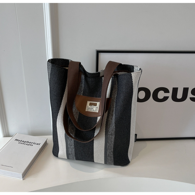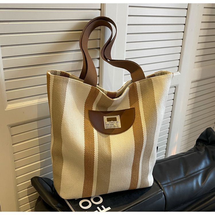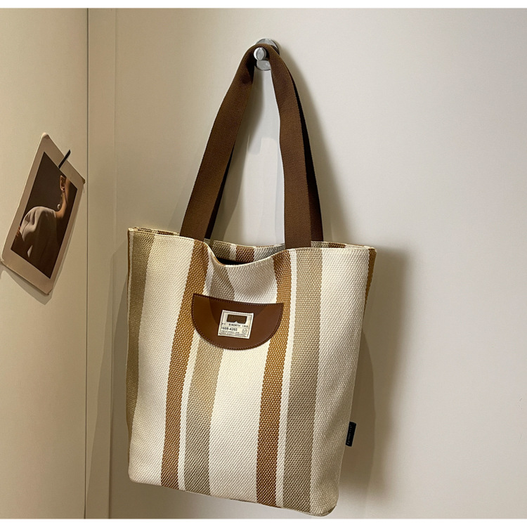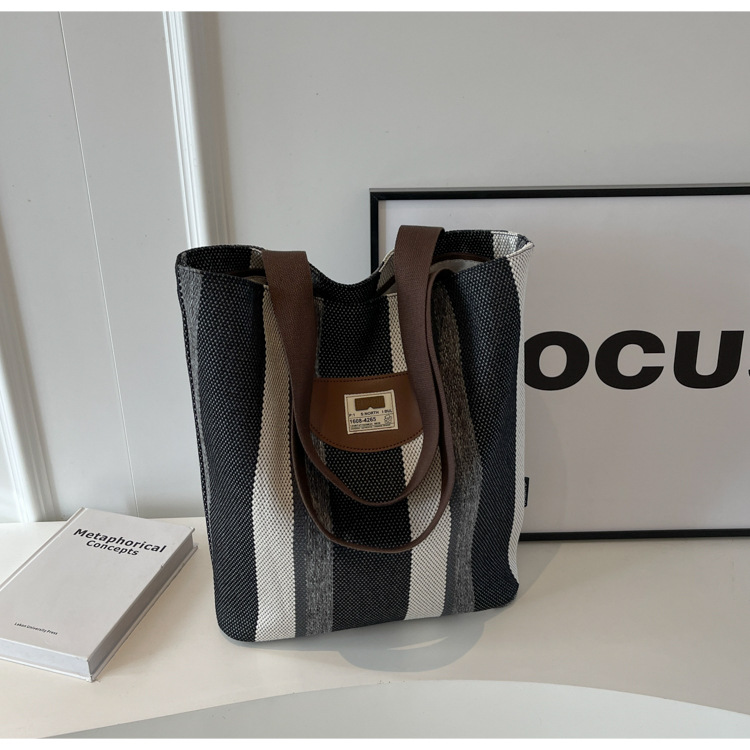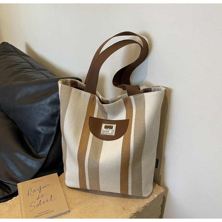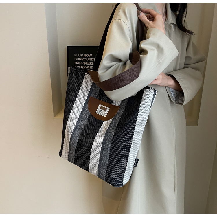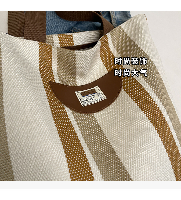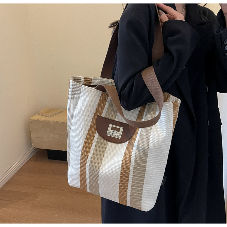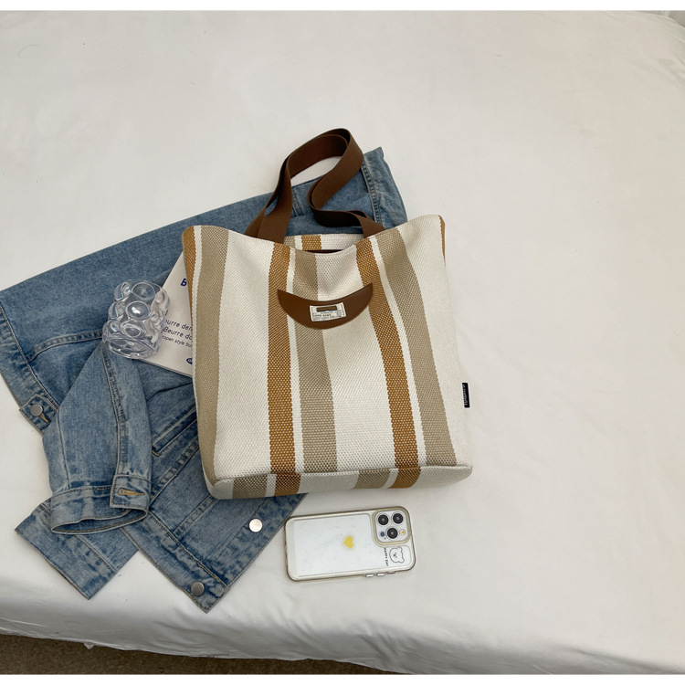 줄무늬 캔버스 가방 여성의 2025 새로운 여름 캐주얼 경량 어깨 가방 대용량 엄마 토트 가방 쇼핑백