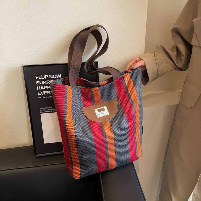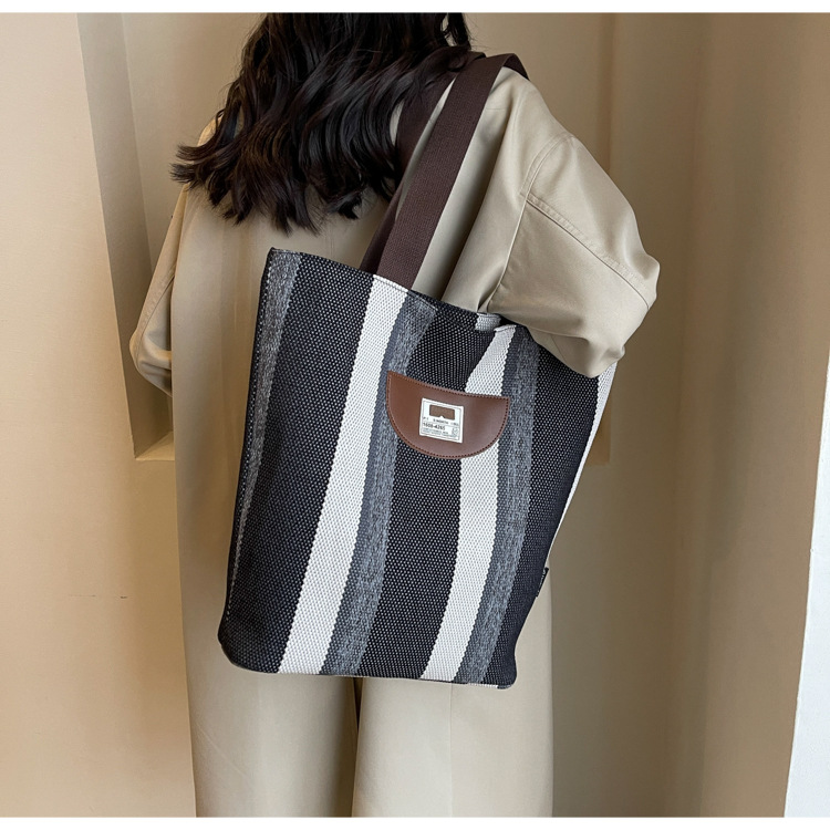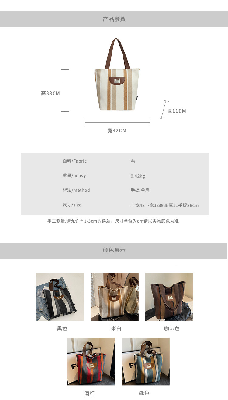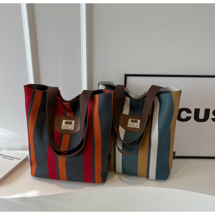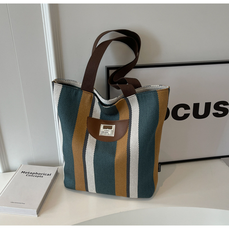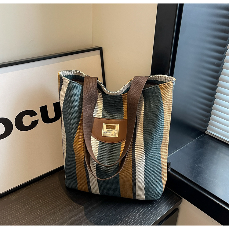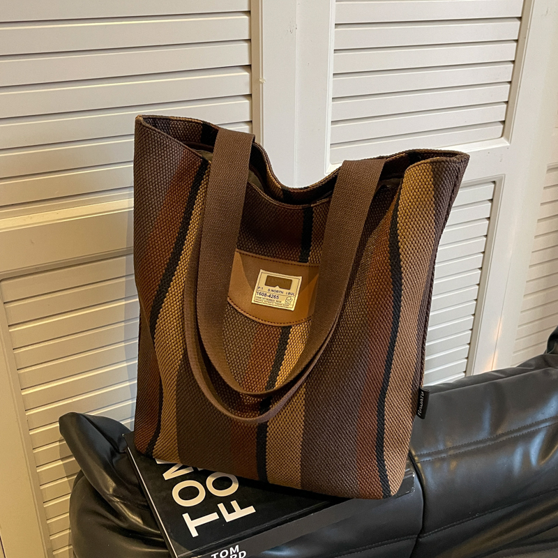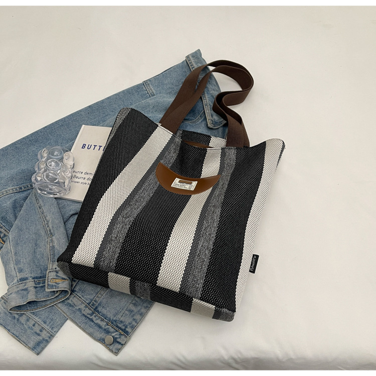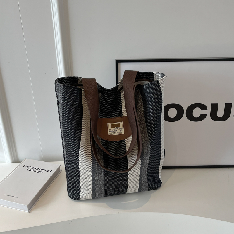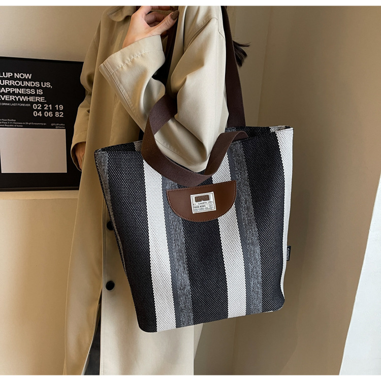줄무늬 캔버스 가방 여성의 2025 새로운 여름 캐주얼 경량 어깨 가방 대용량 엄마 토트 가방 쇼핑백