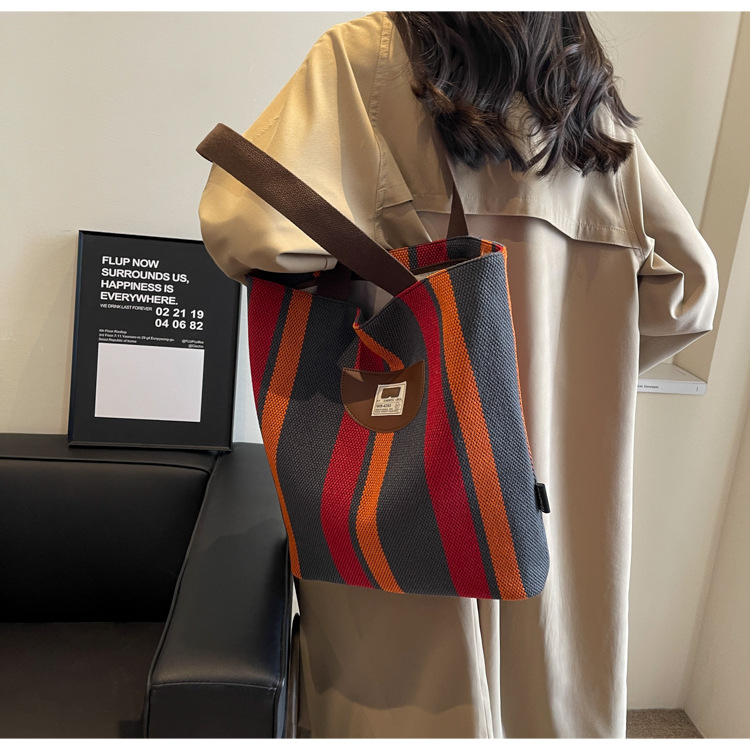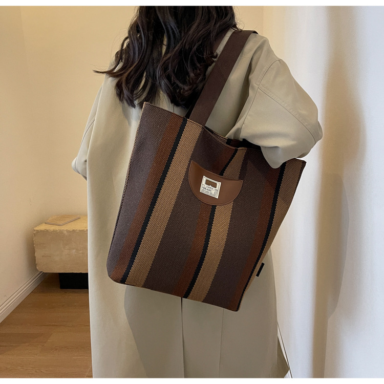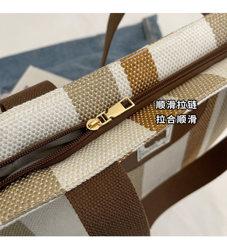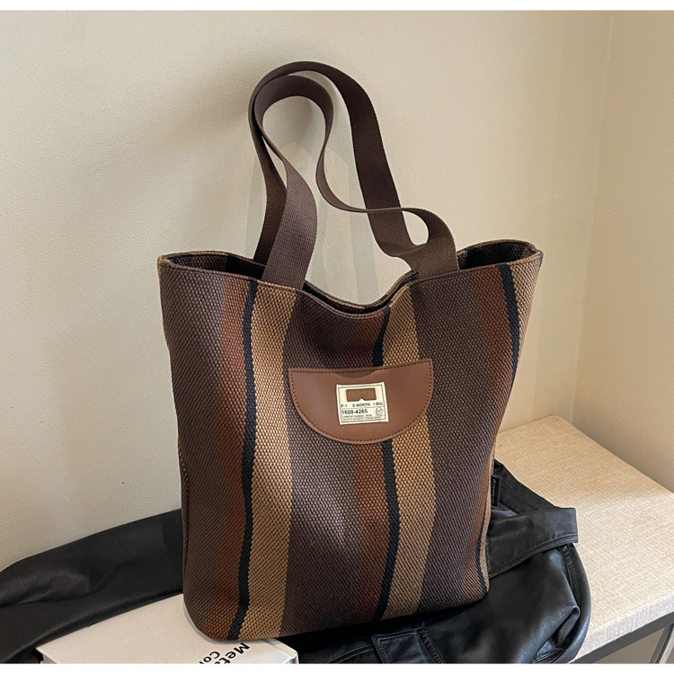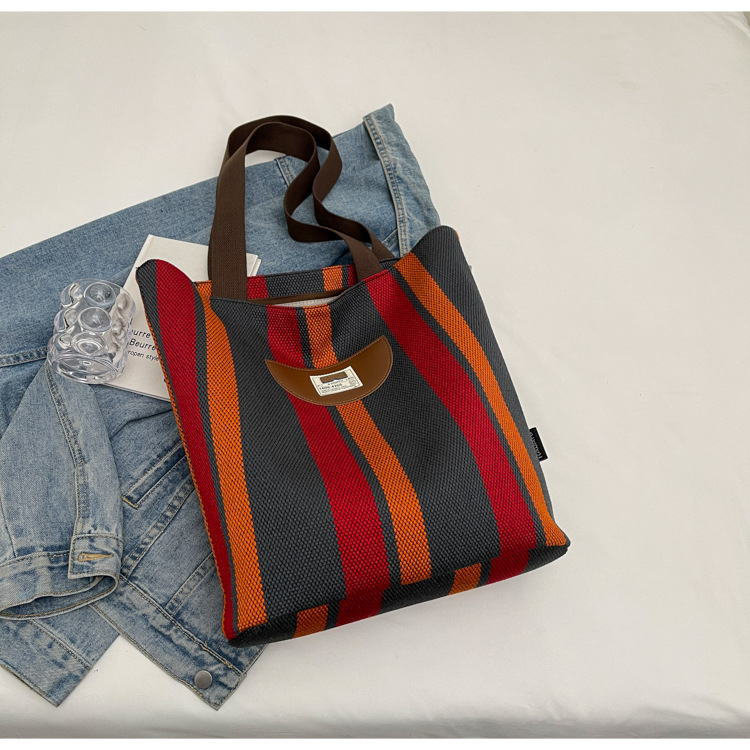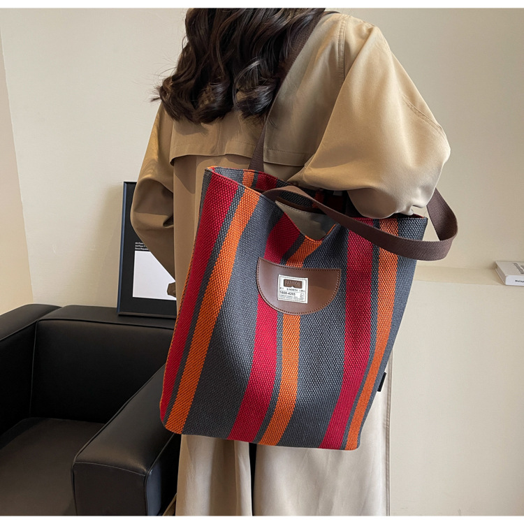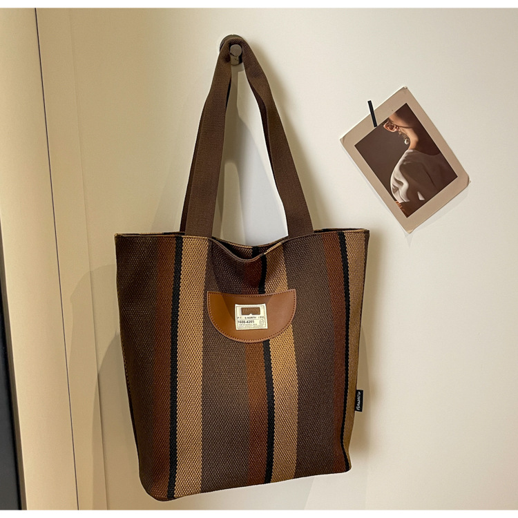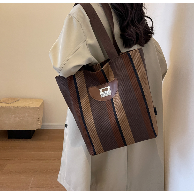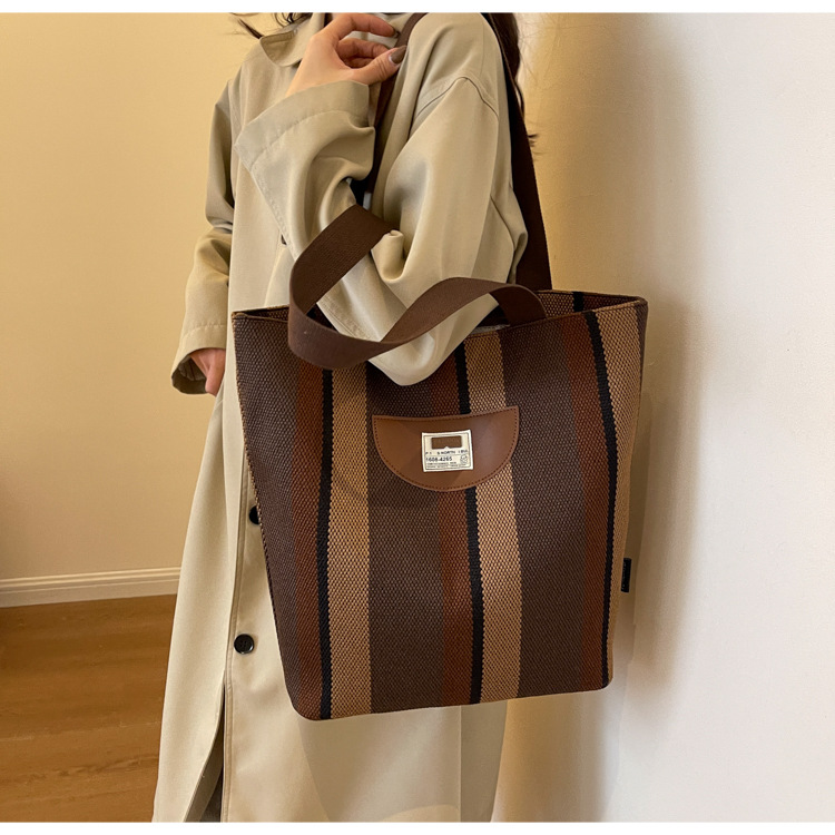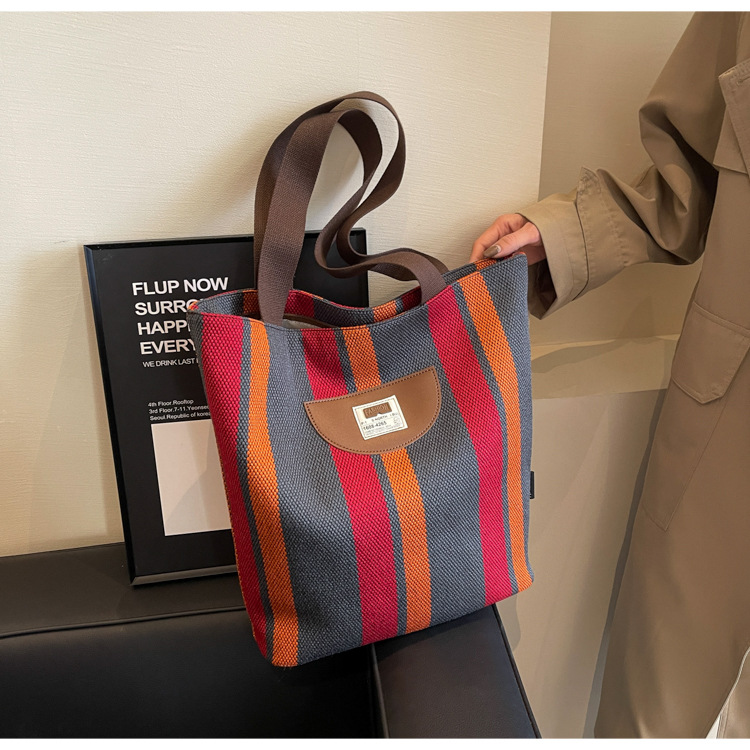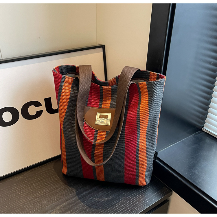 줄무늬 캔버스 가방 여성의 2025 새로운 여름 캐주얼 경량 어깨 가방 대용량 엄마 토트 가방 쇼핑백