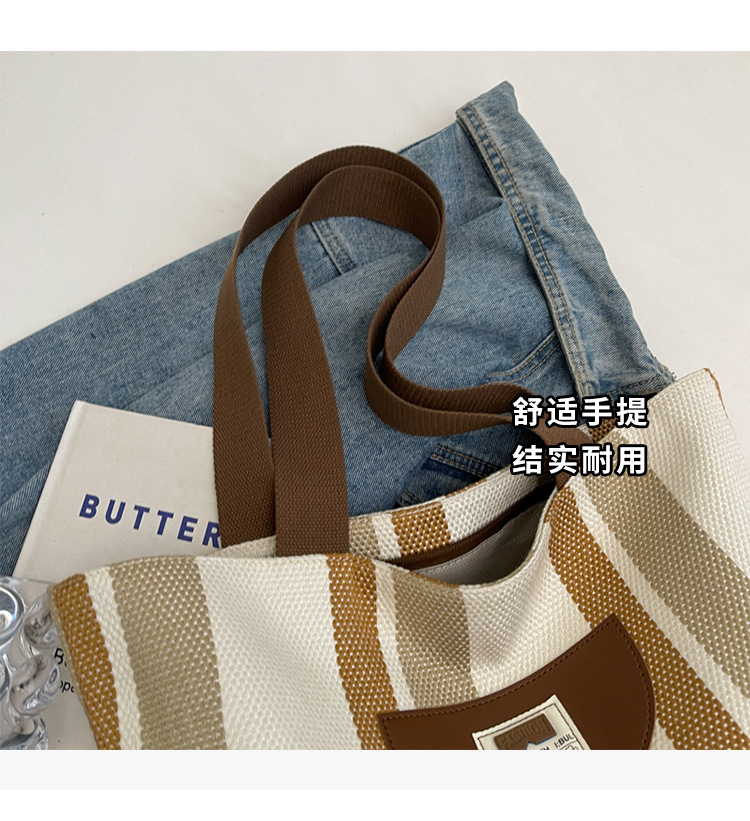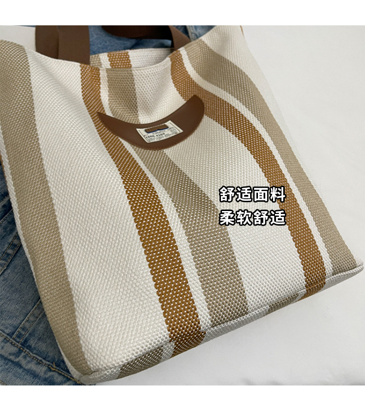줄무늬 캔버스 가방 여성의 2025 새로운 여름 캐주얼 경량 어깨 가방 대용량 엄마 토트 가방 쇼핑백스토어 가기