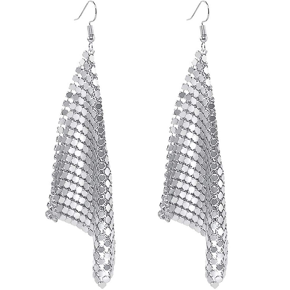 8cm 세련된 과장된 기질 금속 스팽글 귀걸이 크리 에이 티브 사각형 기하학 긴 나이트 클럽 파티 귀걸이 액세서리스토어 가기