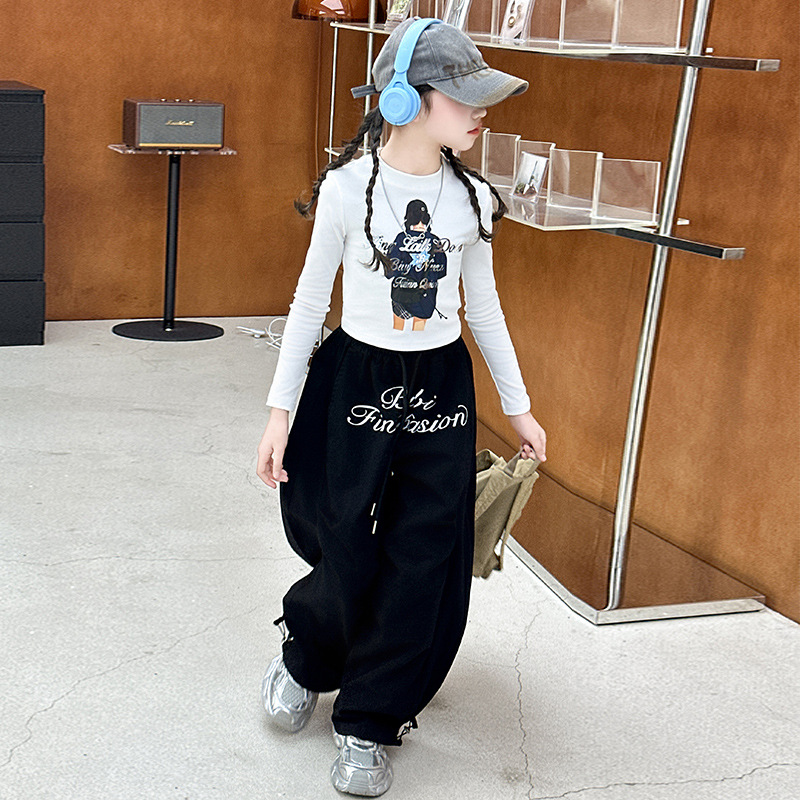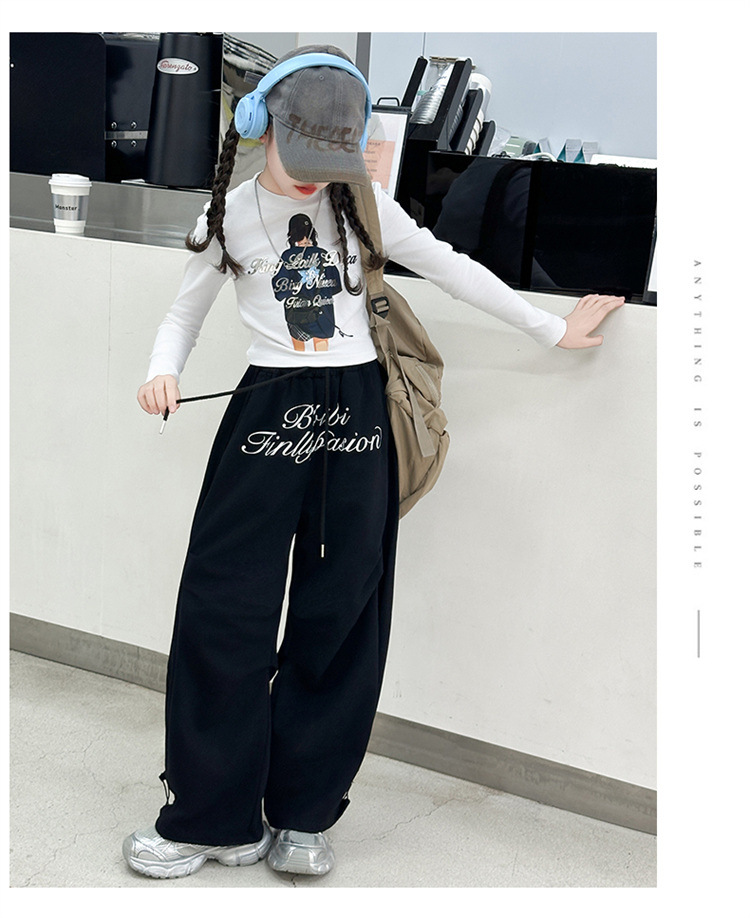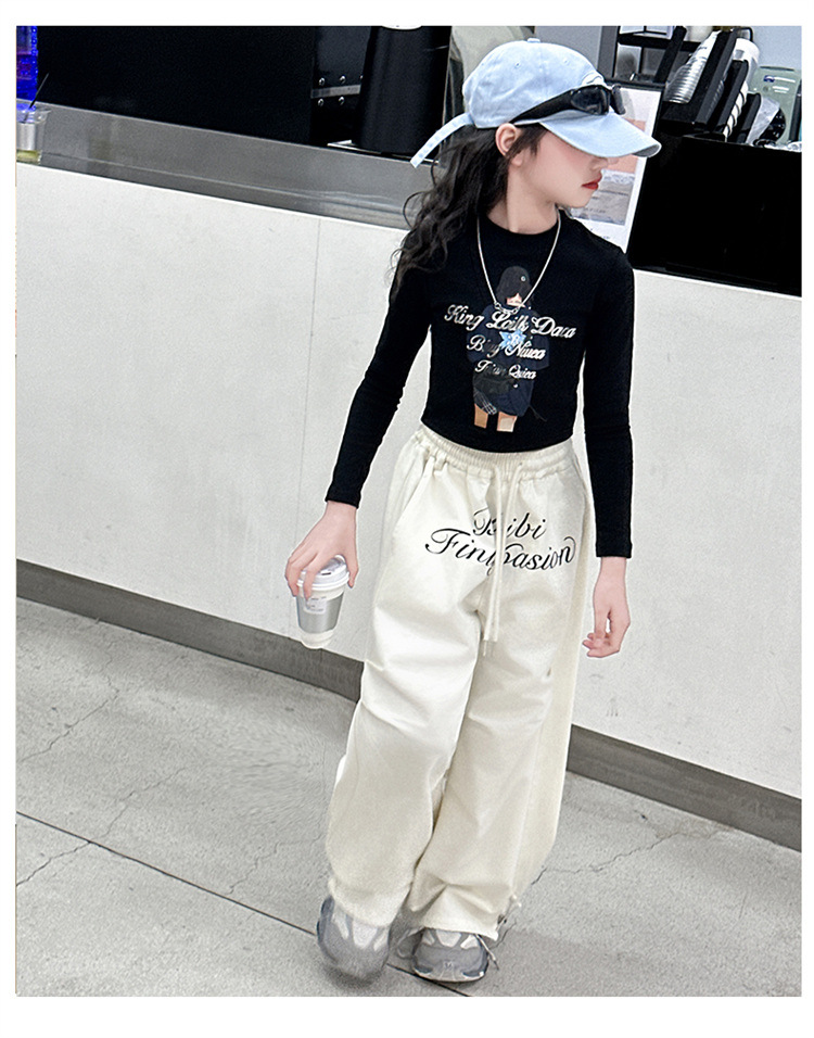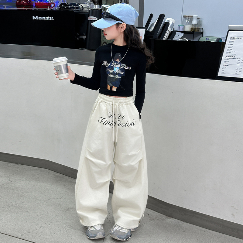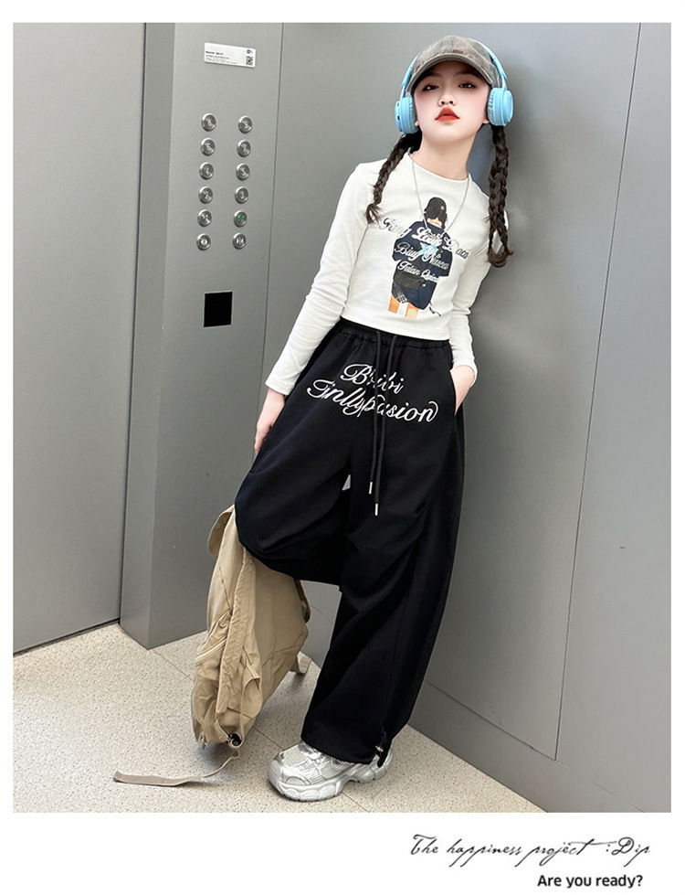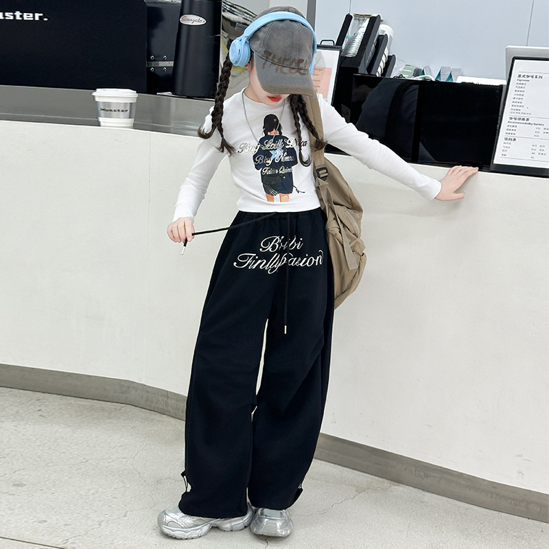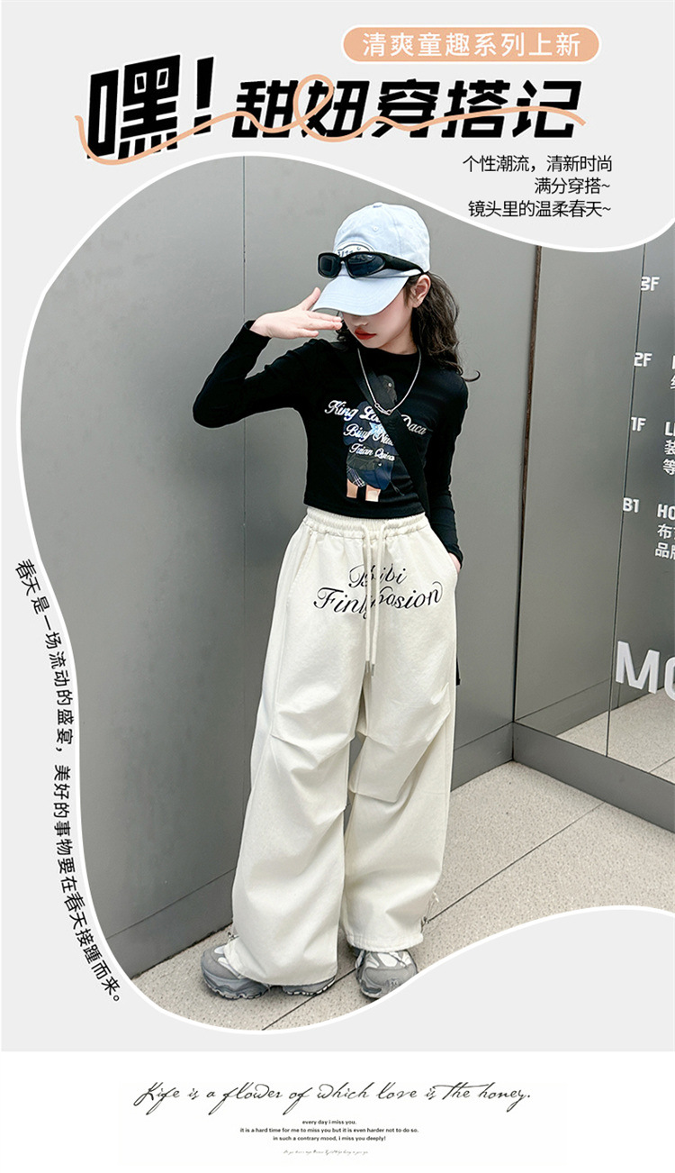소녀 세트 봄 한국 스타일 아동복 프라이드 스트리트 인터넷 연예인 캐주얼 긴 소매 스트레이트 다리 바지 학생 및 소녀 Huzhou Zhili
