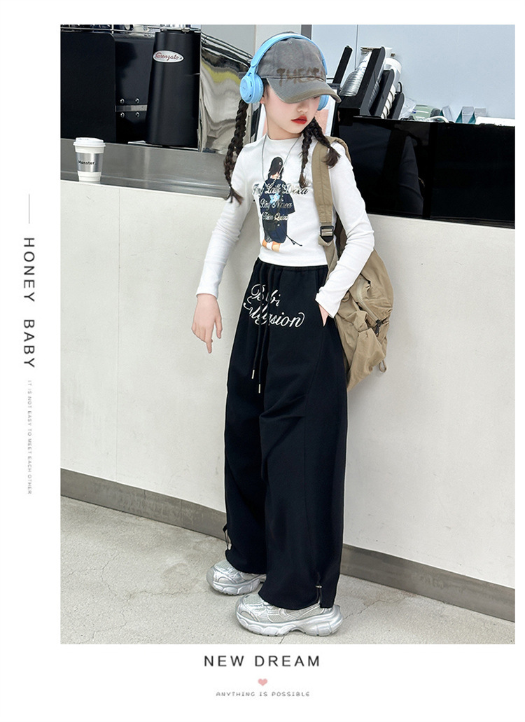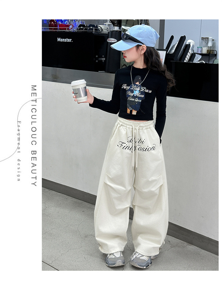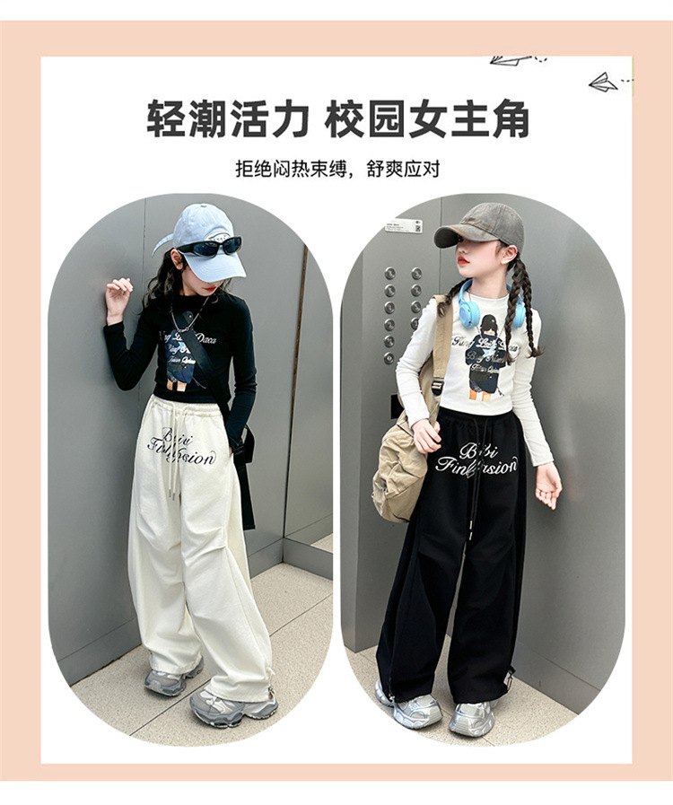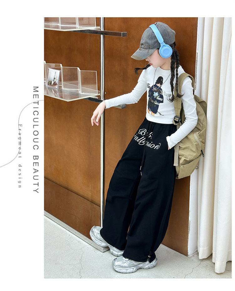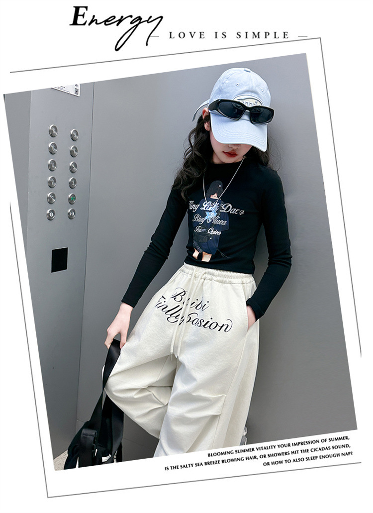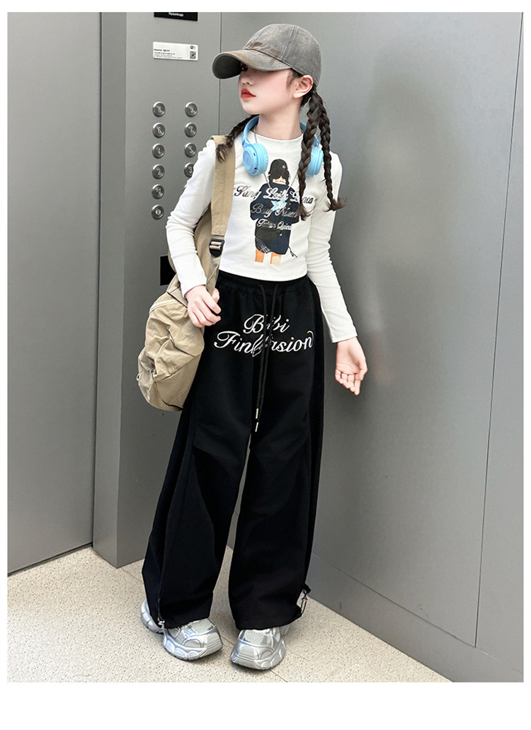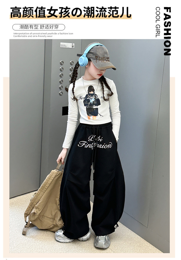 소녀 세트 봄 한국 스타일 아동복 프라이드 스트리트 인터넷 연예인 캐주얼 긴 소매 스트레이트 다리 바지 학생 및 소녀 Huzhou Zhili