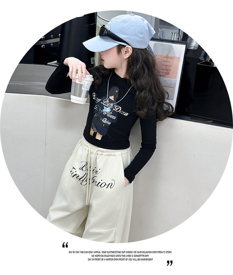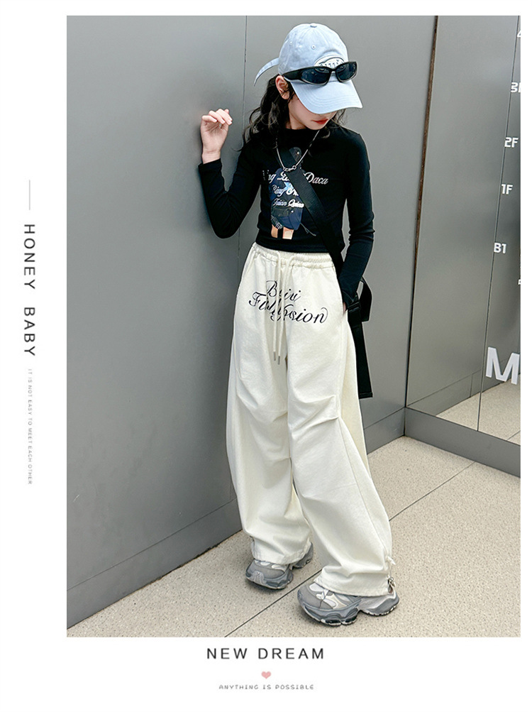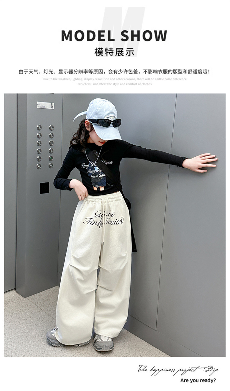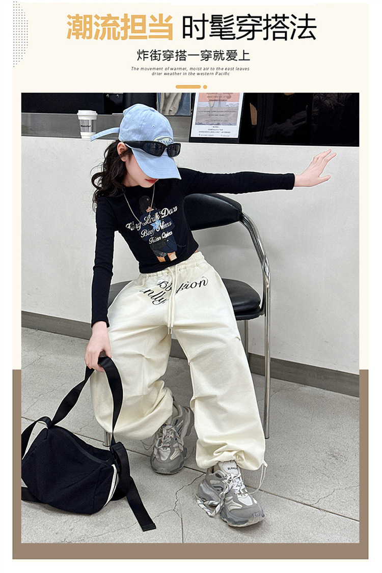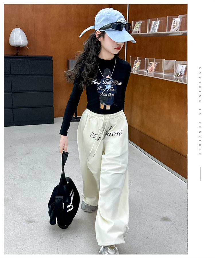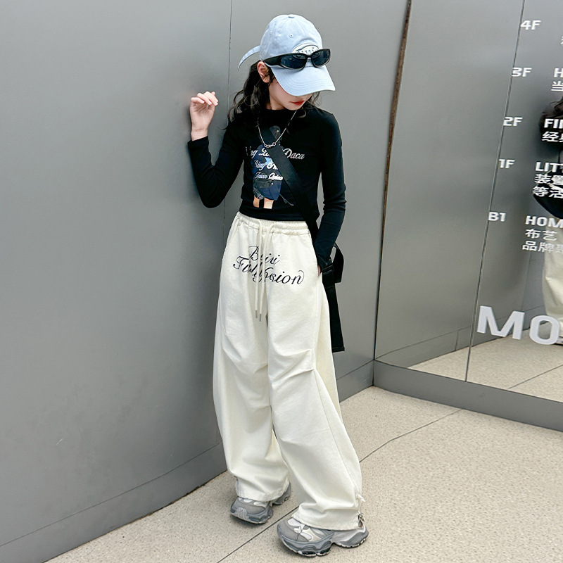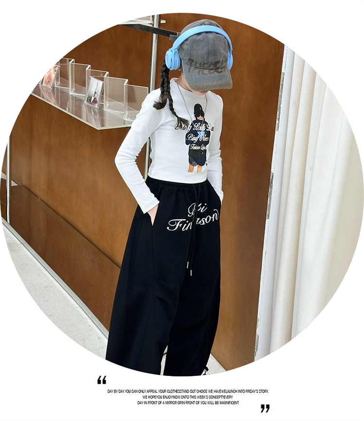 소녀 세트 봄 한국 스타일 아동복 프라이드 스트리트 인터넷 연예인 캐주얼 긴 소매 스트레이트 다리 바지 학생 및 소녀 Huzhou Zhili