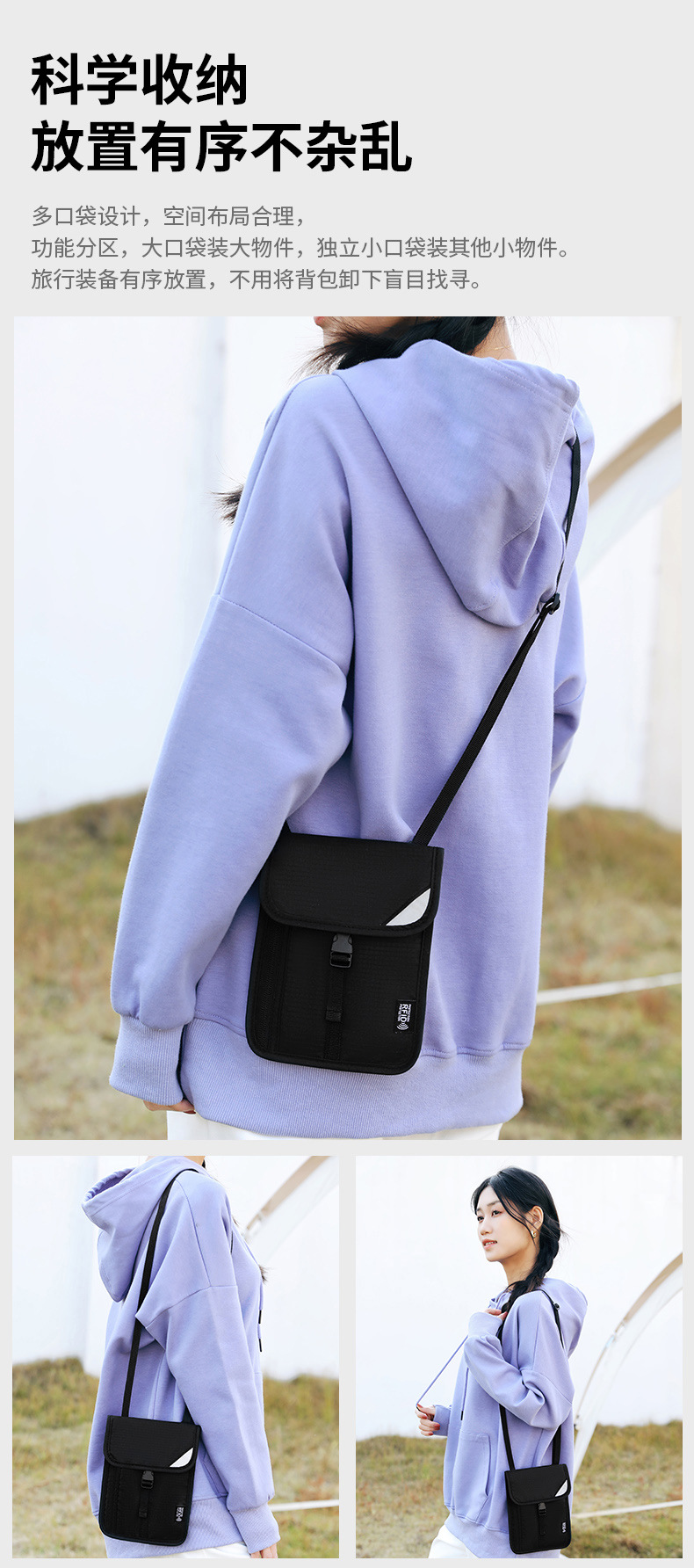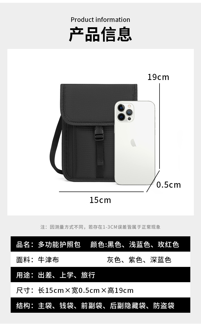공장 직접 RFID 차폐 도난 브러시 대용량 저장 다층 교수형 목 옥스포드 천 여권 ID 가방스토어 가기