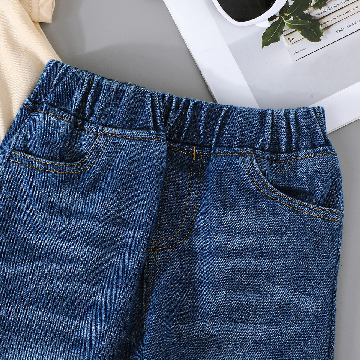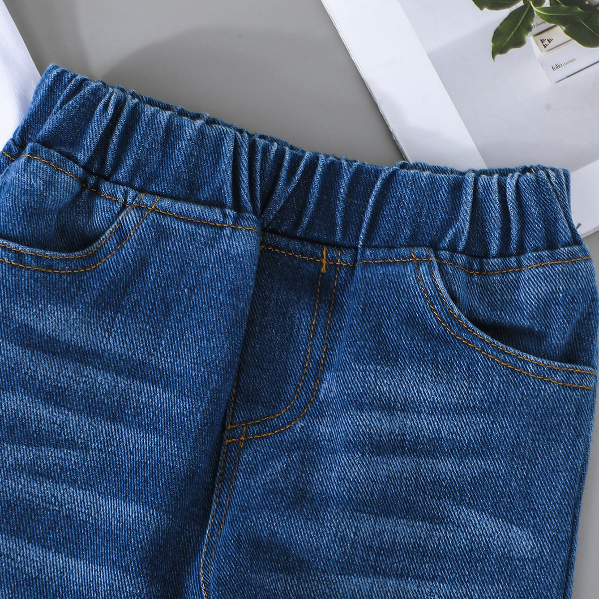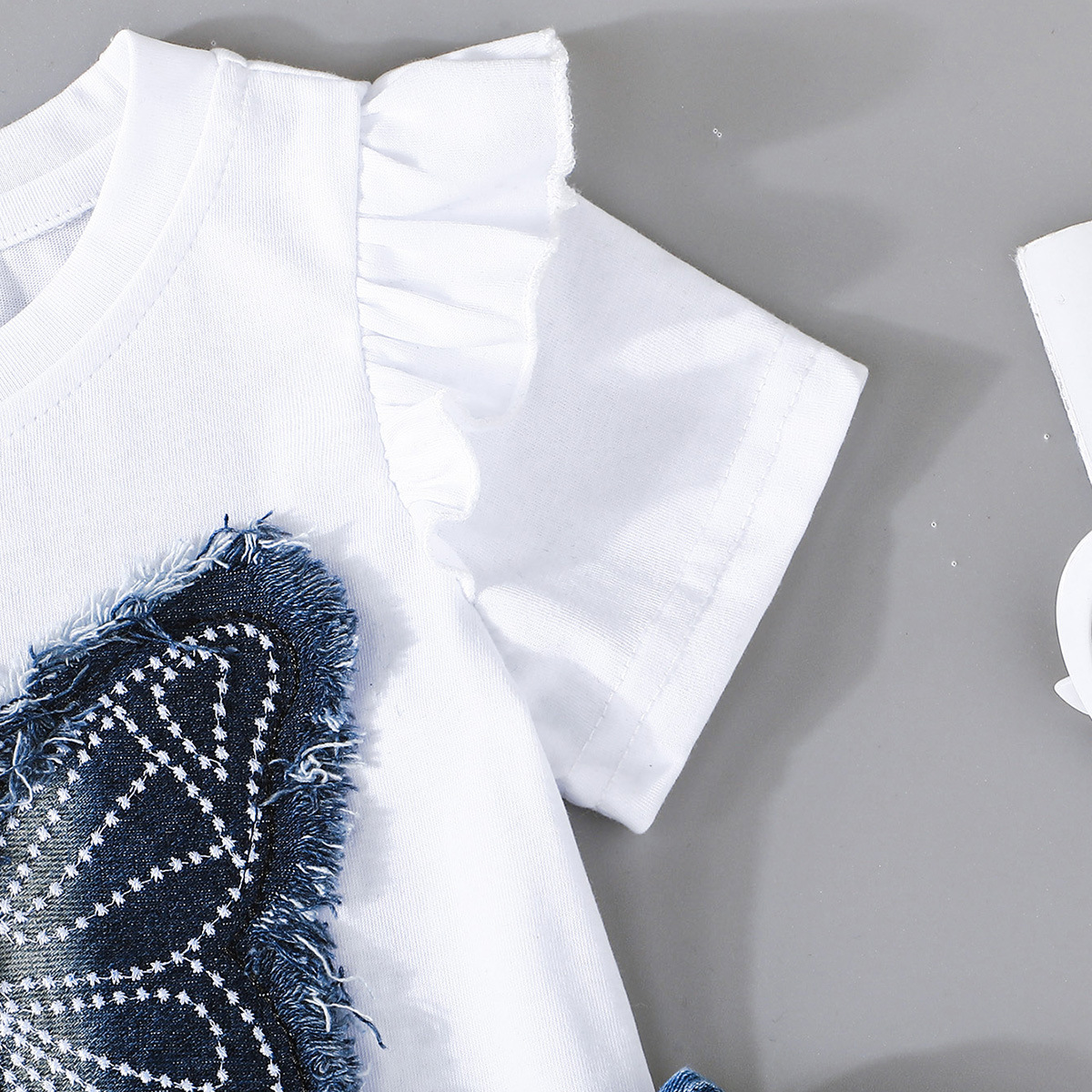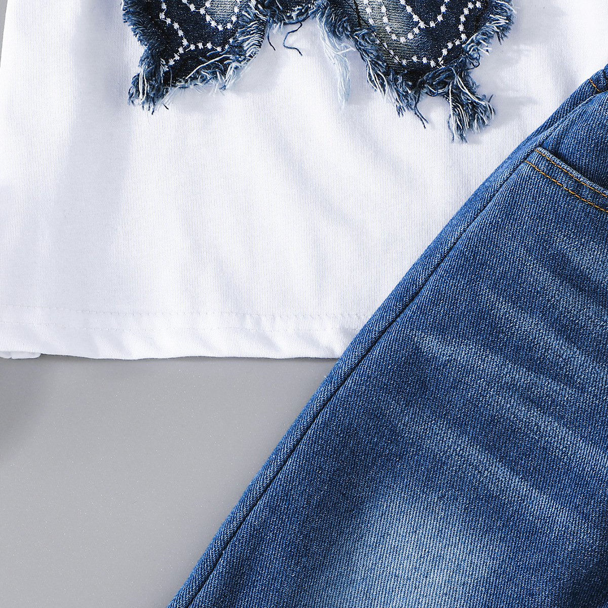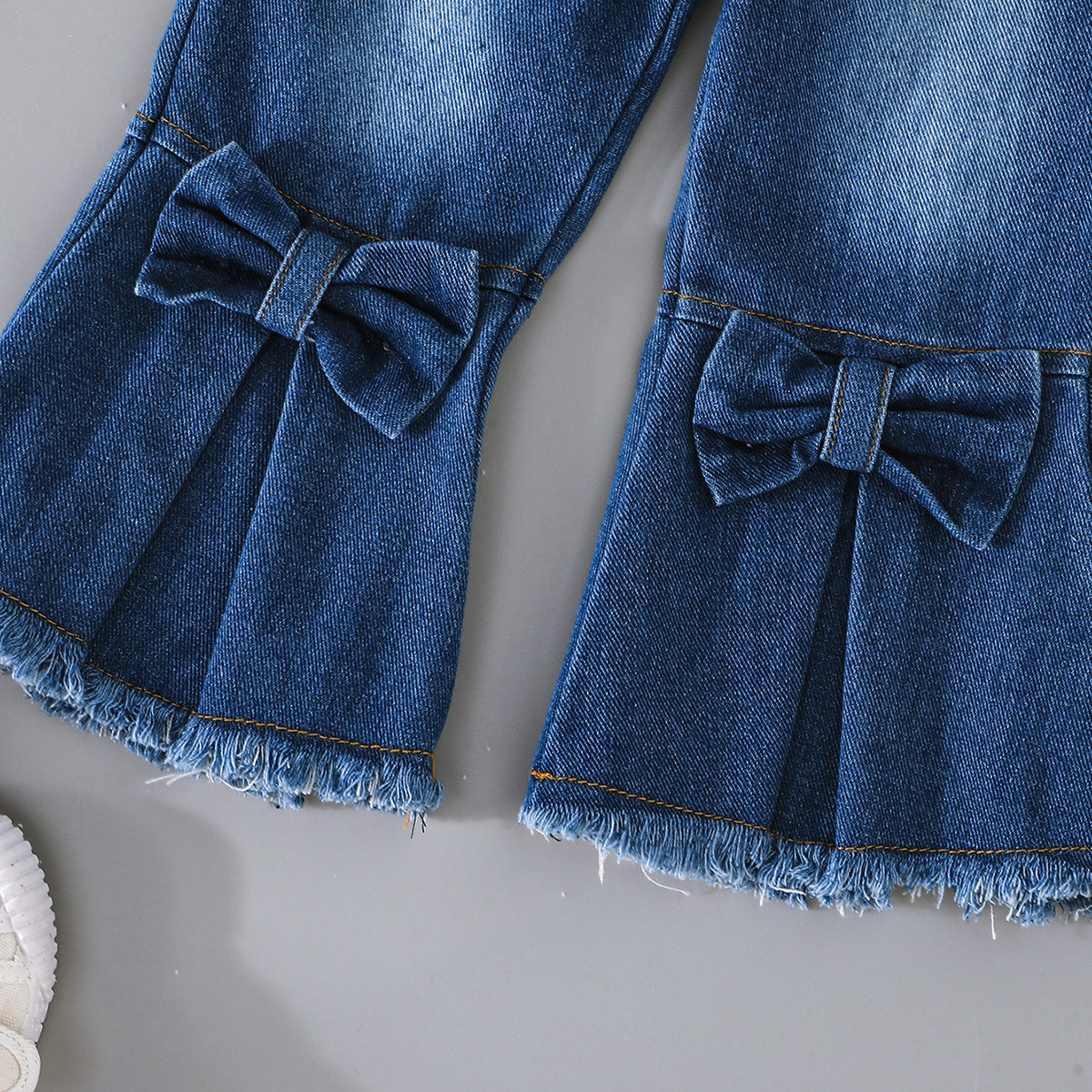 2025 여름 소녀 캐주얼 나비 인쇄 짧은 소매 재킷 데님 나비 장식 플레어 바지 세트 머리카락스토어 가기