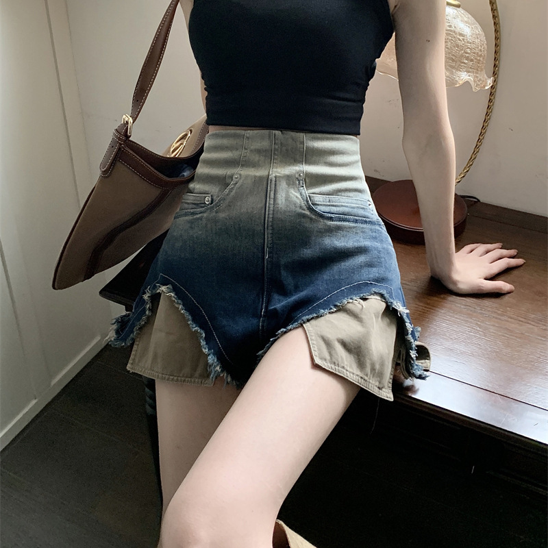 뜨거운 소녀 그라디언트 빈티지 데님 반바지 여성 여름 Ins 유행 높은 허리 뜨거운 바지 작은 직선 넓은 다리 바지스토어 가기