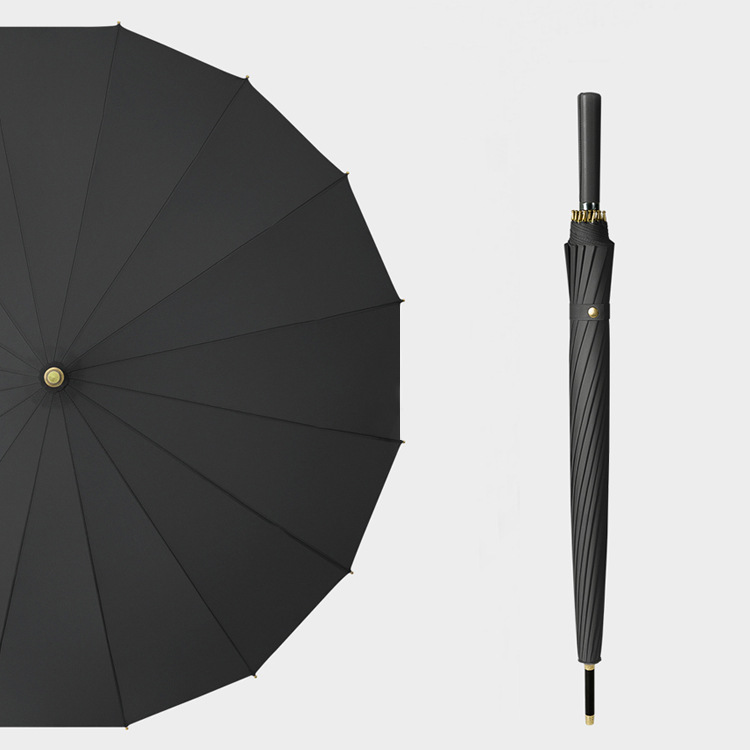 일본식 16 뼈 신선한 가죽 손잡이 후크 스트레이트 로드 우산 이중 사용 맑고 비오는 선물 광고 우산스토어 가기