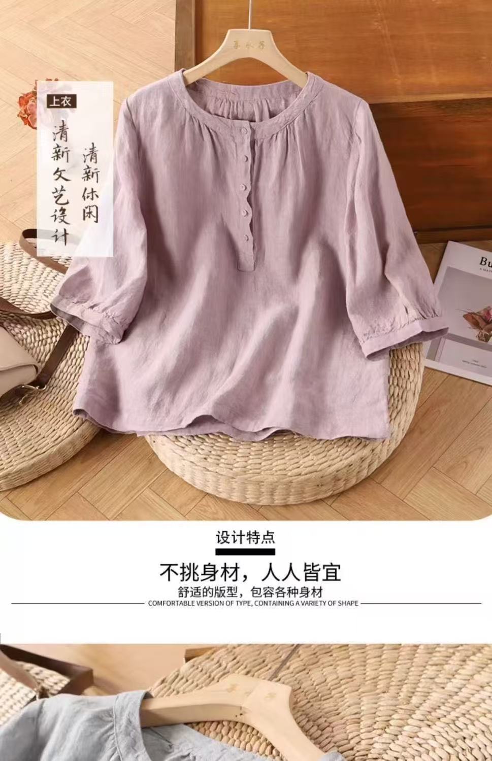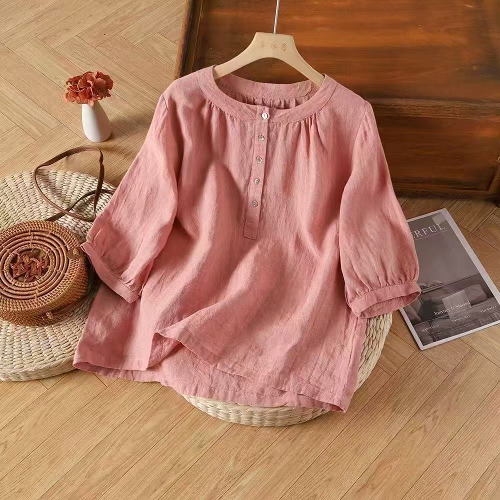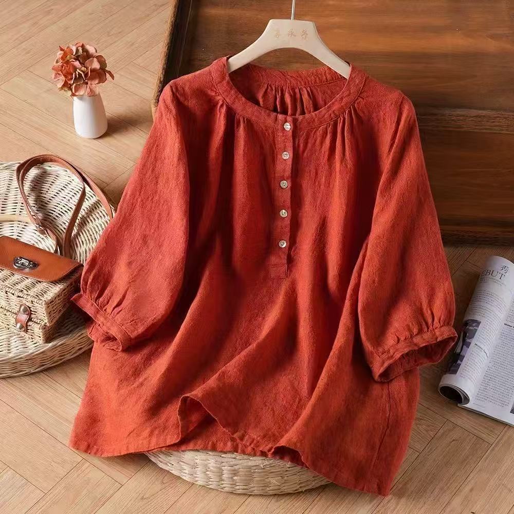 빈티지 코튼 리넨 셔츠 여성용 반소매 봄과 여름 새로운면 작은 셔츠 느슨한 배 덮음 최고 어머니의 플러스 사이즈 셔츠스토어 가기