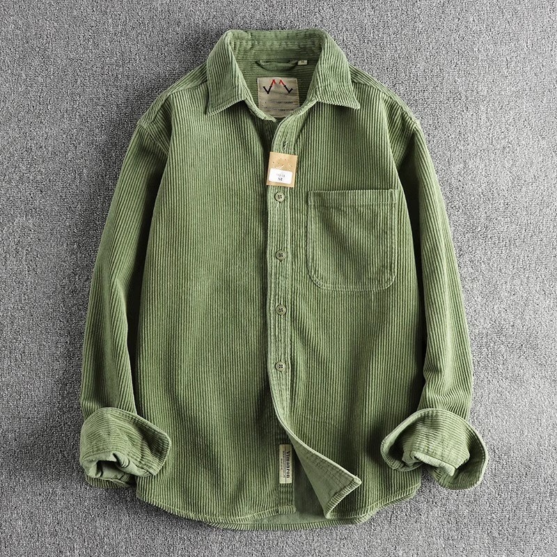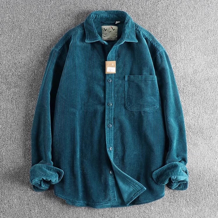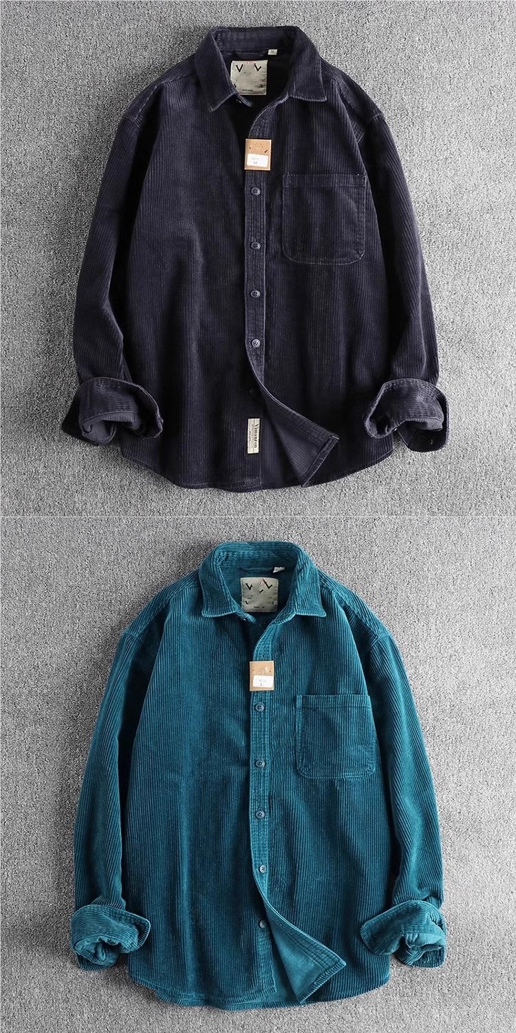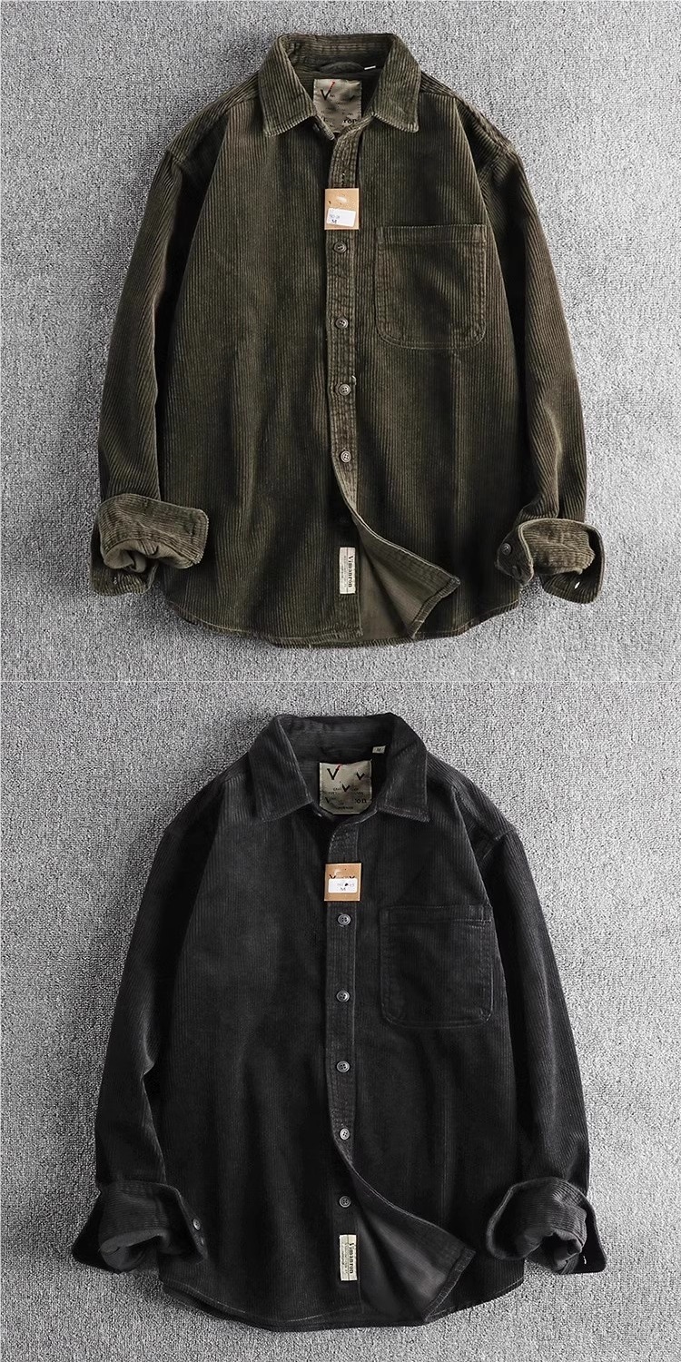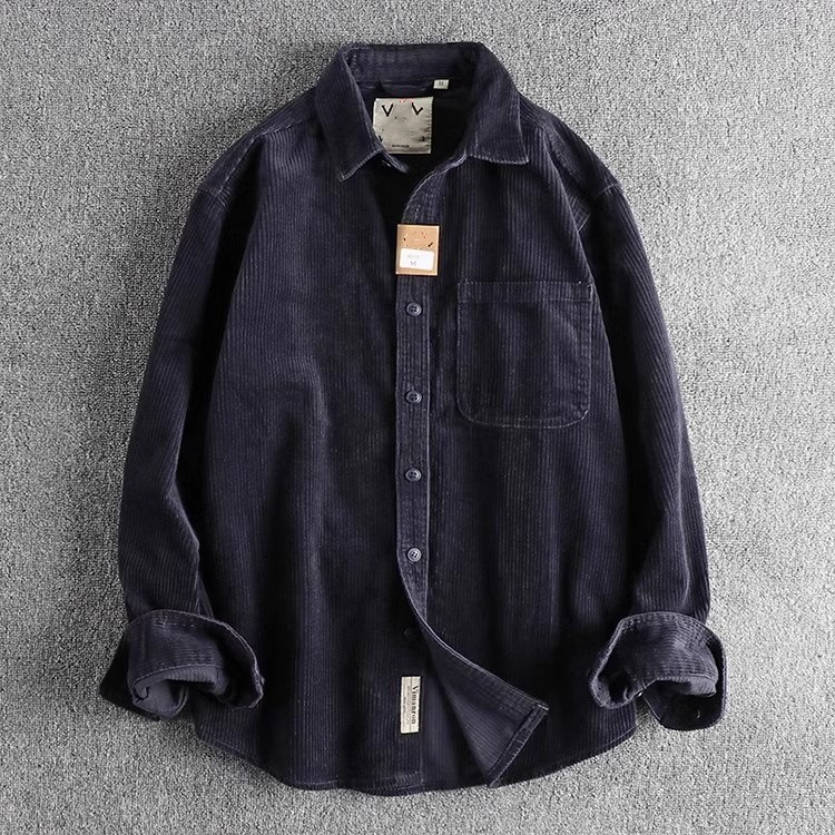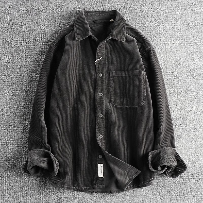 2025 새로운 봄 씻은 긴 소매 셔츠 남자의 미국 스타일 간단한 홍콩 스타일 유행 단일 포켓 셔츠 재킷스토어 가기
