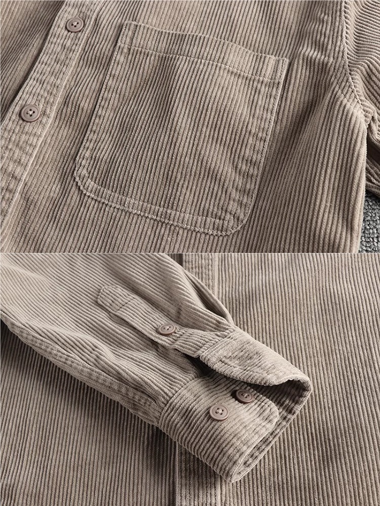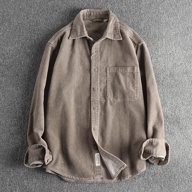 2025 새로운 봄 씻은 긴 소매 셔츠 남자의 미국 스타일 간단한 홍콩 스타일 유행 단일 포켓 셔츠 재킷