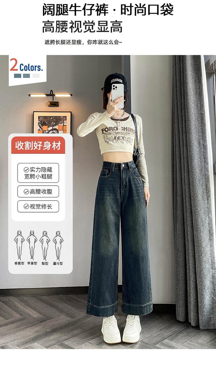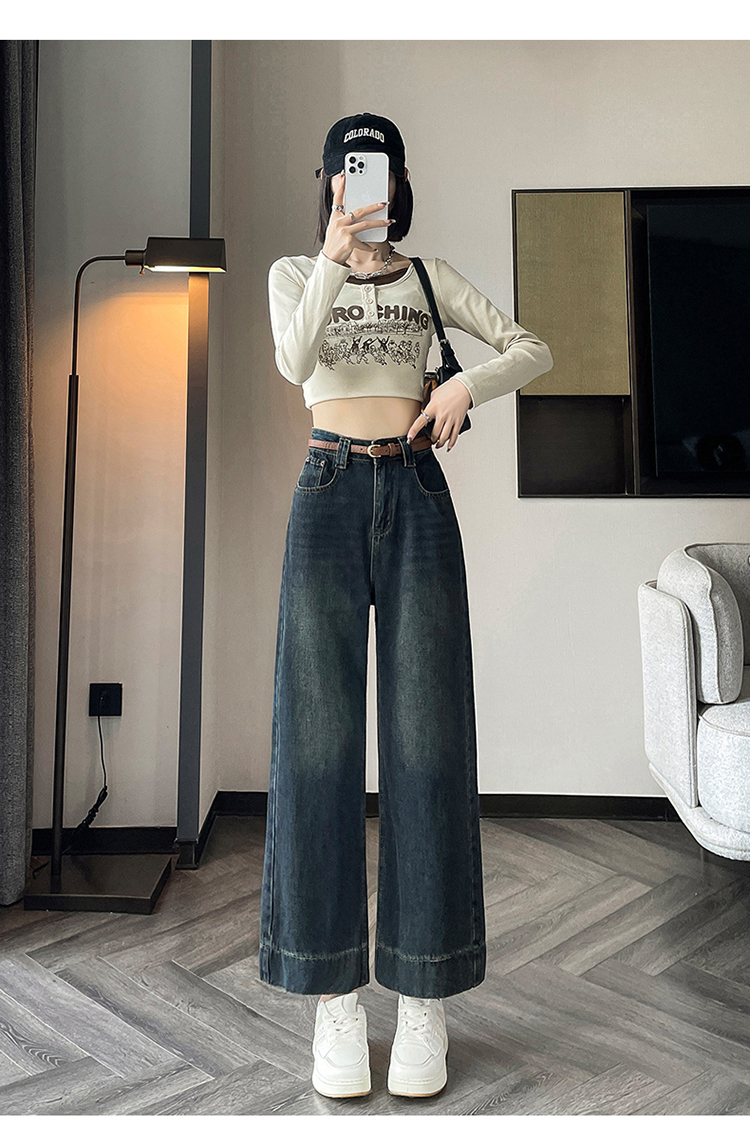 빈티지 스트레이트 청바지 여성의 봄과 가을 2025 새로운 높은 허리 좁은 넓은 다리 바지 작은 남성스토어 가기