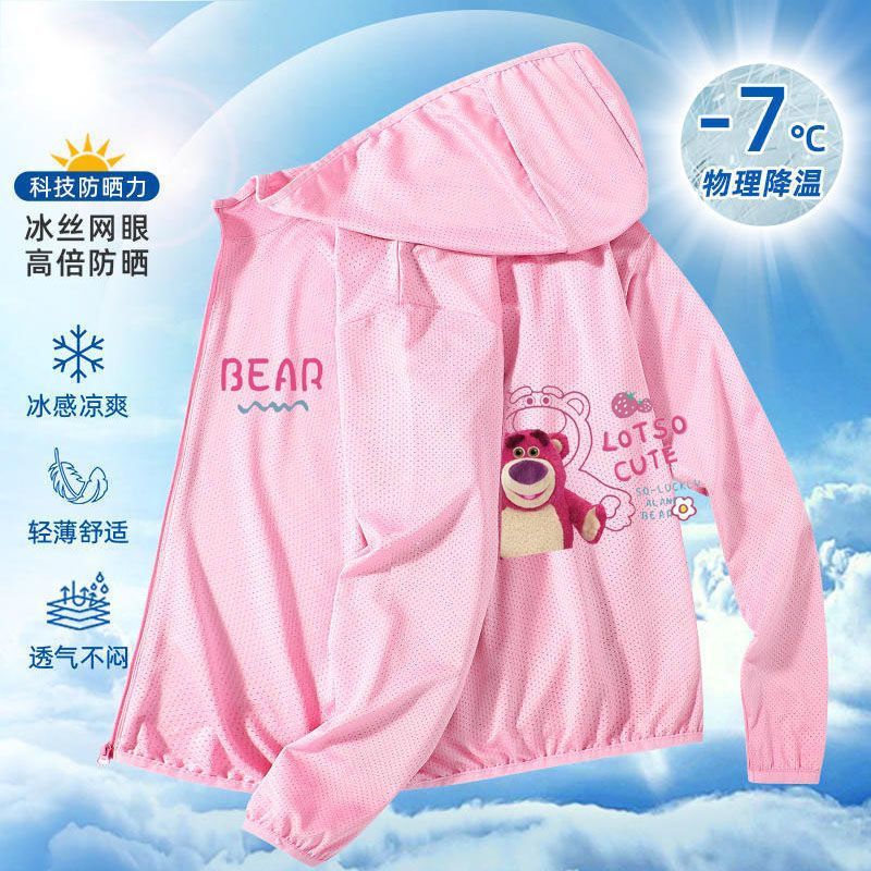 • [자외선 차단복] 스트로베리 베어 핑크 [앞면, 뒷면 프린트]