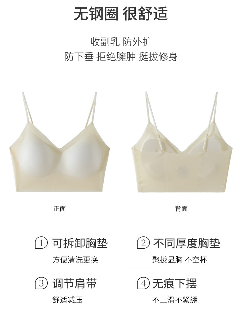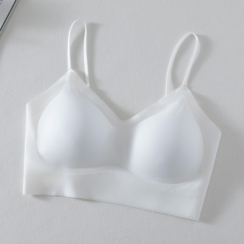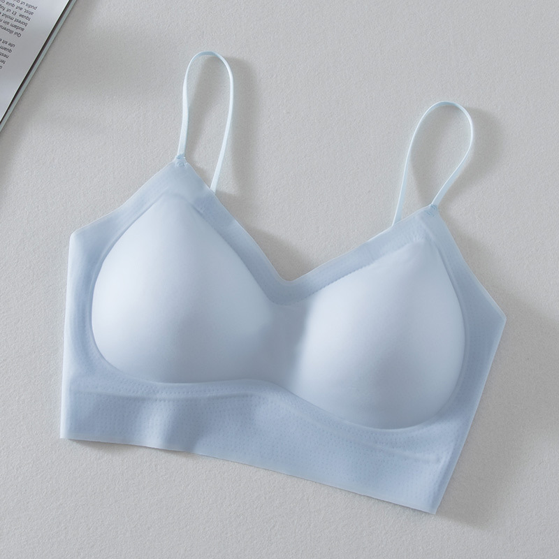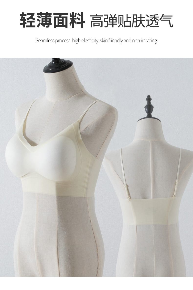초박형 Traceless 속옷 여성의 작은 가슴 두꺼운 가슴 패드 푸시 업 빅 여름 스틸 링 아름다운 백 얇은 스트랩 스포츠 브라