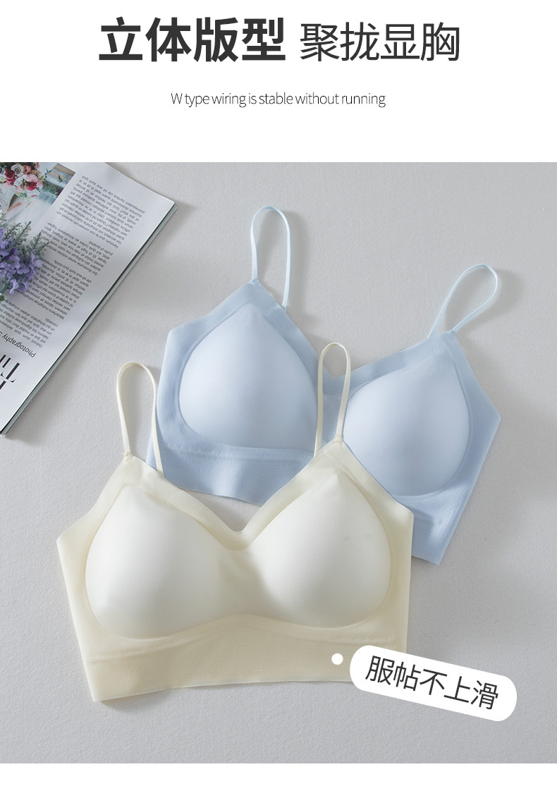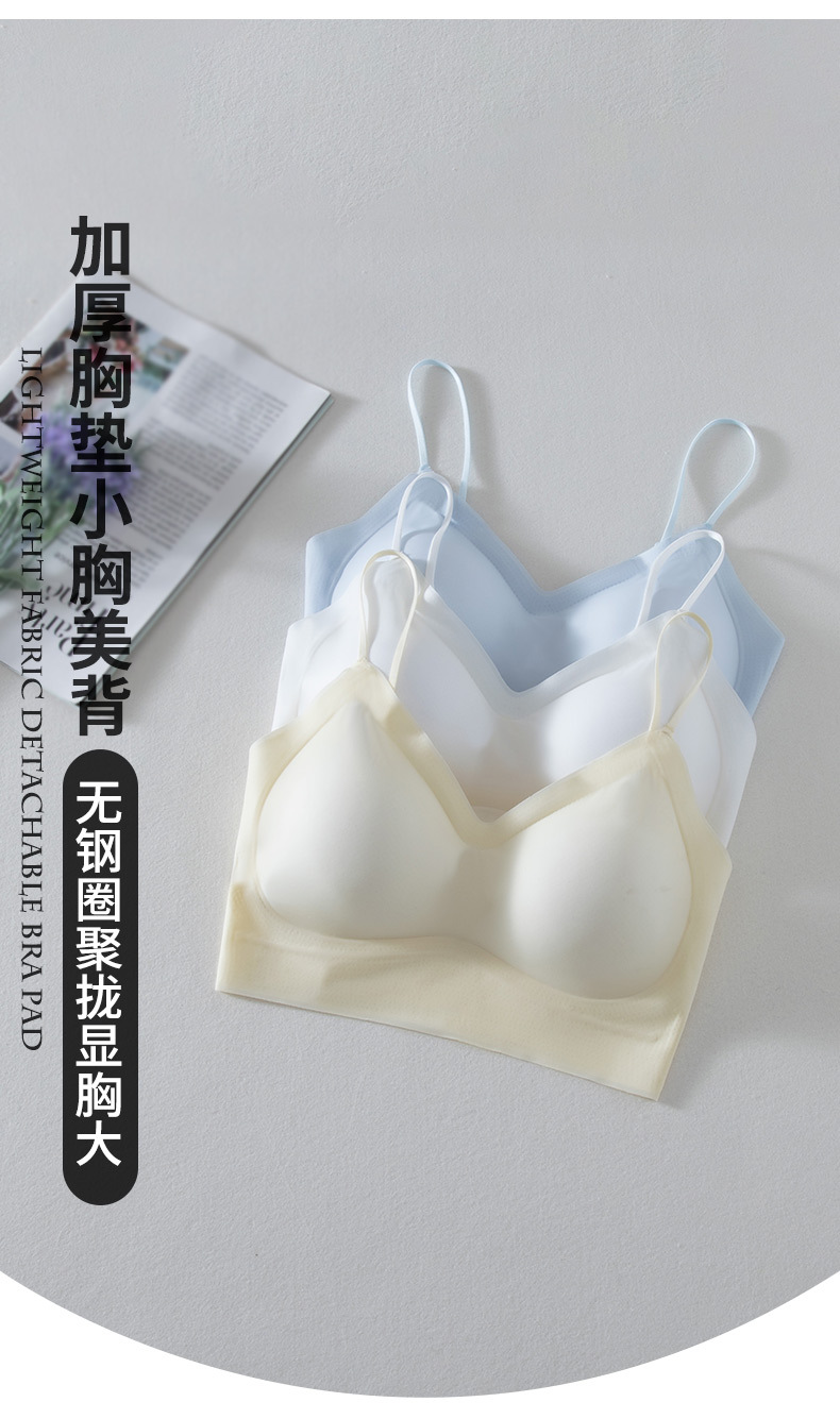 초박형 Traceless 속옷 여성의 작은 가슴 두꺼운 가슴 패드 푸시 업 빅 여름 스틸 링 아름다운 백 얇은 스트랩 스포츠 브라스토어 가기