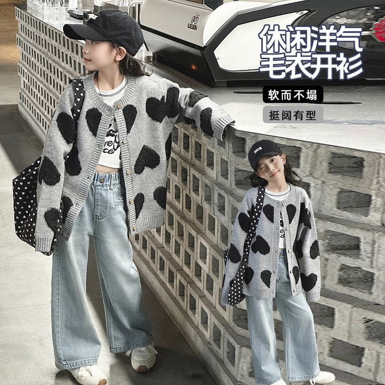 소녀 스웨터 카디건 2025 봄과 가을 새로운 어린이 봄 루즈 탑 서양식 큰 어린이 유행 재킷스토어 가기