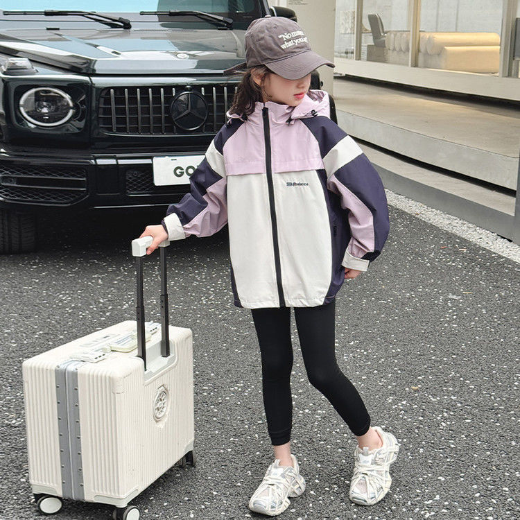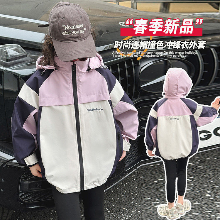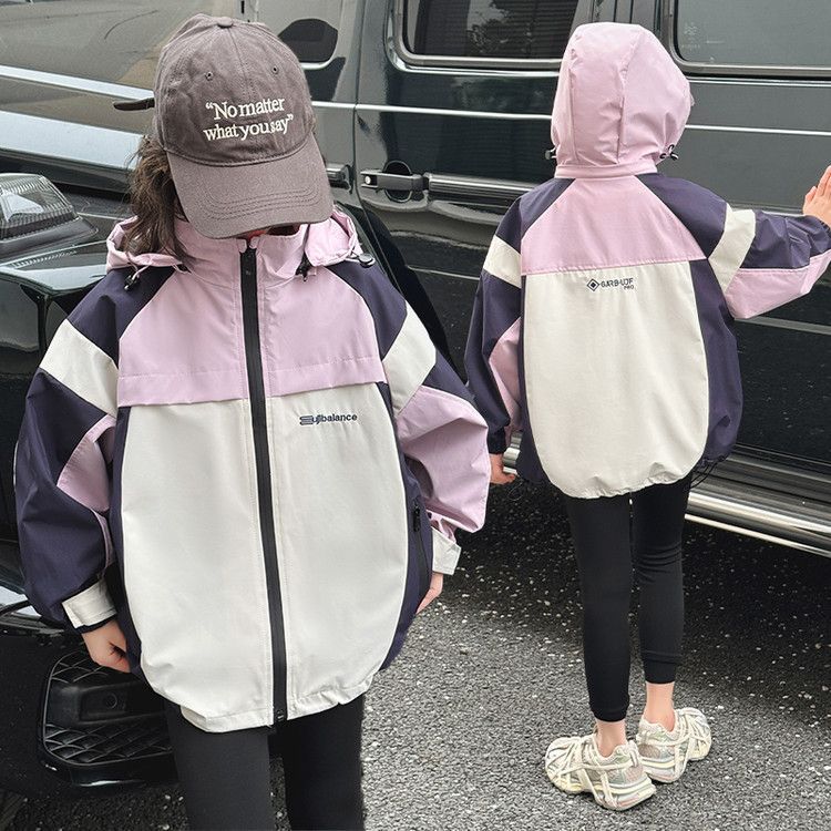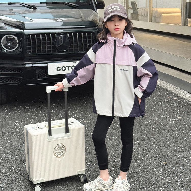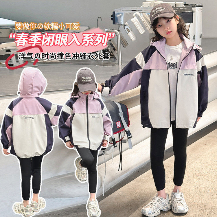 소녀 충전 옷 봄과 가을 2025 새로운 색상 차단 야외 후드 어린이 서양식 유행 올 매치 재킷스토어 가기