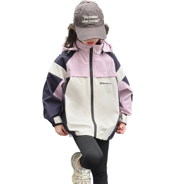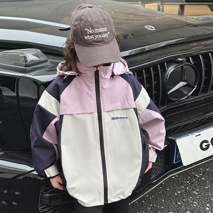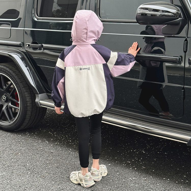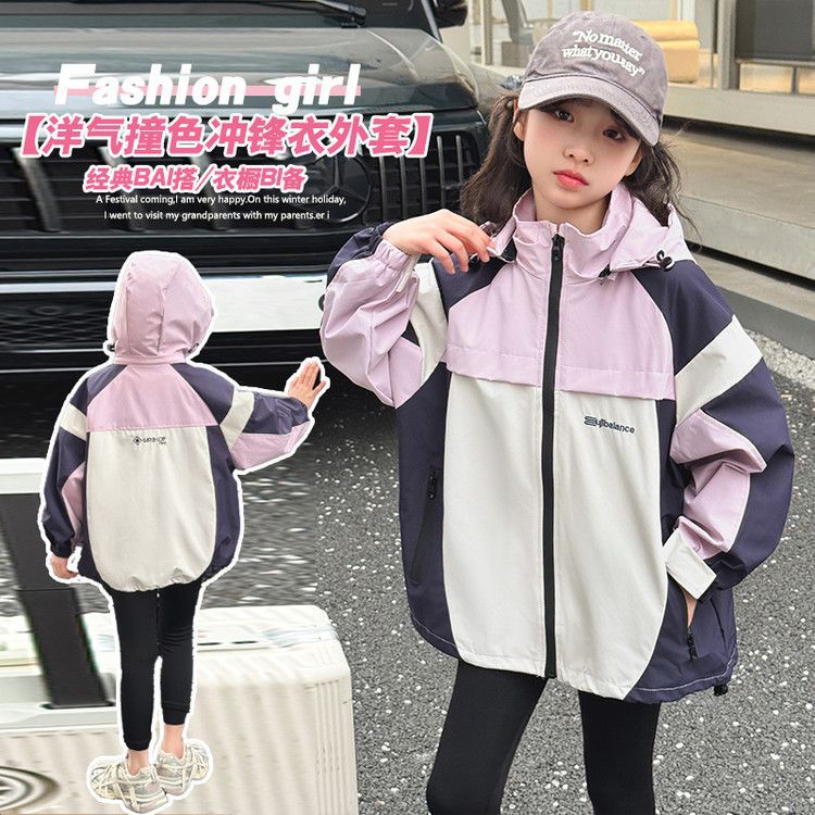 소녀 충전 옷 봄과 가을 2025 새로운 색상 차단 야외 후드 어린이 서양식 유행 올 매치 재킷