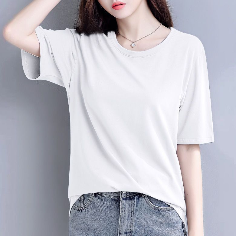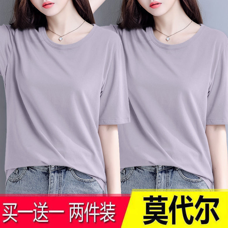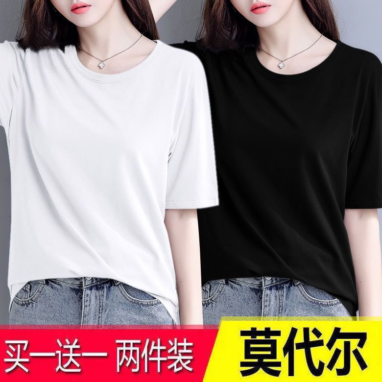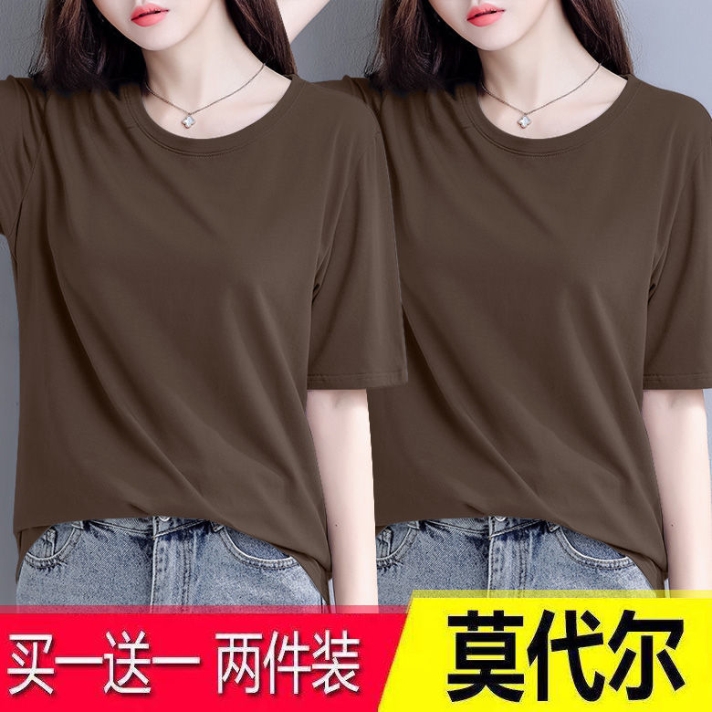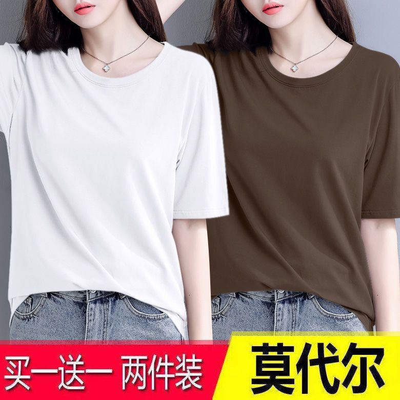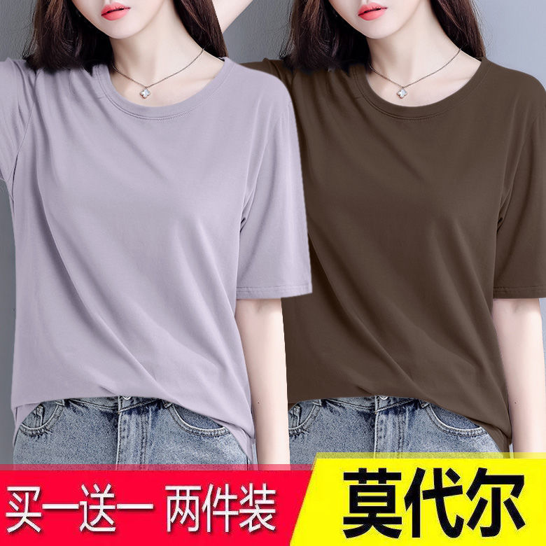 (모달) 반팔 티셔츠 여성용 여름 루즈 바이타 슬림 핏 크루 넥 얇은 솔리드 컬러 탑 베이스 레이어 셔츠스토어 가기