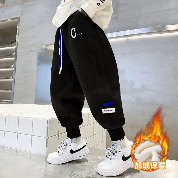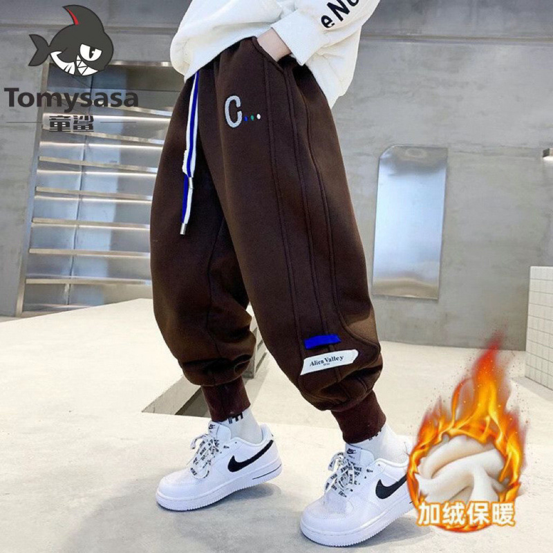 어린이 상어 소년 바지 2025 새로운 봄과 가을 한국 스타일 어린이 운동복 중형 및 큰 어린이 원피스 벨벳 서양식 스포츠 바지스토어 가기