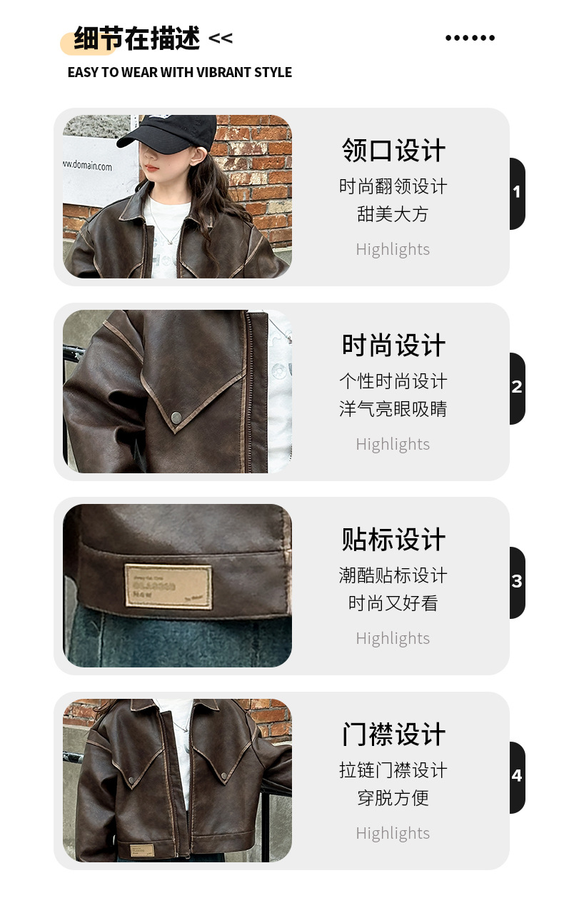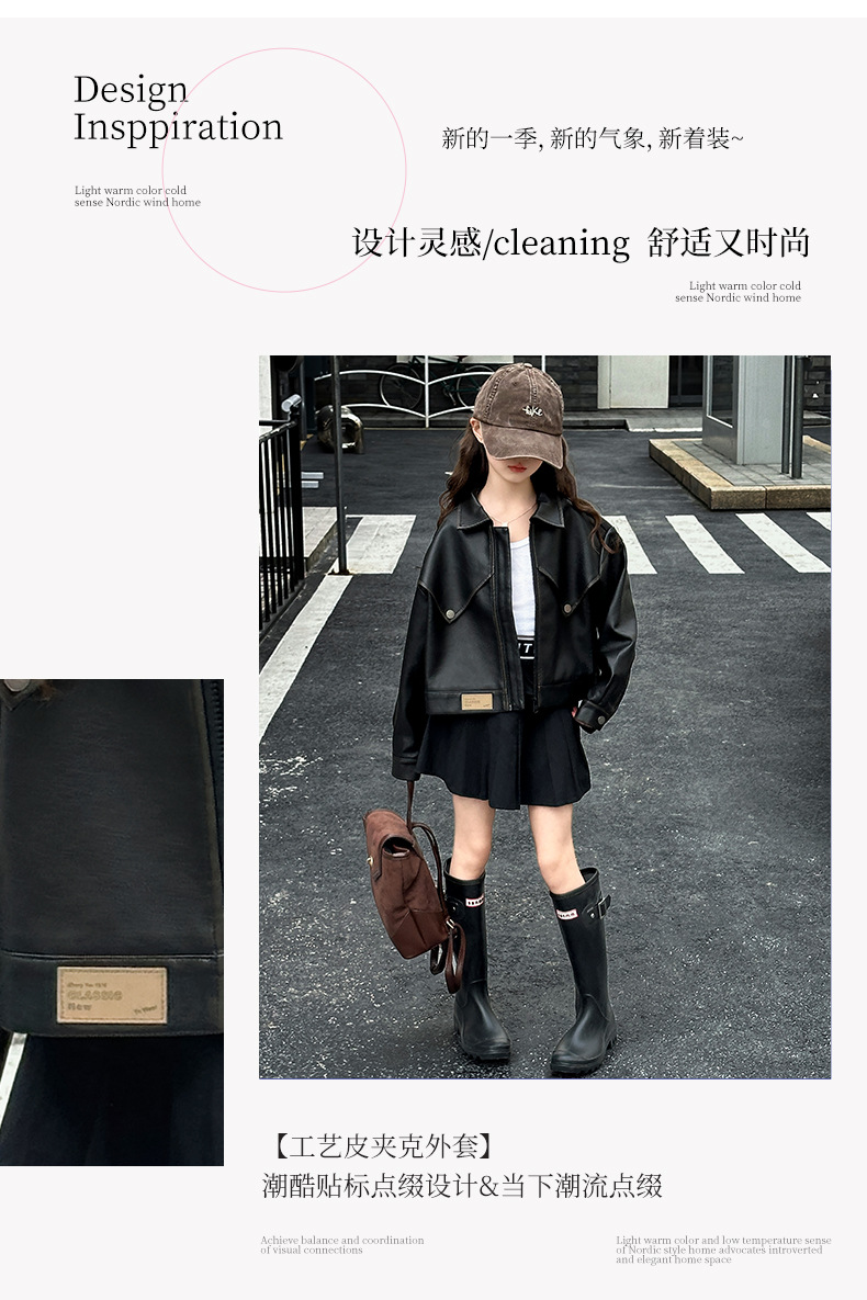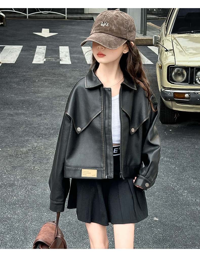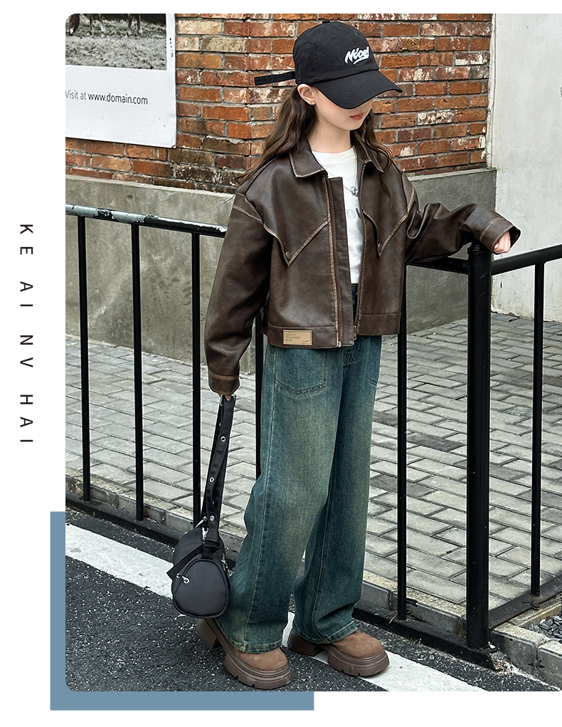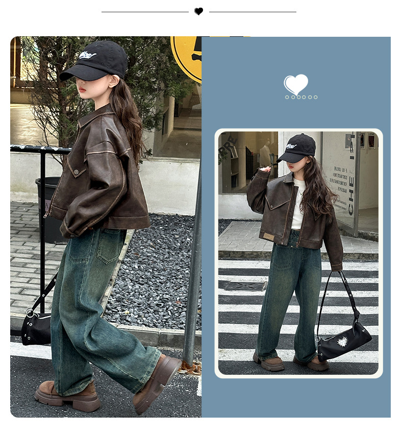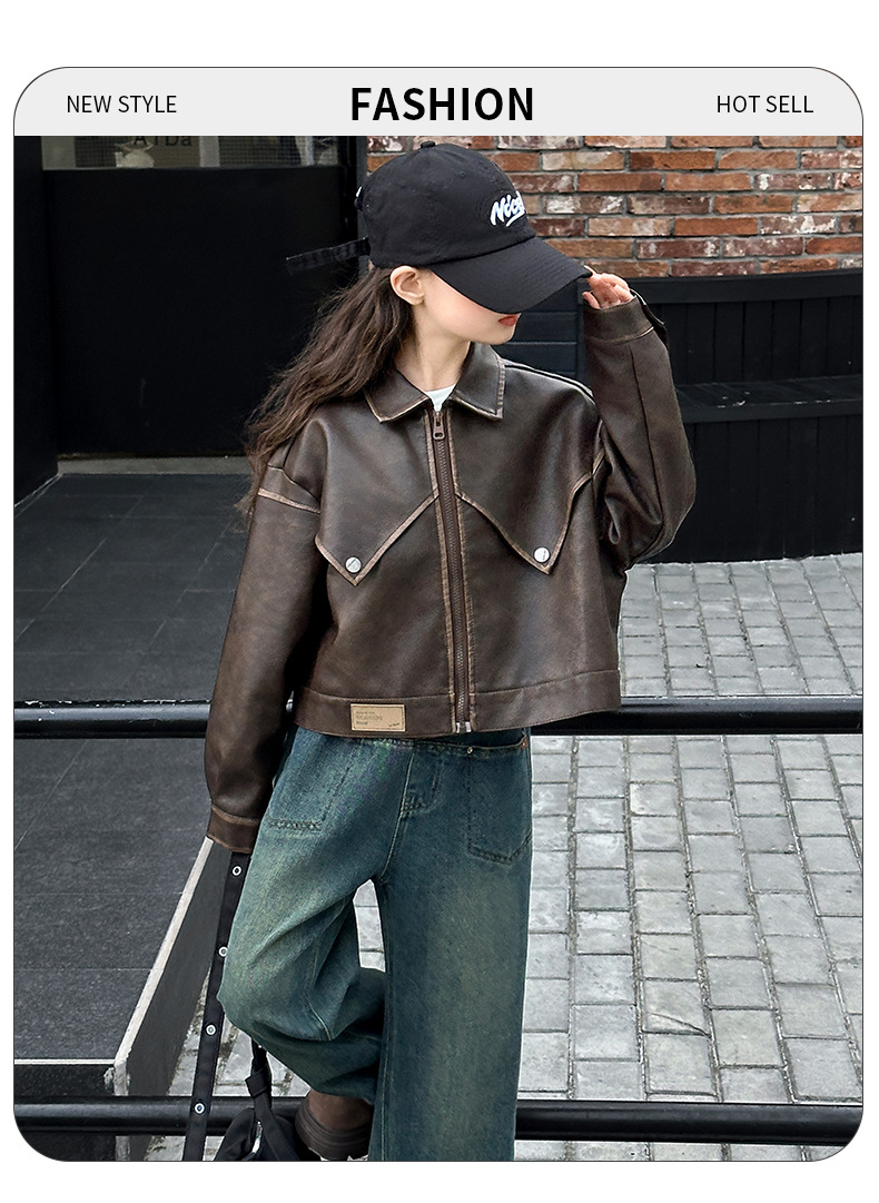 소녀 옷깃 가죽 자켓 봄 2025 새로운 소녀 패션 가죽 자켓 어린이 캐주얼 짧은 pu 가죽 코트 트렌디스토어 가기