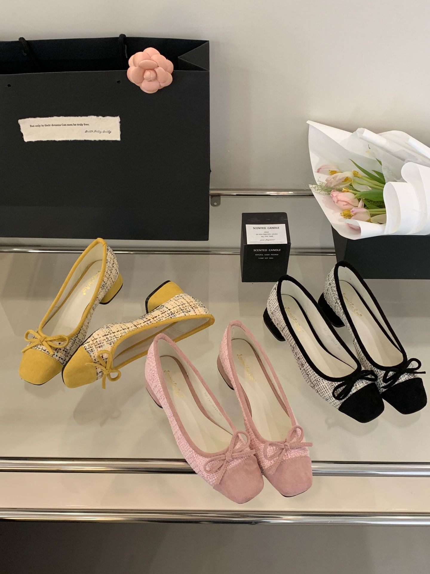 프랑스 활 얕은 입 색상 블록 신발 여성용 샤넬 스타일 콩 신발 부드러운 요정 발레 신발스토어 가기
