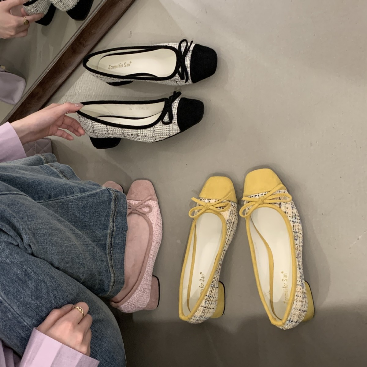 프랑스 활 얕은 입 색상 블록 신발 여성용 샤넬 스타일 콩 신발 부드러운 요정 발레 신발