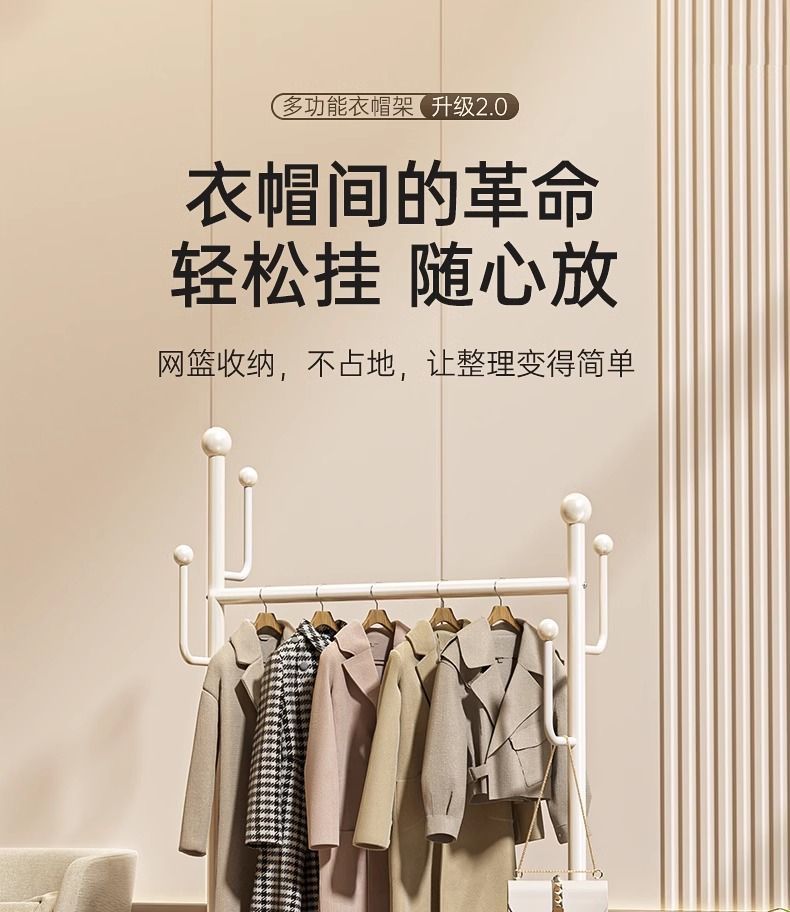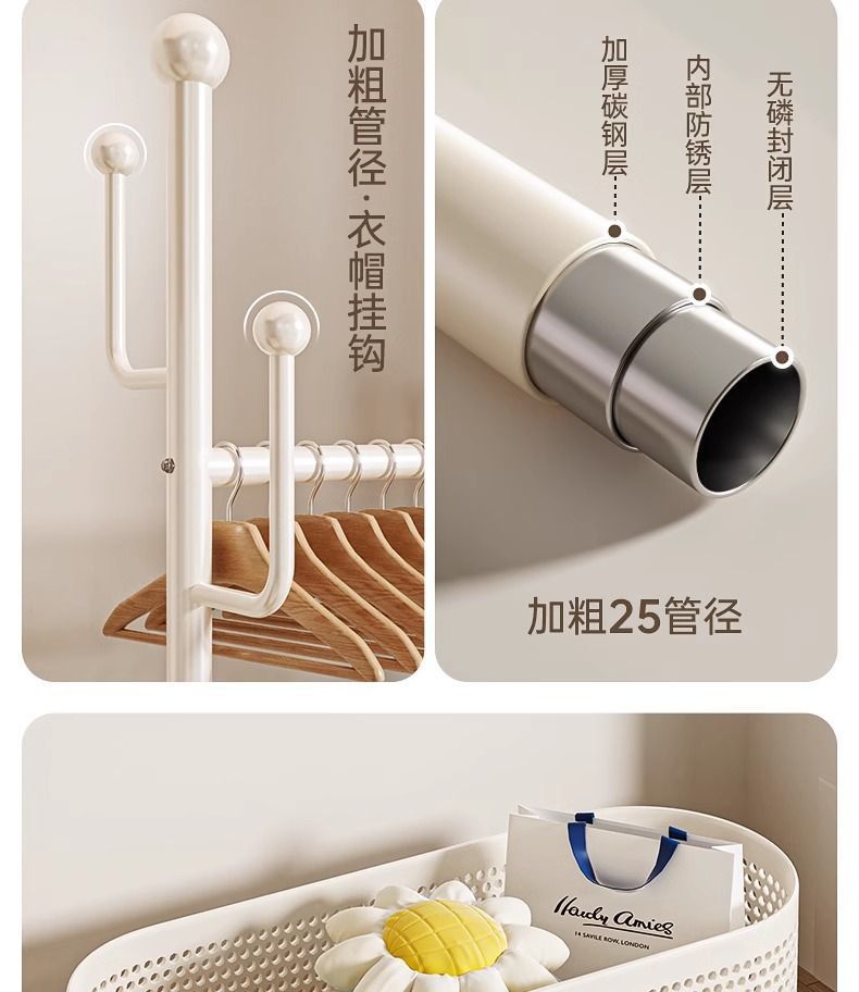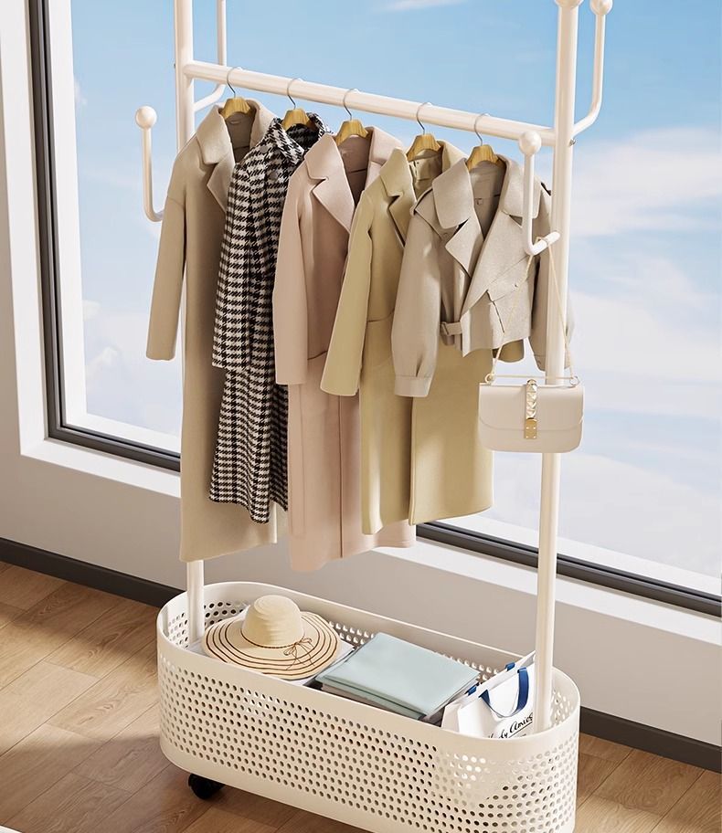 옷 옷걸이 바닥 가정용 침실 두꺼운 바퀴 달린 이동식 코트 랙 발코니 옷걸이스토어 가기