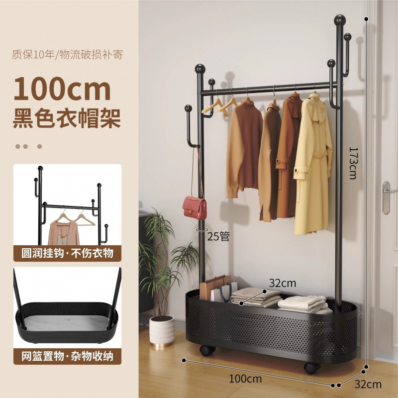 옷 옷걸이 바닥 가정용 침실 두꺼운 바퀴 달린 이동식 코트 랙 발코니 옷걸이
