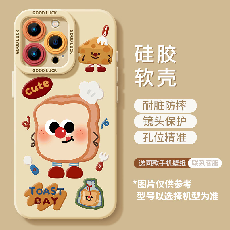애플 16 휴대 전화 쉘 새로운 토스트 도넛 iPhone15promax 실리콘 소프트 쉘 14 만화 귀여운 13스토어 가기
