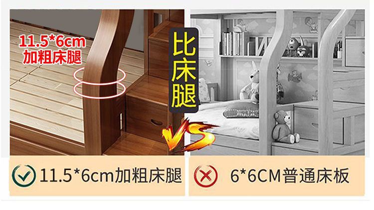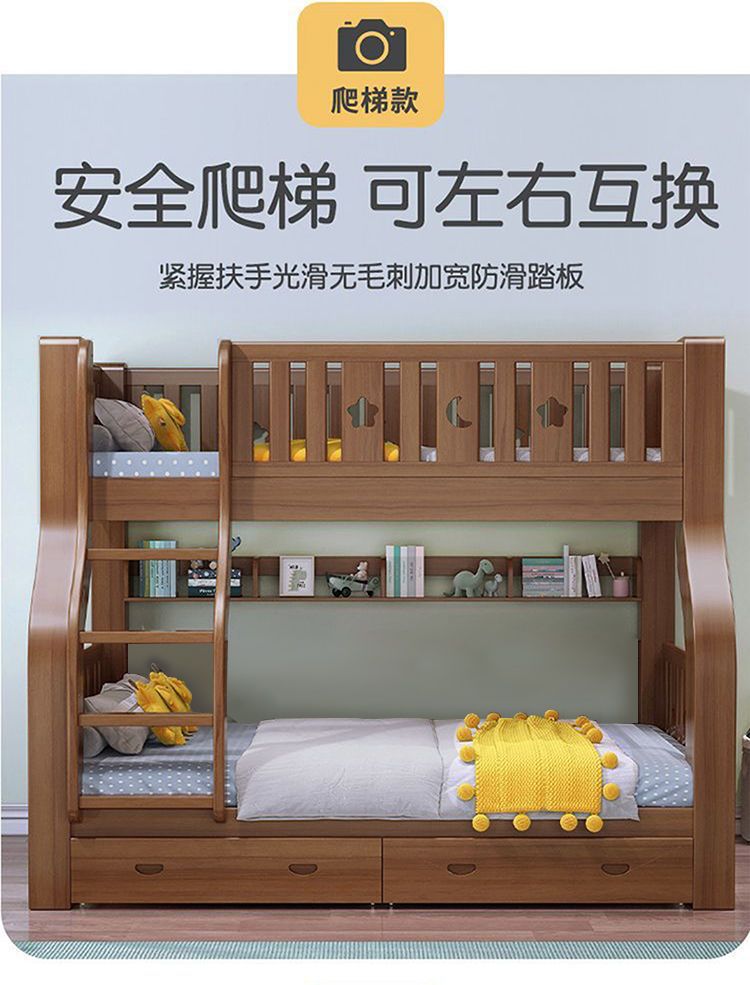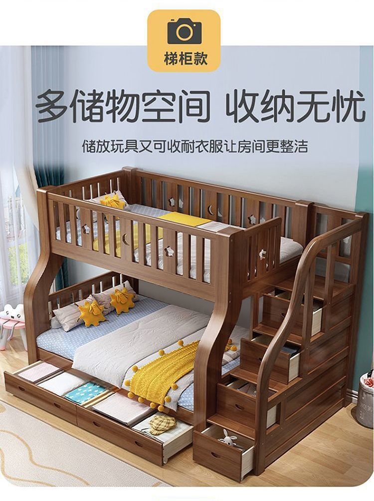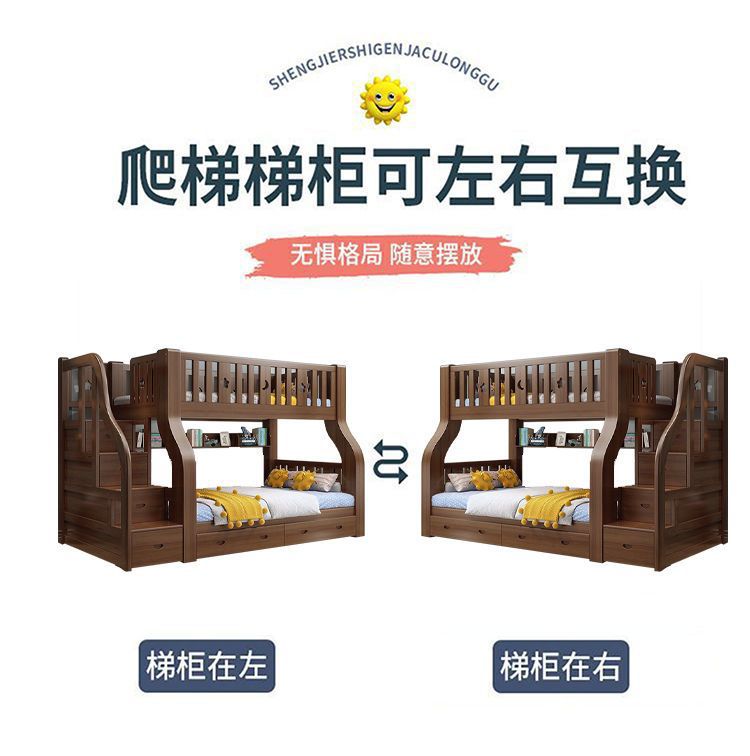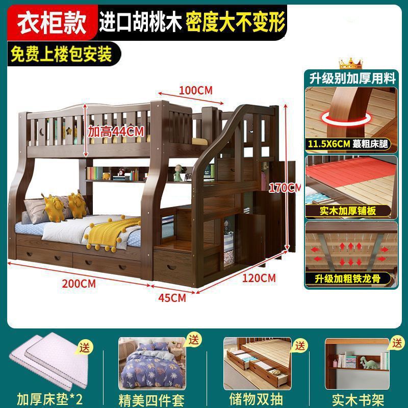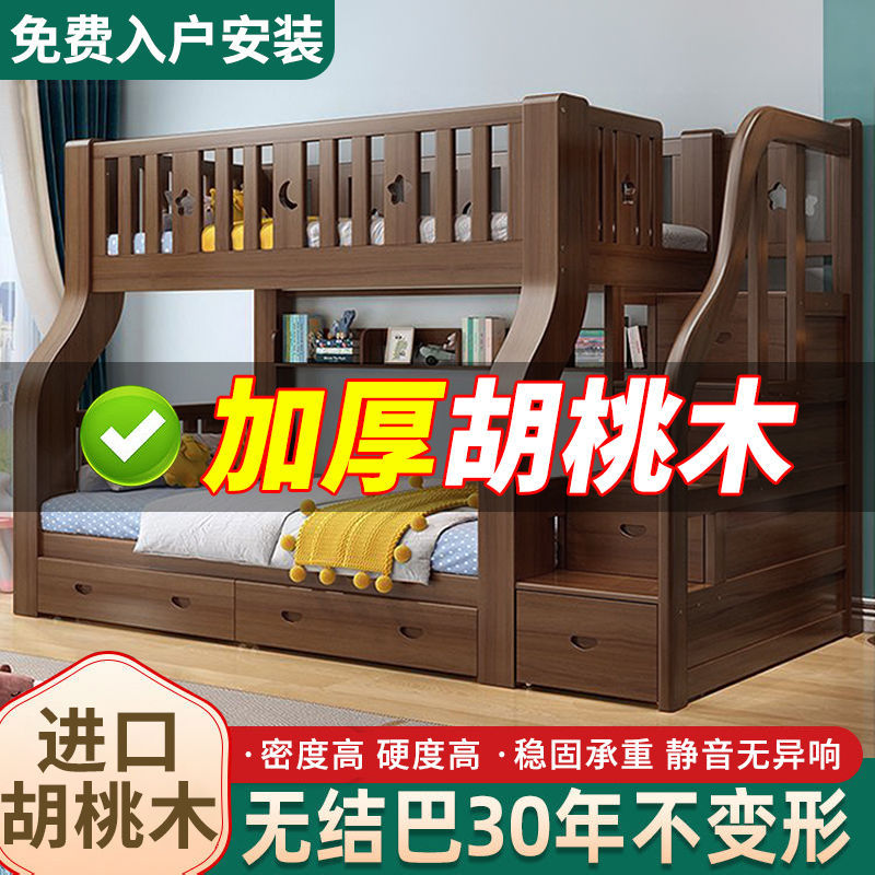 단단한 나무 호두 침대 두꺼운 2 층 다기능 높고 낮은 더블 레이어 침대 단단한 나무 어린이 침대스토어 가기