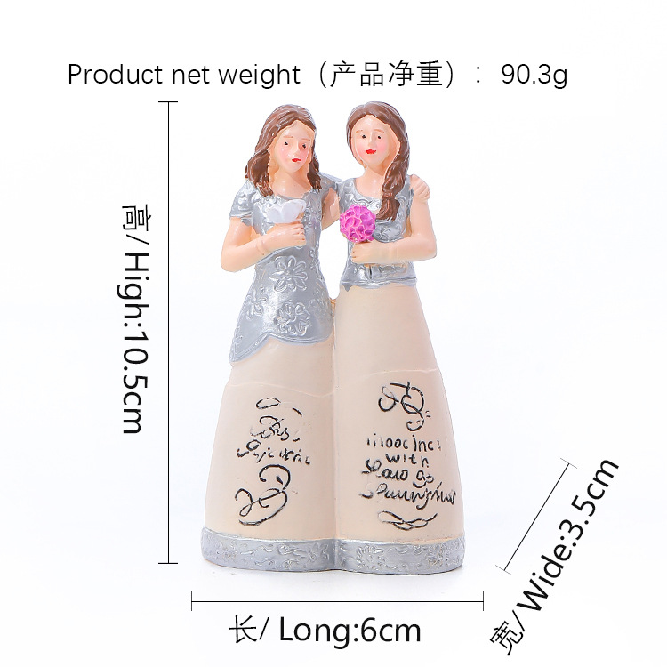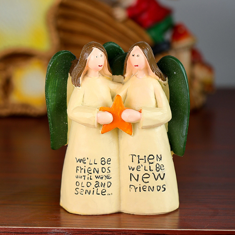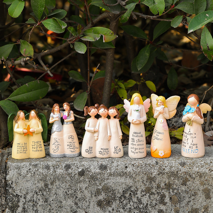 국경 간 자매 우정 조각 친구 천사 입상 데스크탑 보석 수지 공예 장식품스토어 가기