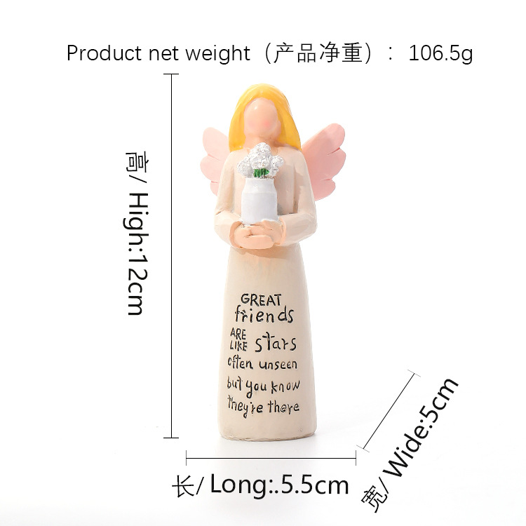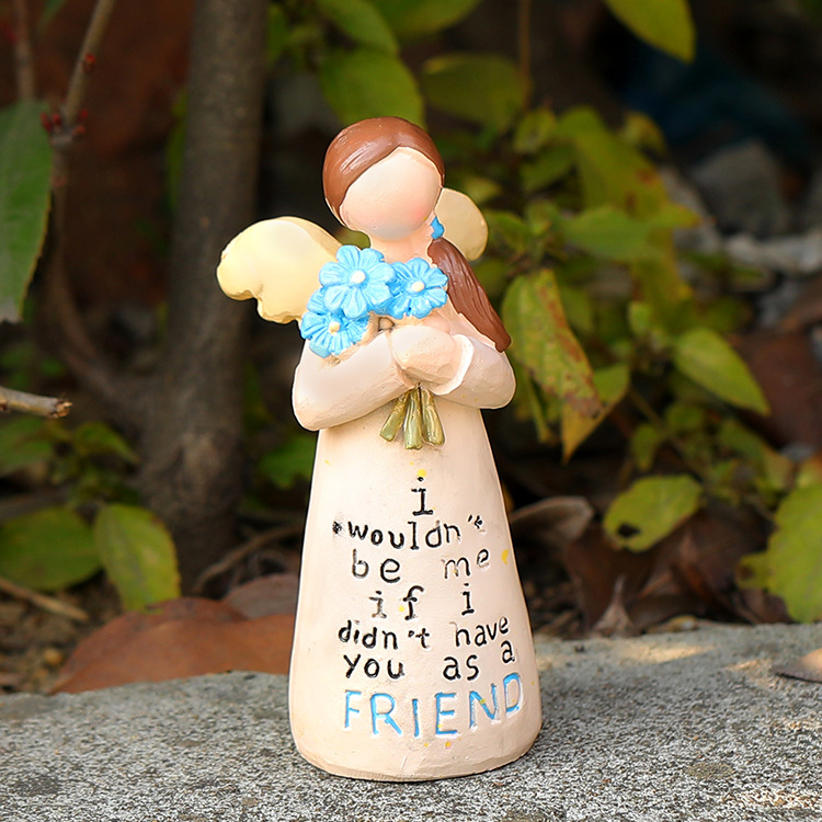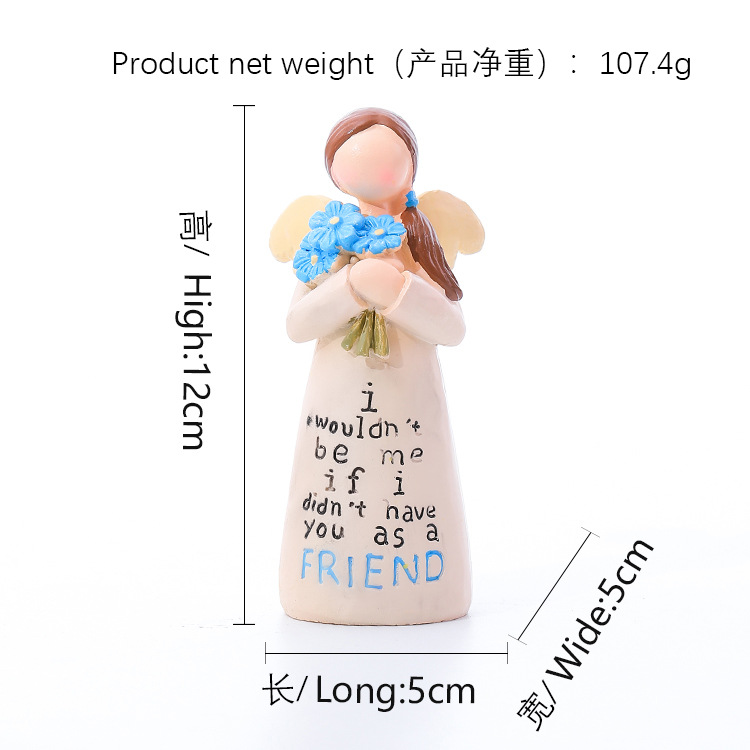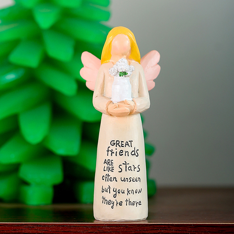 국경 간 자매 우정 조각 친구 천사 입상 데스크탑 보석 수지 공예 장식품
