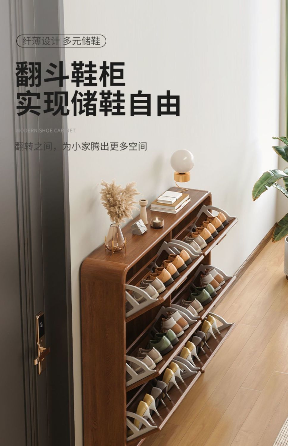 초박형 터닝 버킷 신발 캐비닛 가정용 도어 입구 캐비닛 솔리드 우드 저장 공간 절약 작은 아파트 간단한 신발 랙