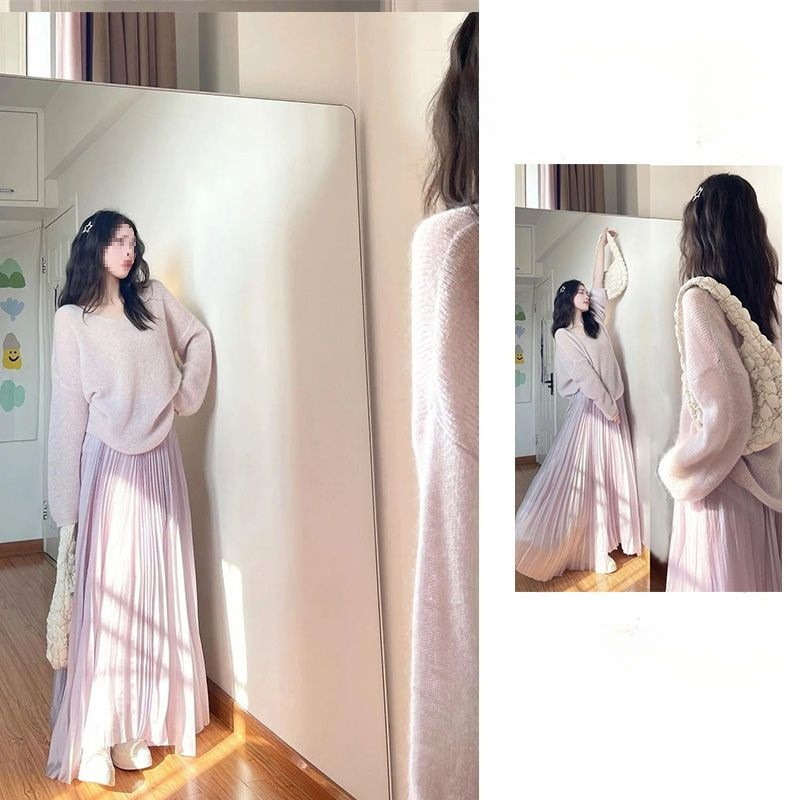 2025 새로운 봄 투피스 양복 부드러운 스타일 복고풍 느슨한 보라색 스웨터 여성 매칭스토어 가기