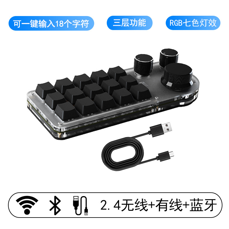 • 청축 - [2.4G 무선/블루투스/USB] 15키 3 노브 * 블랙