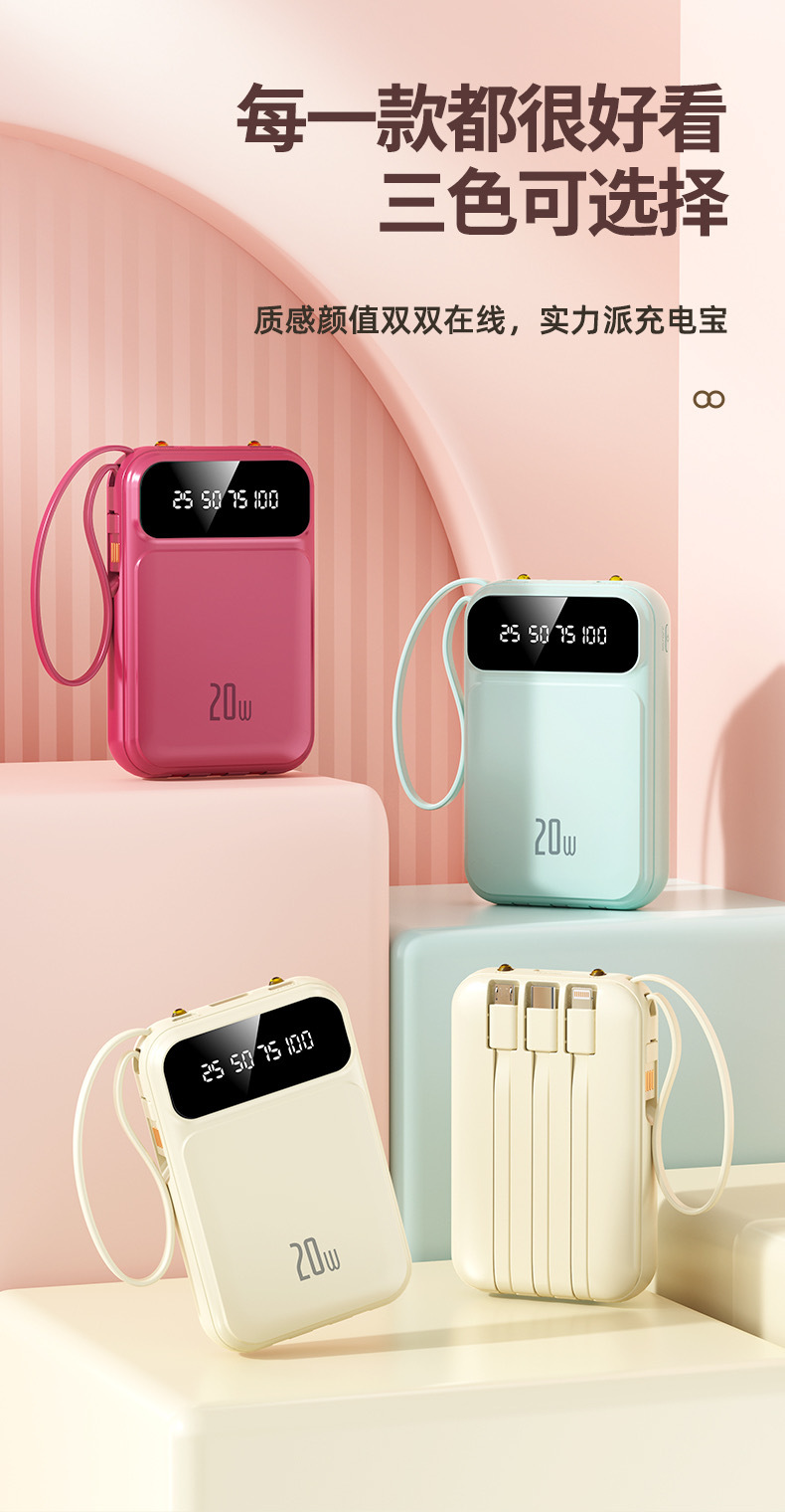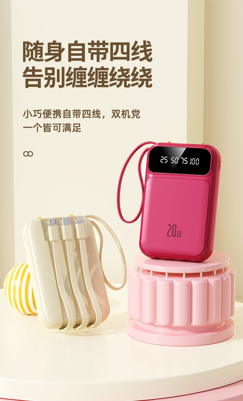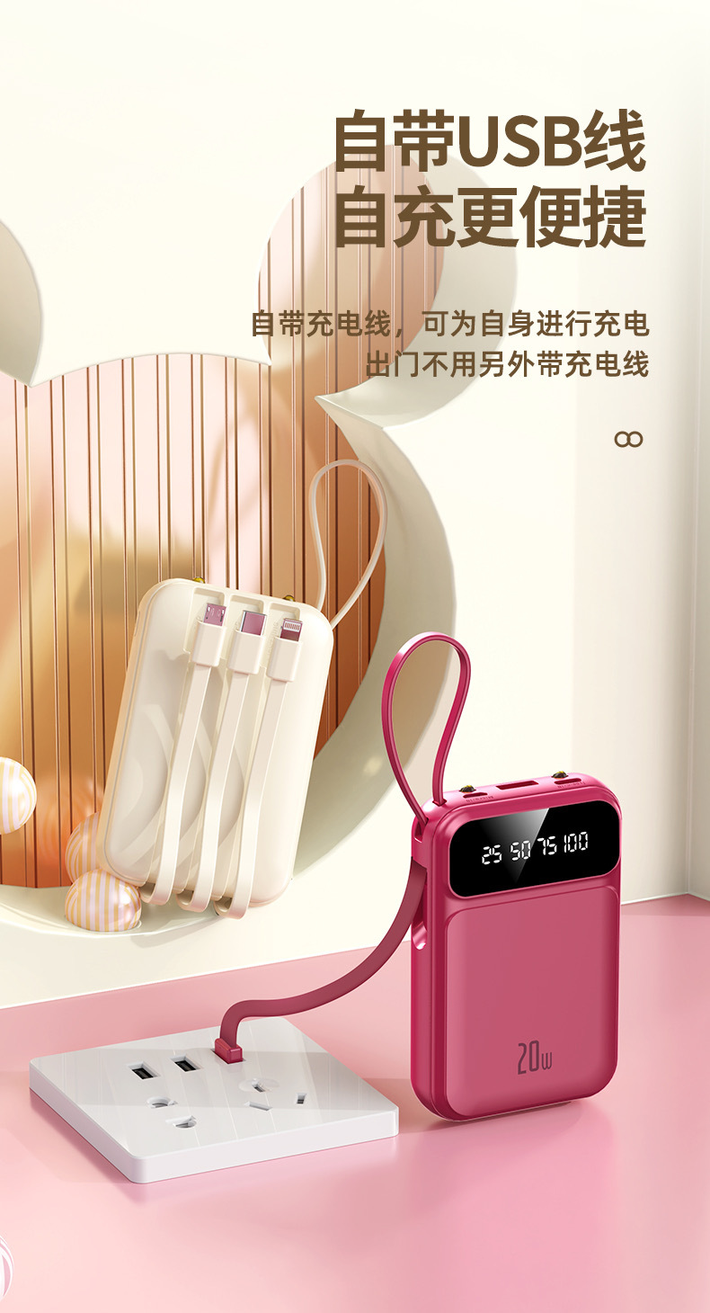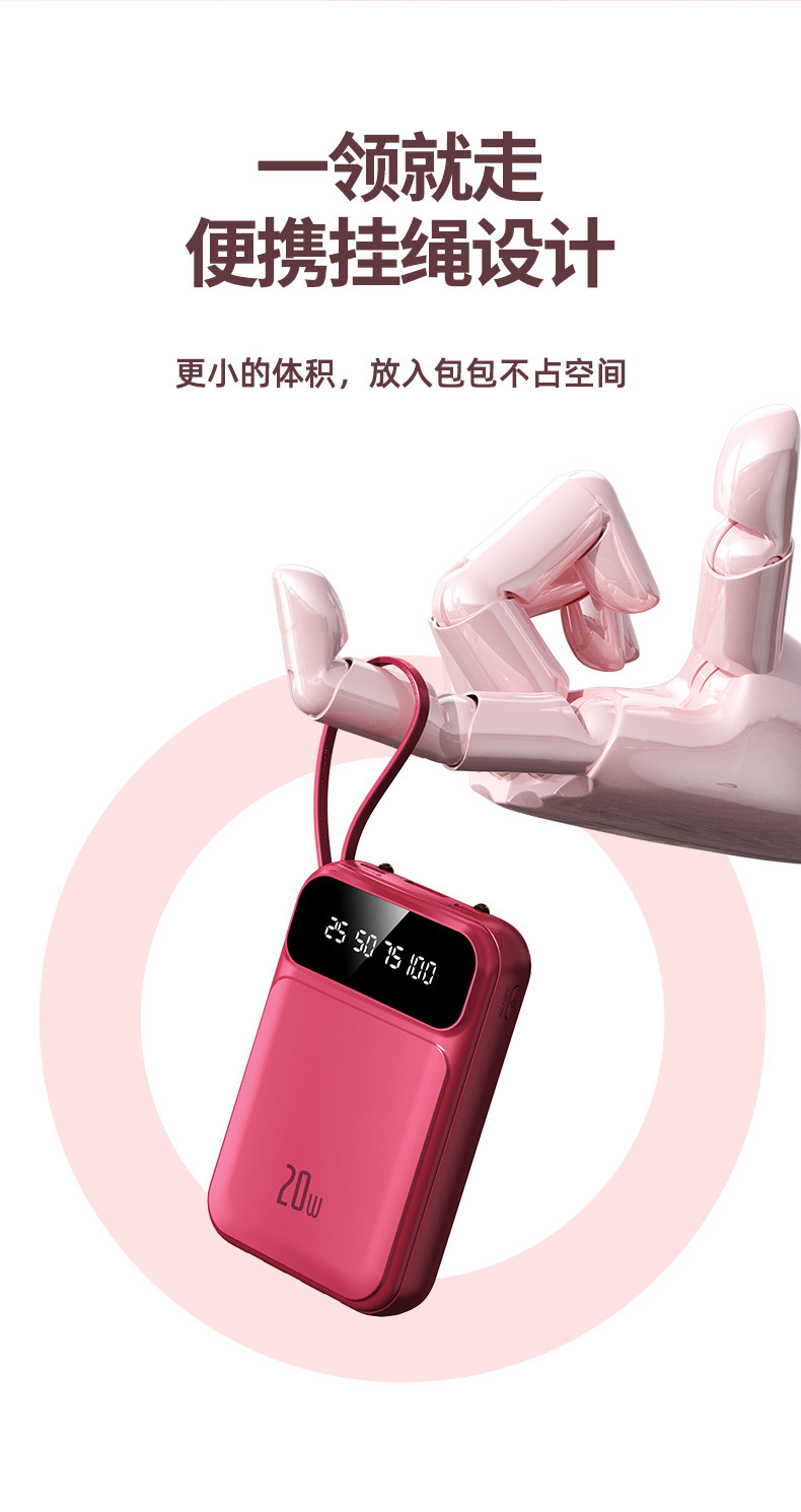2025 정품 미니 셀프 벨트 충전 보물 20000 mA 초대형 용량 초박형 소형 휴대용 모바일스토어 가기