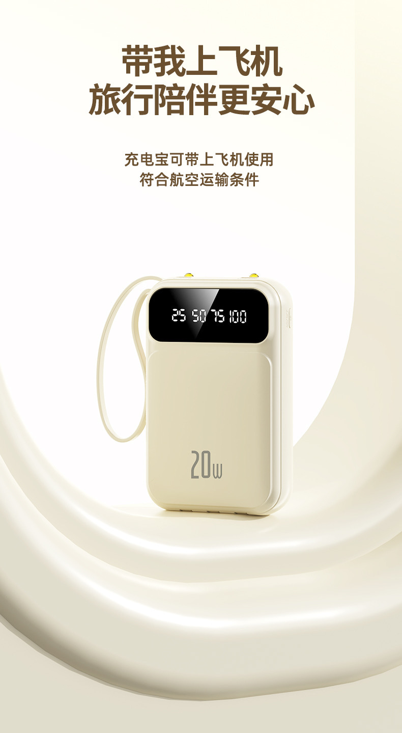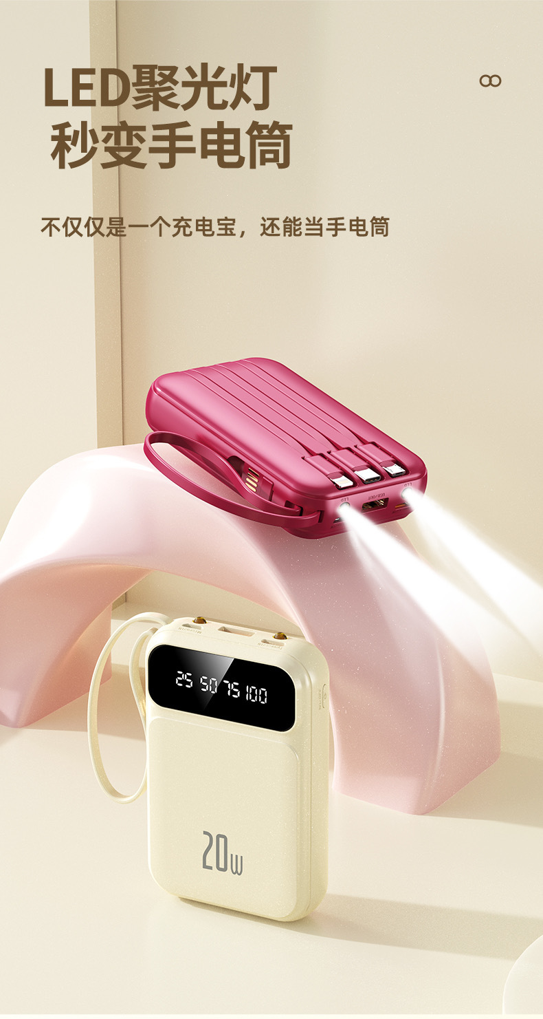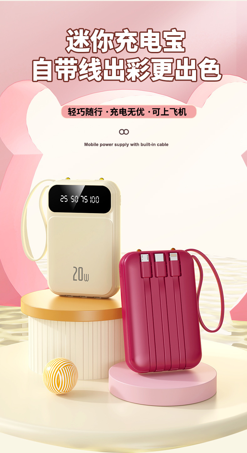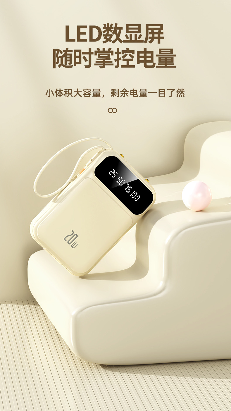 2025 정품 미니 셀프 벨트 충전 보물 20000 mA 초대형 용량 초박형 소형 휴대용 모바일스토어 가기
